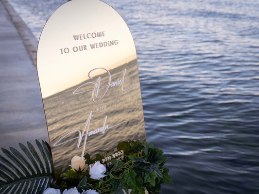 Custom Welcome Sign for Wedding and Engagement - Gold Mirror Fall Wedding Decor