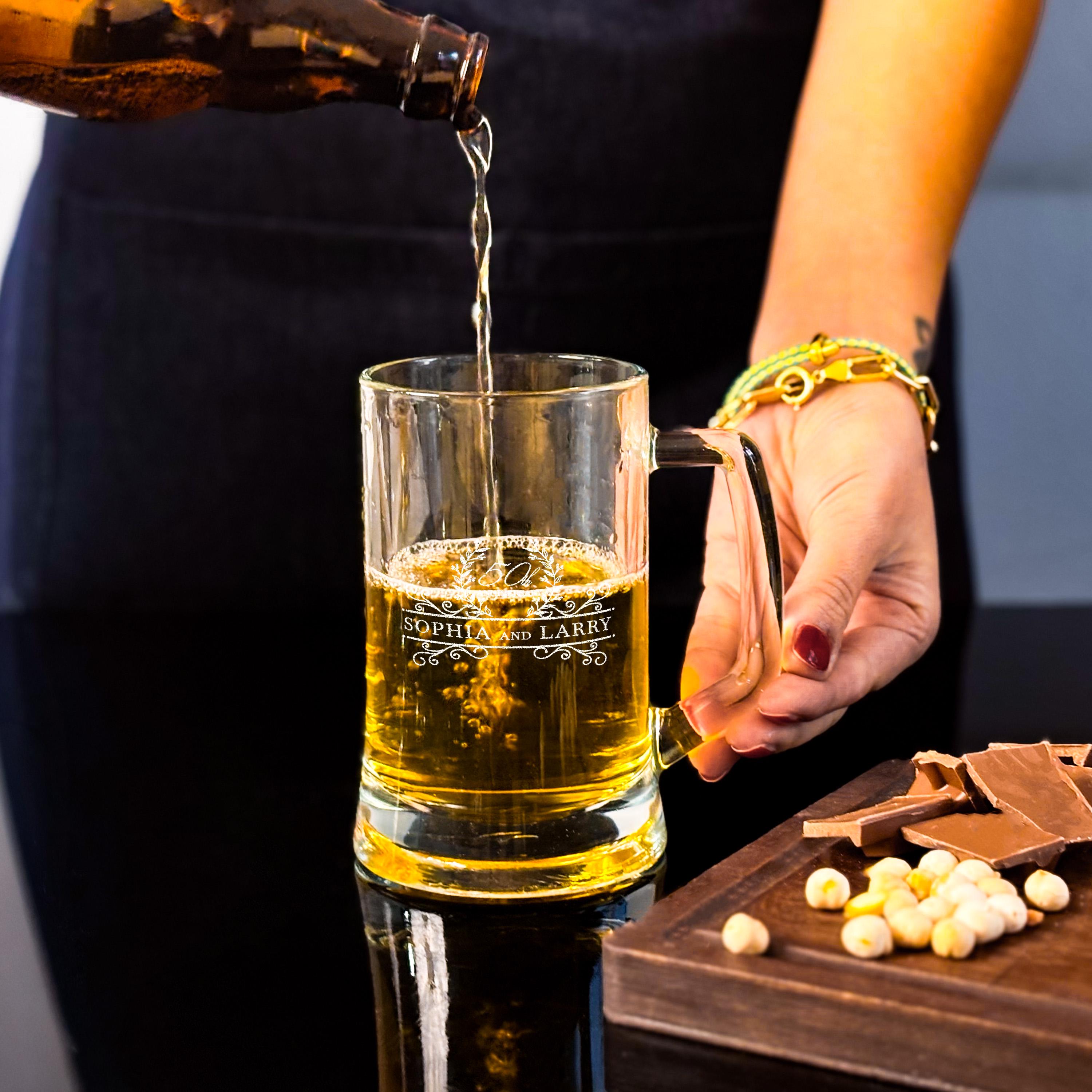 An engraved beer glass adds a personal touch to home gatherings and special celebrations, making each toast feel more memorable. Whether shared at weddings, housewarmings, or as thoughtful groomsmen gifts, these custom beer glasses bring warmth and character to any occasion. The subtle family name engraving blends seamlessly with everyday use, turning simple moments into lasting memories.