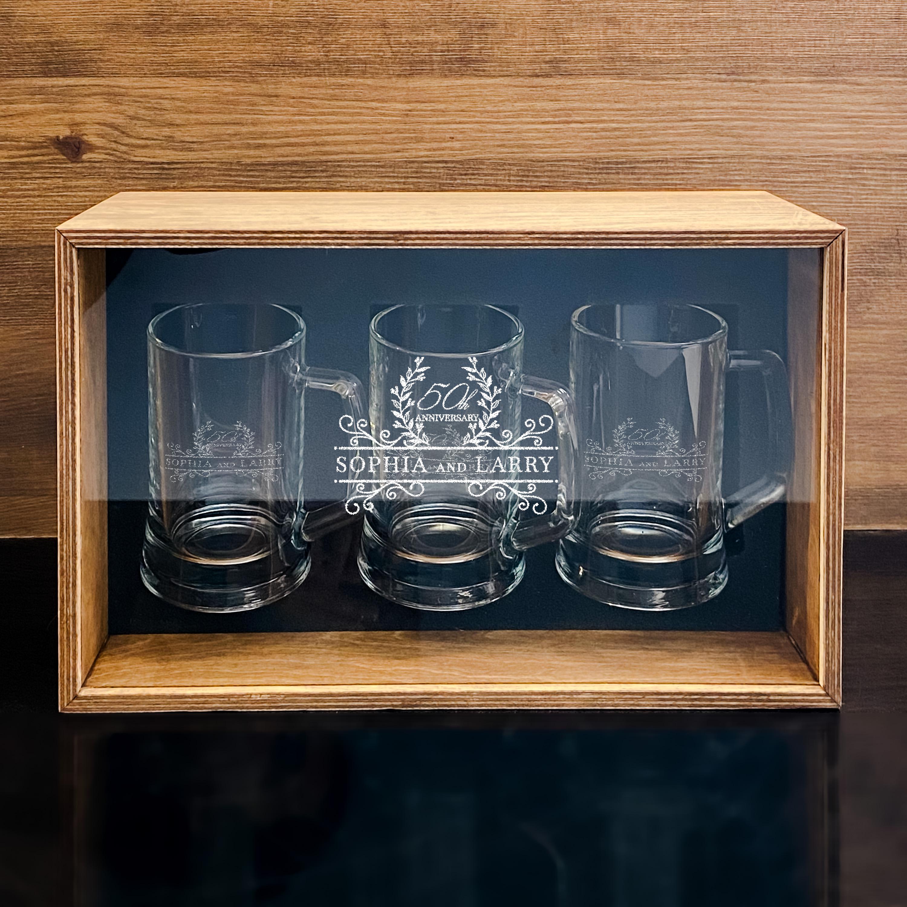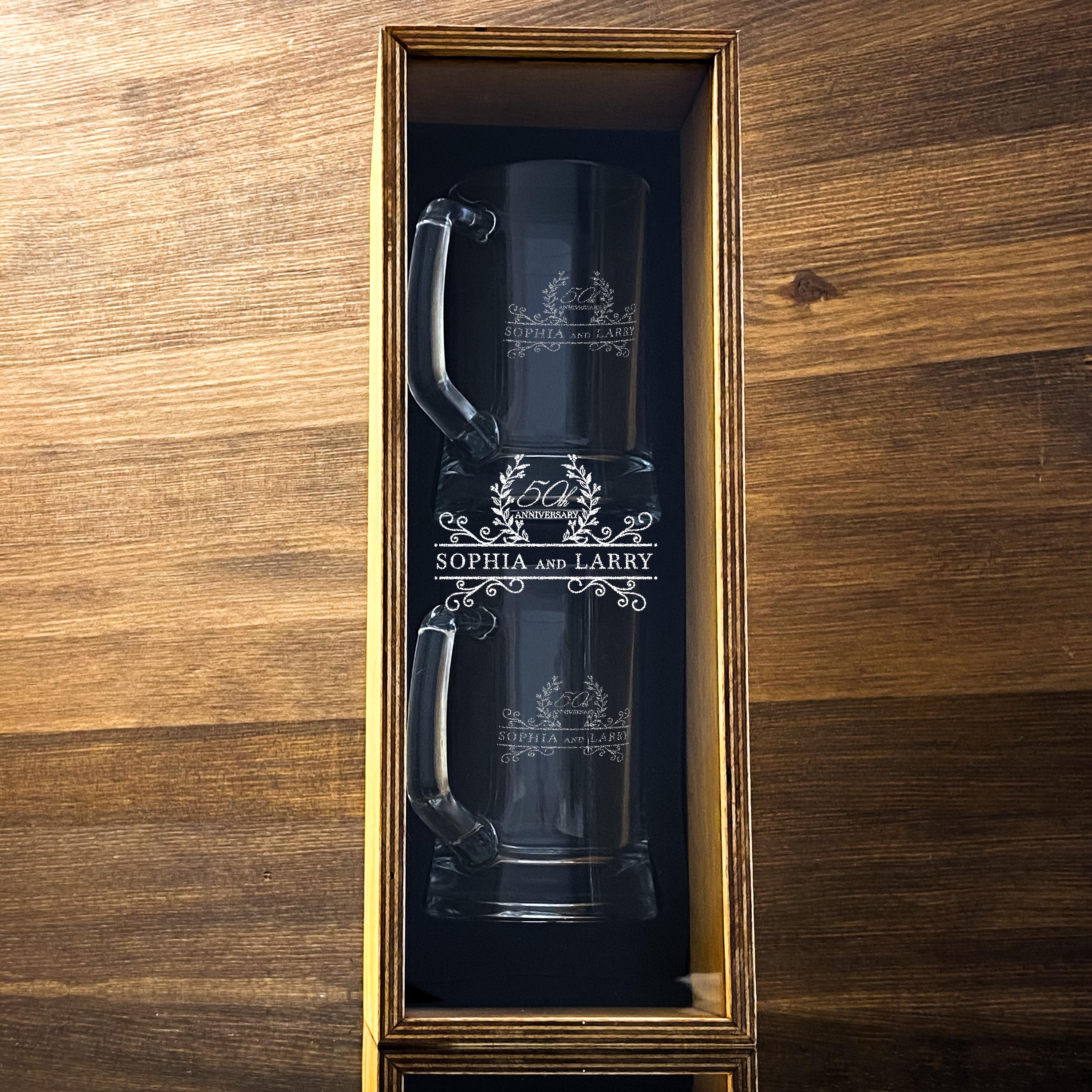Engraved Beer Glass Wedding Gift with Handle Wooden Gift Box Personalized Mug