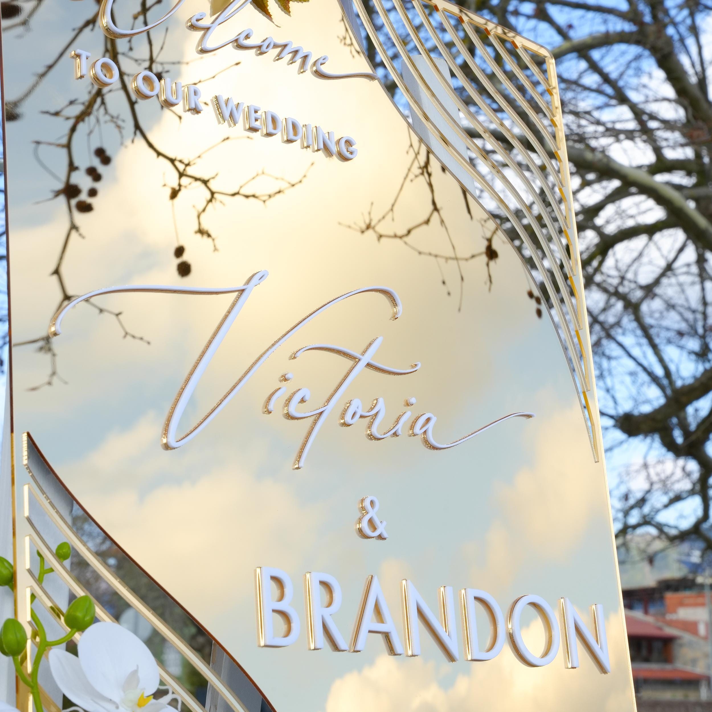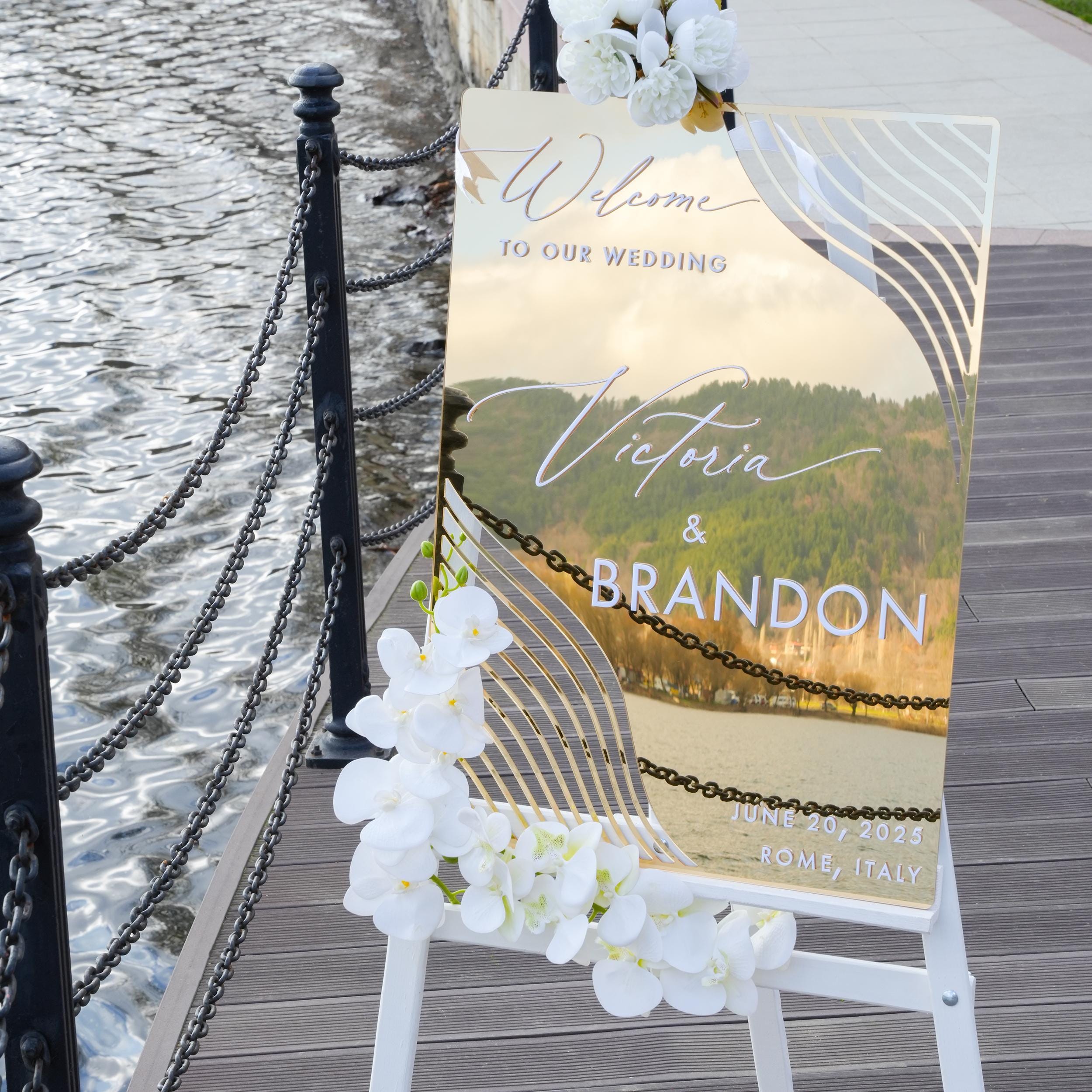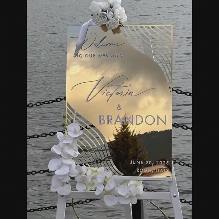 This acrylic wedding sign from the Sunflower Collection adds a stunning gold mirror welcome sign to your fall wedding, creating an elegant first impression for guests.