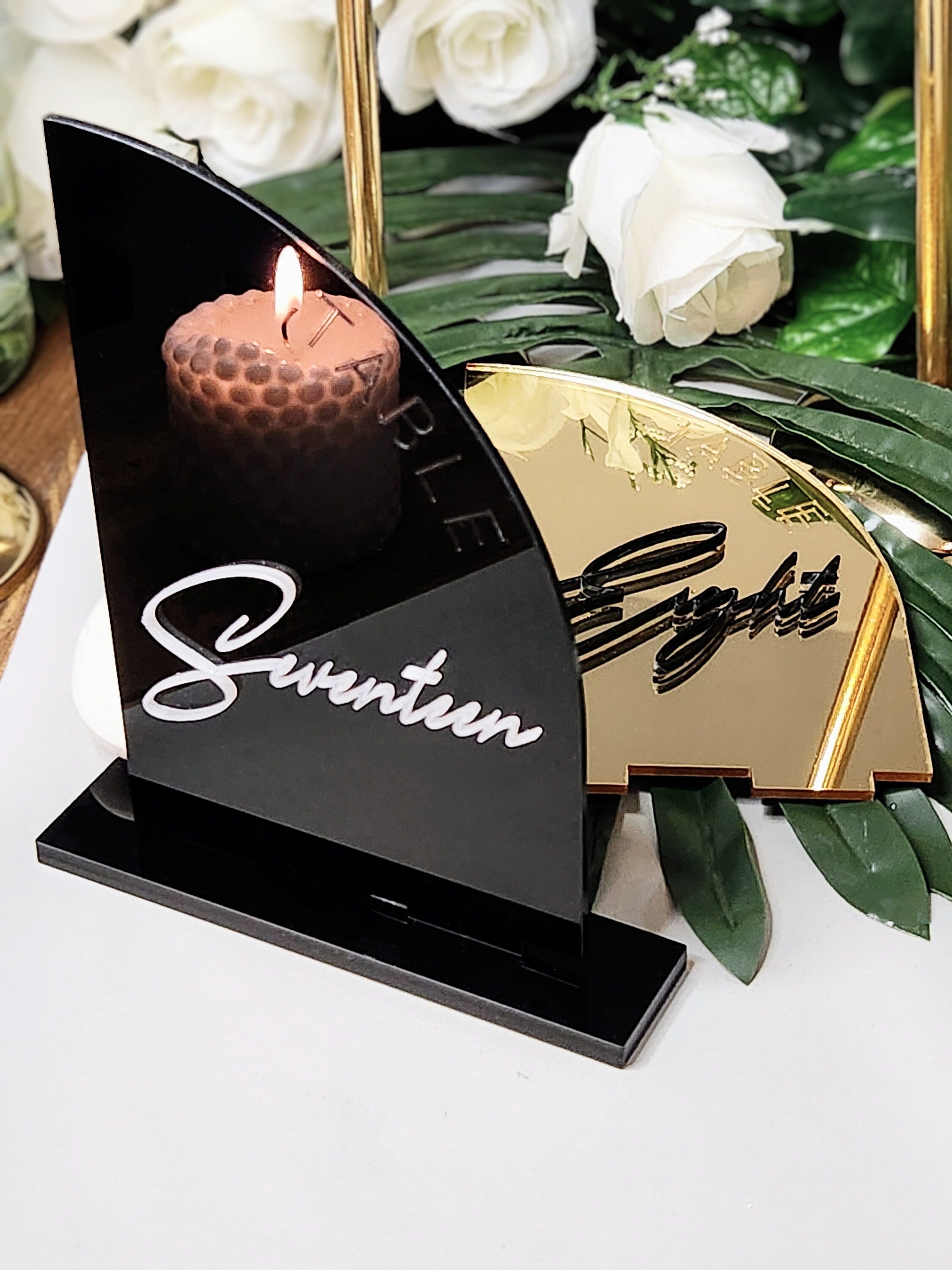 Acrylic wedding table numbers provide elegant table number signage that helps guests easily identify their seats at weddings, engagement parties, and rehearsal dinners. These table numbers serve as both a functional guide and a decorative table accent, enhancing the overall ambiance of your special event.