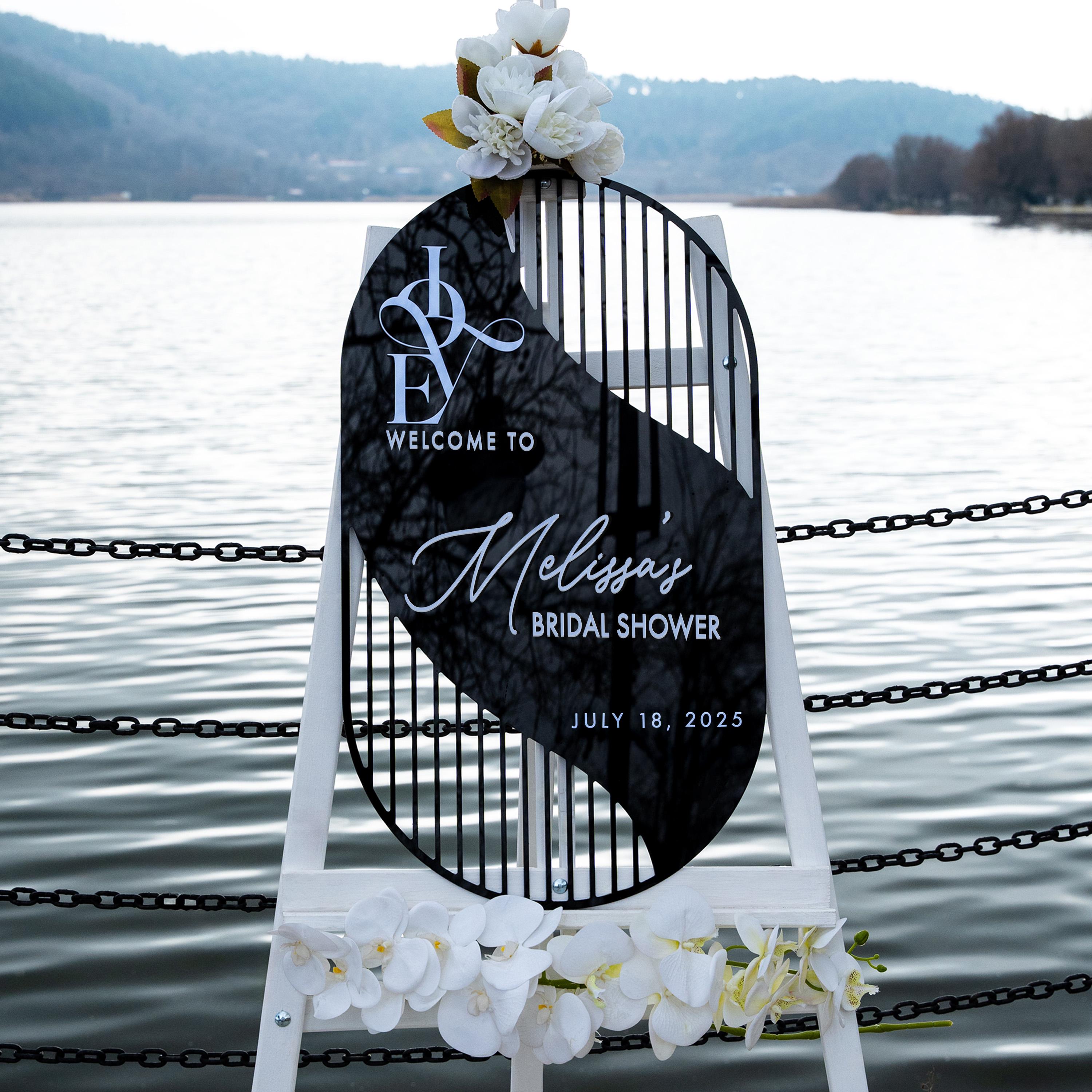 Create a stunning atmosphere for your bridal shower, engagement party, or pre-wedding celebration with this personalized bridal shower sign designed to elevate your event decor. This elegant and modern mirror acrylic sign adds a custom decorative touch that complements any sophisticated and feminine setting, making your special day truly memorable.
