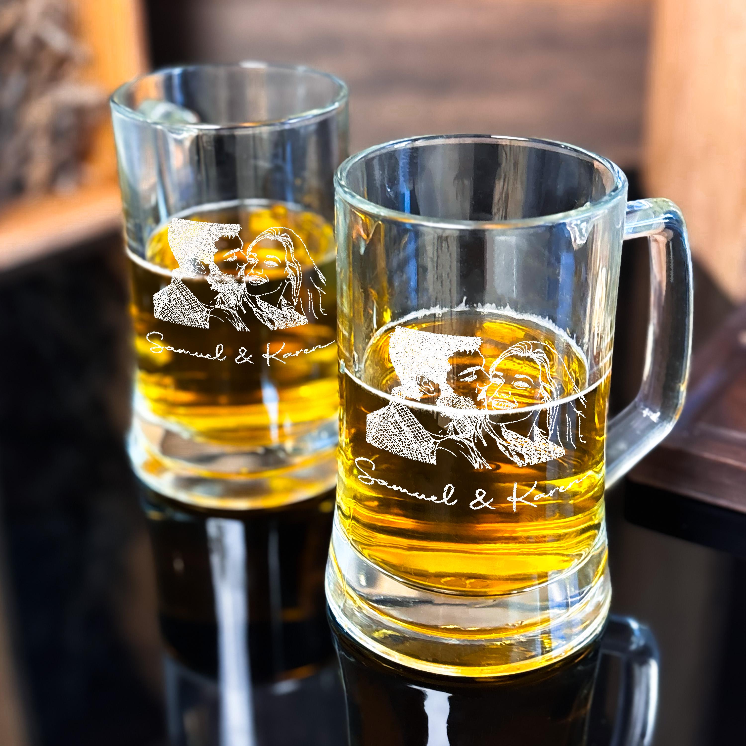 Engraved Beer Glass Personalized Beer Mug Couples Barware Gift Wedding Gift
