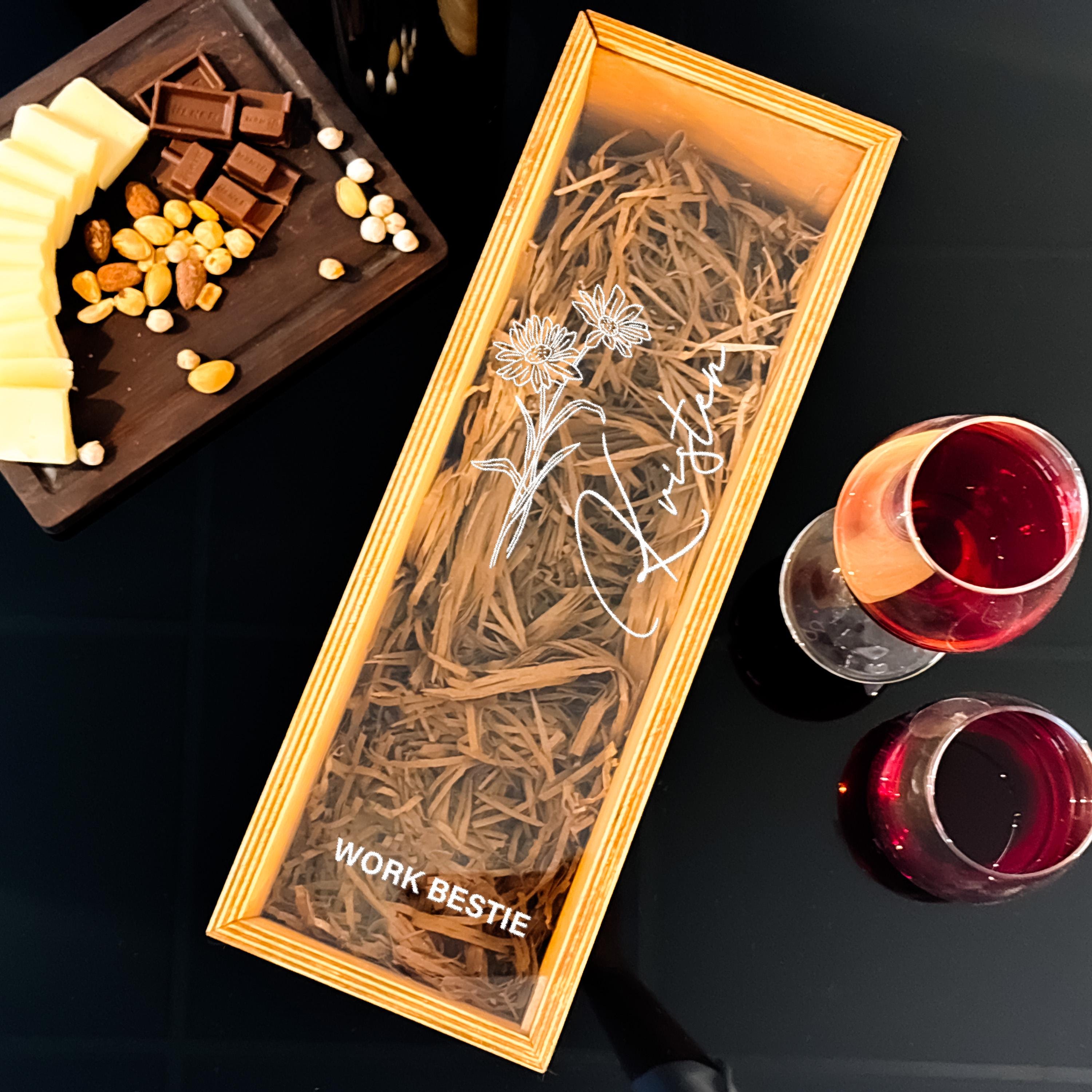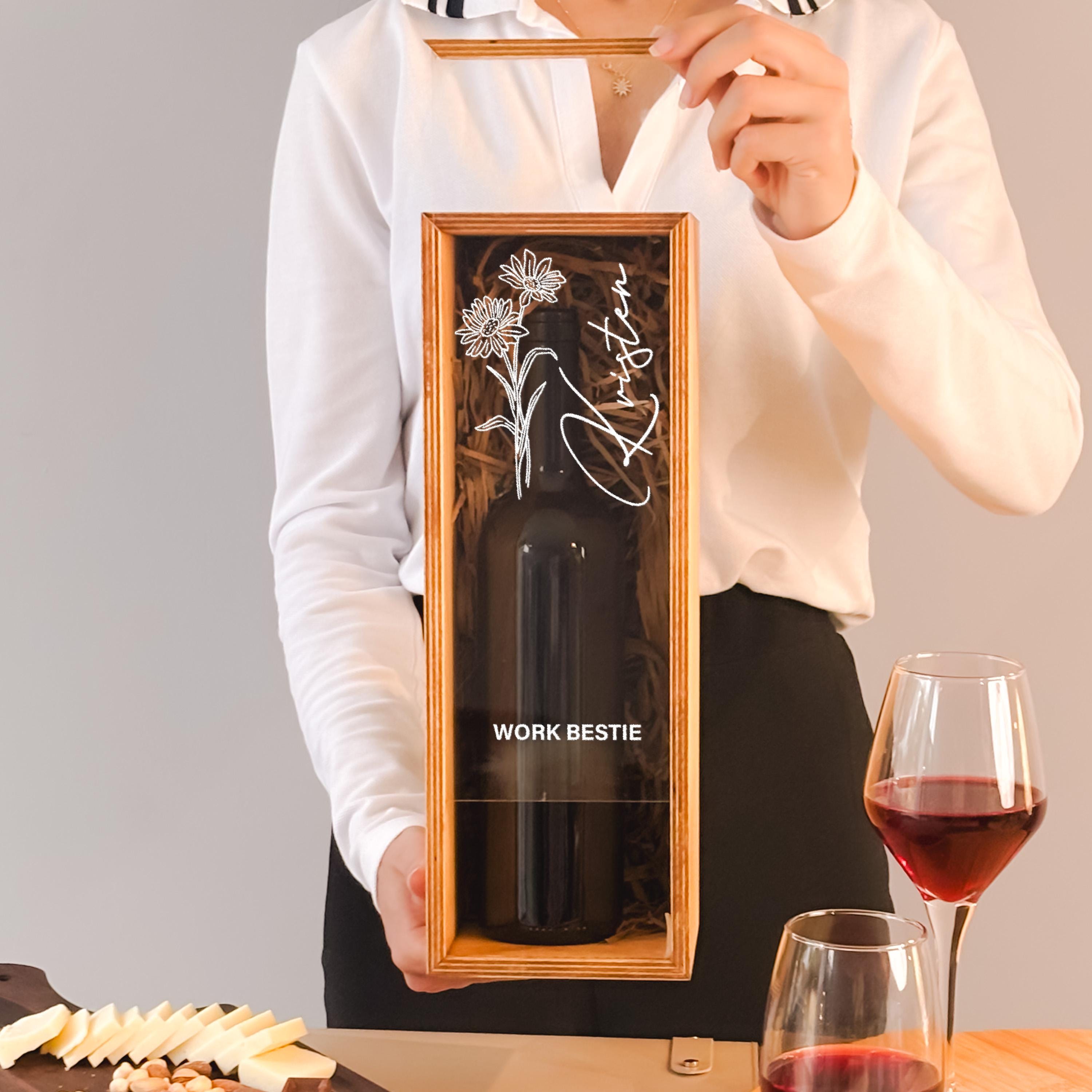 Personalized Wine Box Wooden Wine Box Engraved Bottle Holder Gift for Coworker