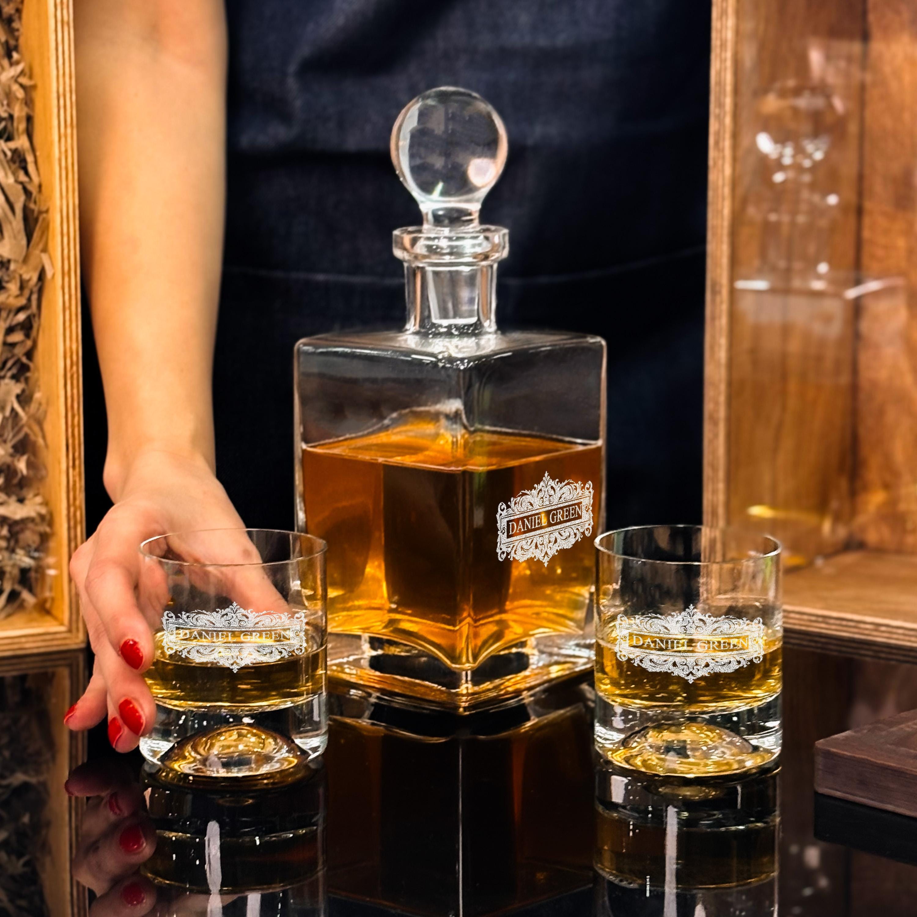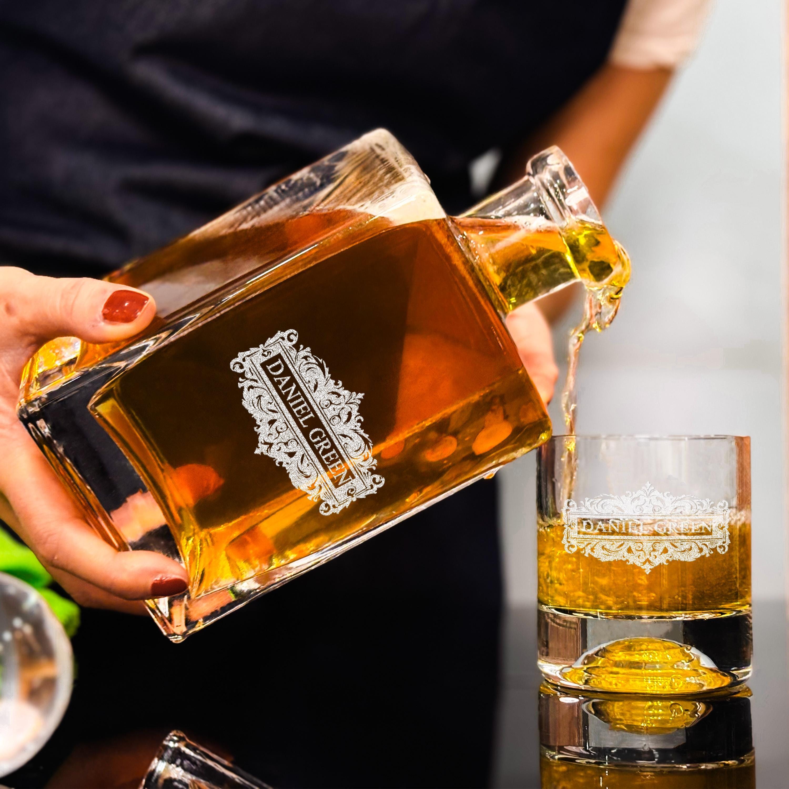 This custom decanter set brings a refined touch to any home bar, combining hand-blown glassware with engraved whiskey glasses that catch the light beautifully during an evening drink. Whether marking a wedding, anniversary, or housewarming, the personalized bourbon decanter set adds a thoughtful layer to celebrations and quiet moments alike.