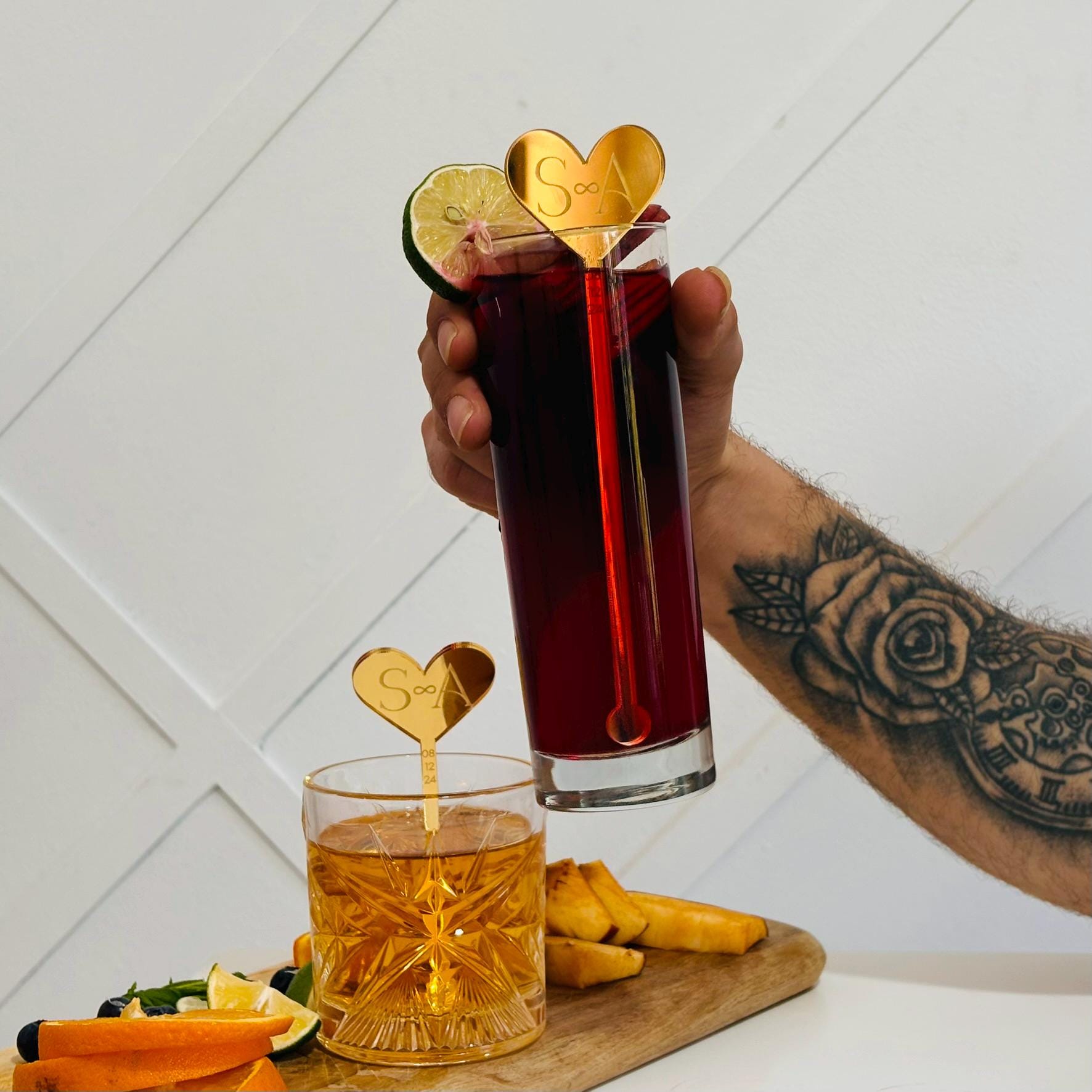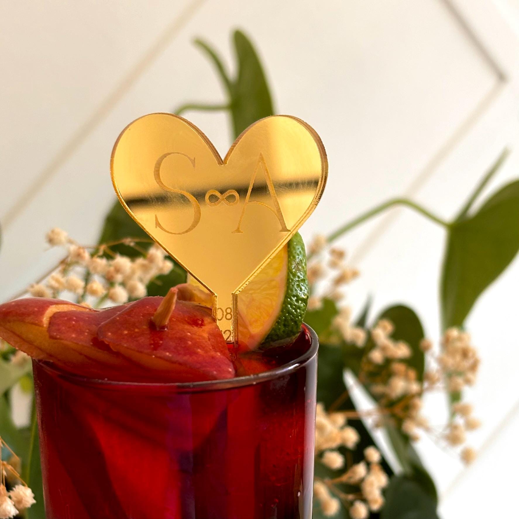 Custom heart drink stirrers bring a personalized touch to your wedding bar decor, elevating signature cocktails with stylish, decorative bar accessories designed to impress. These handcrafted drink stirrers blend elegance and function, making every toast memorable and every drink uniquely yours.