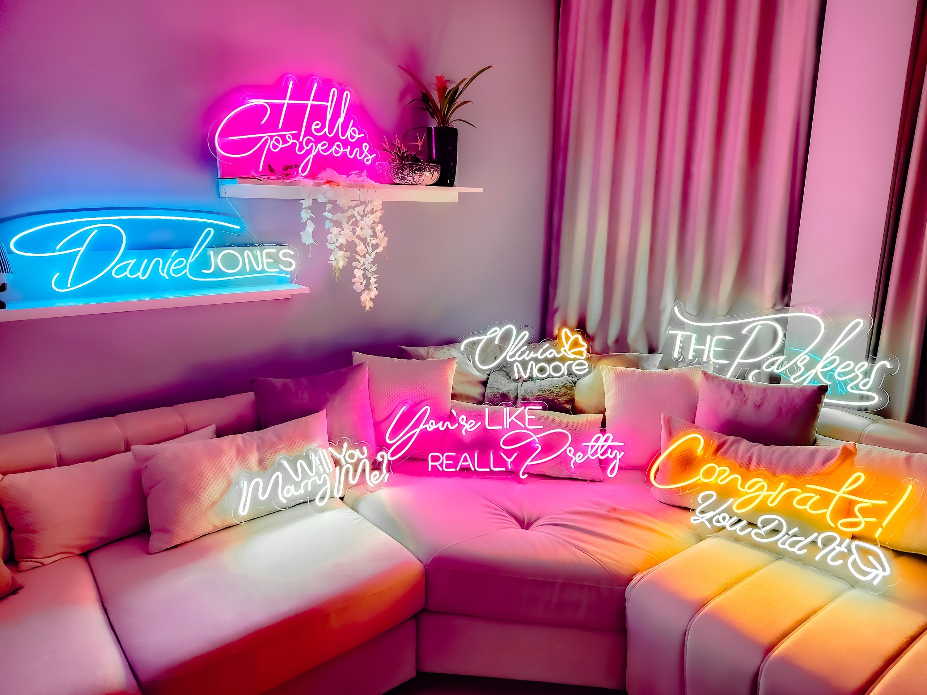 A custom neon sign adds a warm, personal touch to weddings, anniversaries, and special celebrations, transforming any room into a meaningful space filled with light and memories. Handmade with care, these personalized led signs bring vibrant energy to your home or party neon decor, creating lasting impressions that reflect your unique story. Whether brightening a nursery or accenting a cozy living area, the acrylic neon sign becomes a cherished keepsake and thoughtful personalized gift idea.