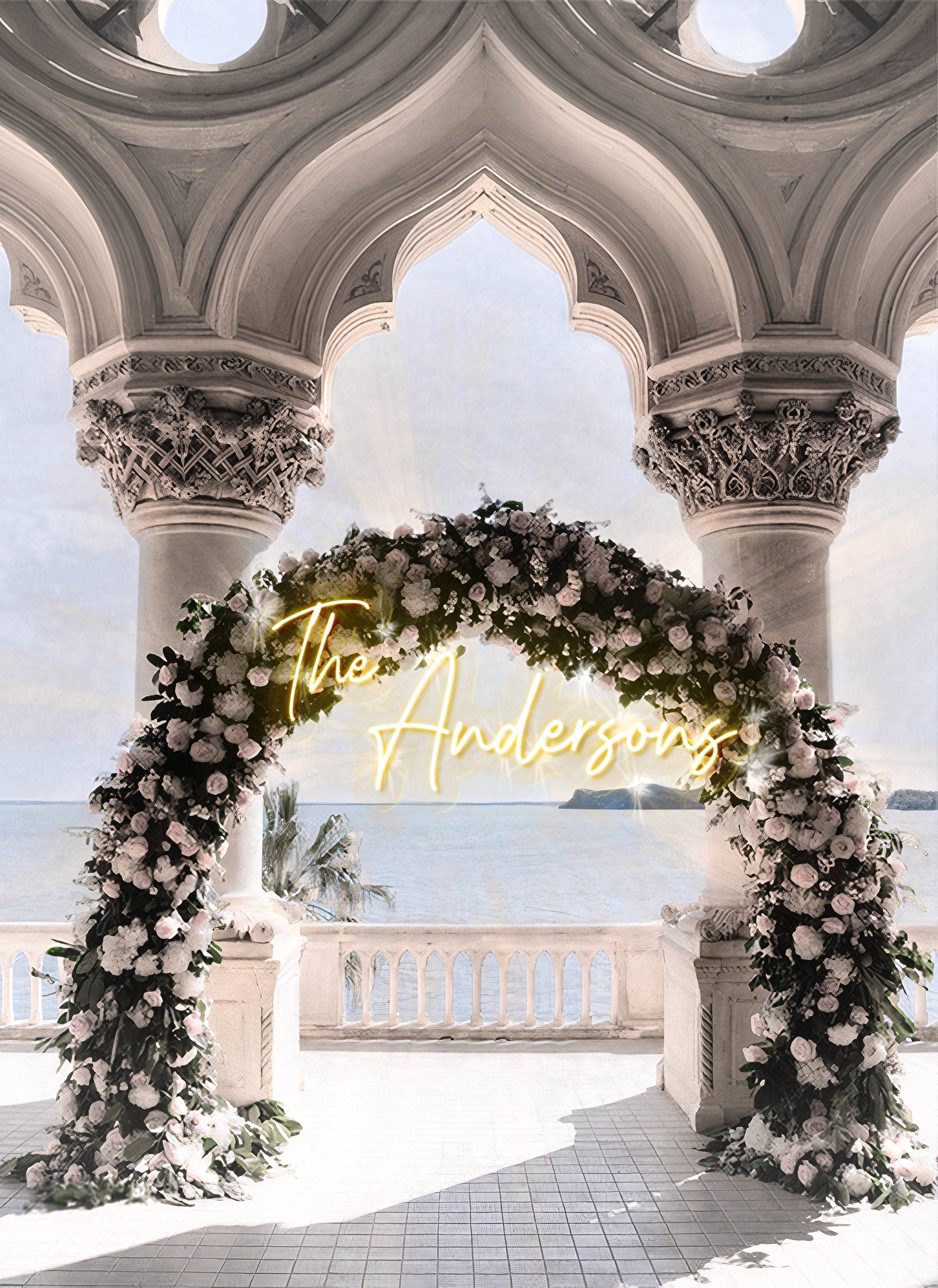 A custom wedding neon sign transforms any space into a glowing celebration of love, perfect for weddings, engagements, anniversaries, or birthdays. Personalized wording adds a heartfelt touch that turns this handcrafted neon sign into a cherished keepsake, illuminating memories in homes or event venues with warm, energy-efficient light. Whether used as wedding neon decor or an illuminated wedding sign, it brings modern wedding signage charm and vibrant ambiance to every special moment.