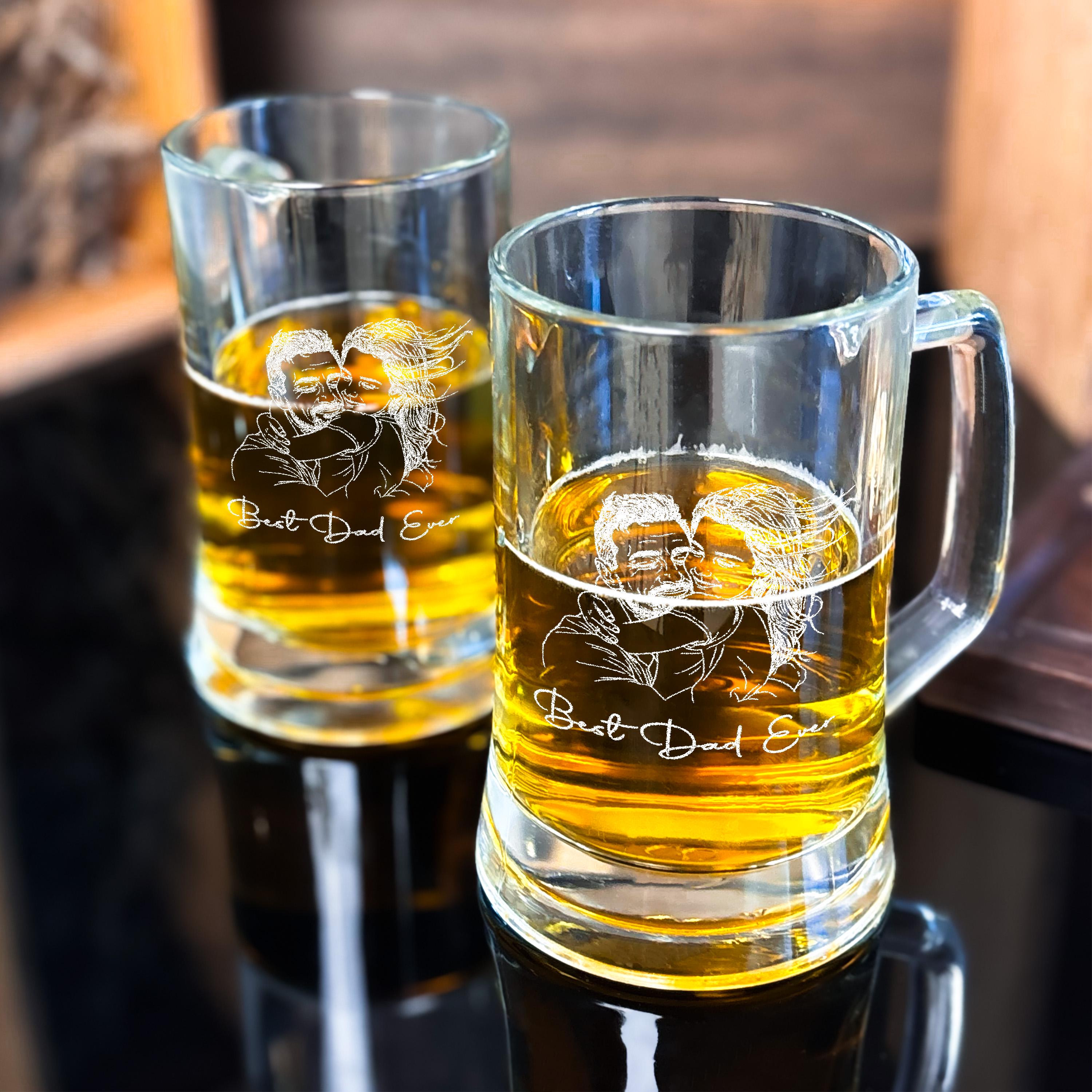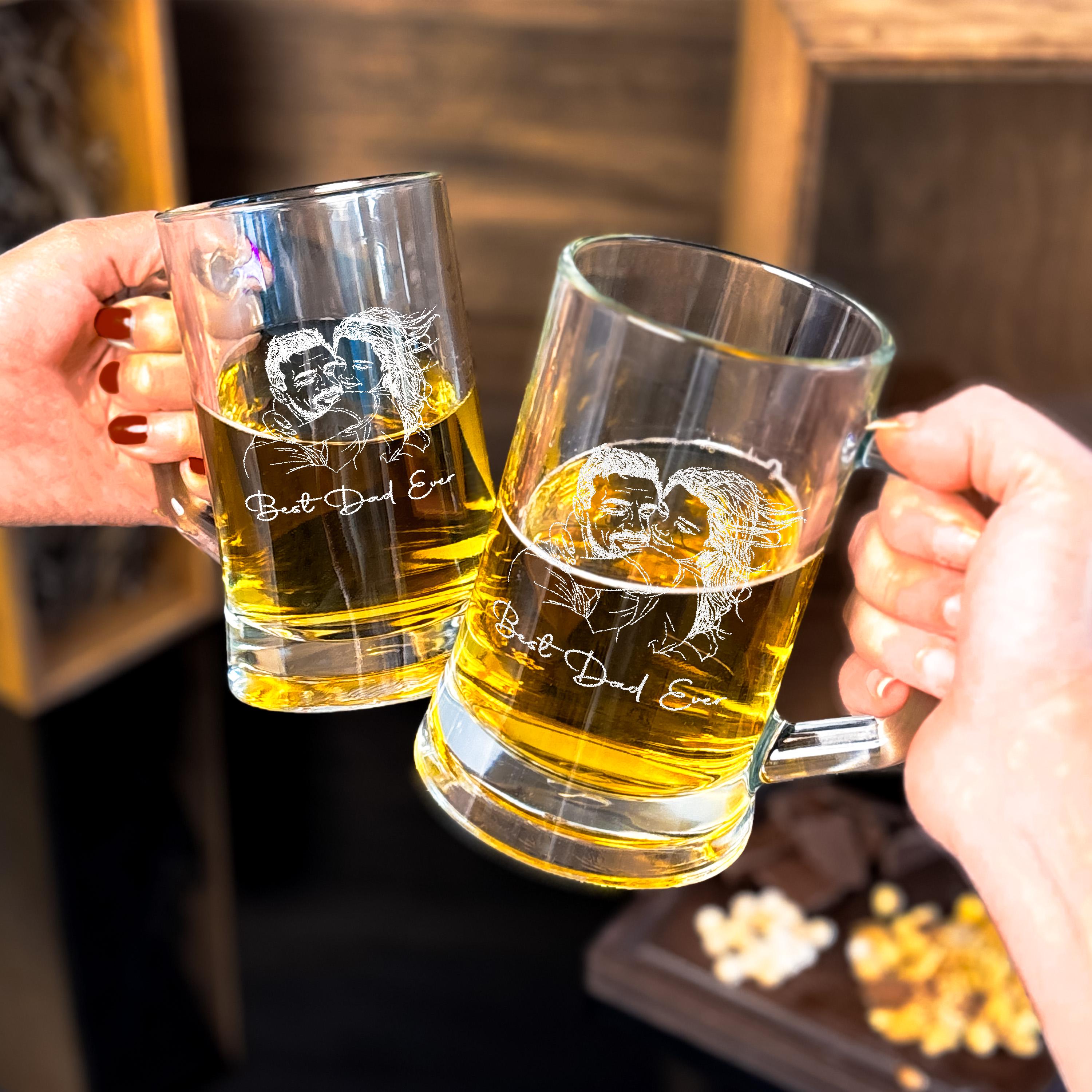 Engraved Beer Mug Custom Beer Glass for Dad Birthday Gift with Handle