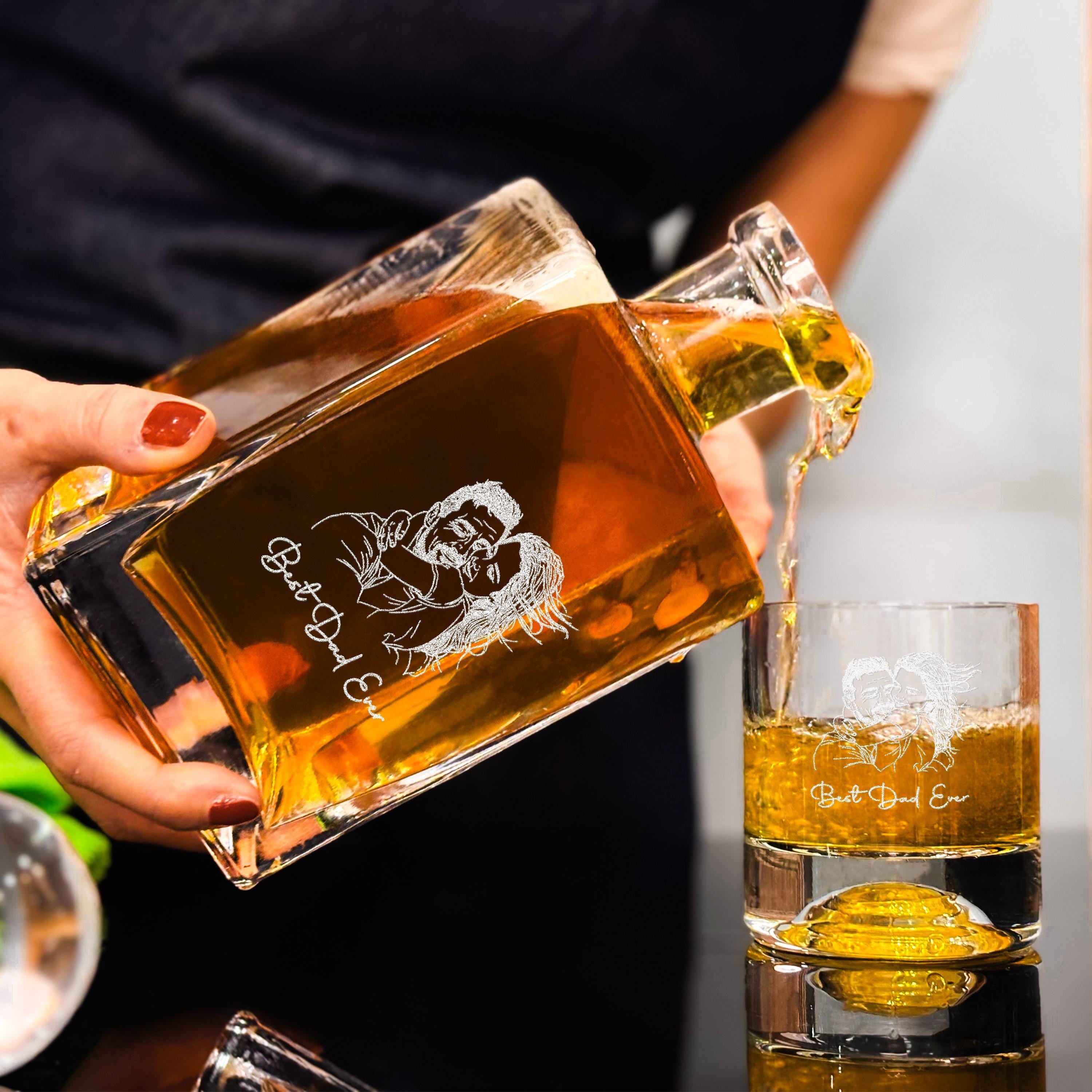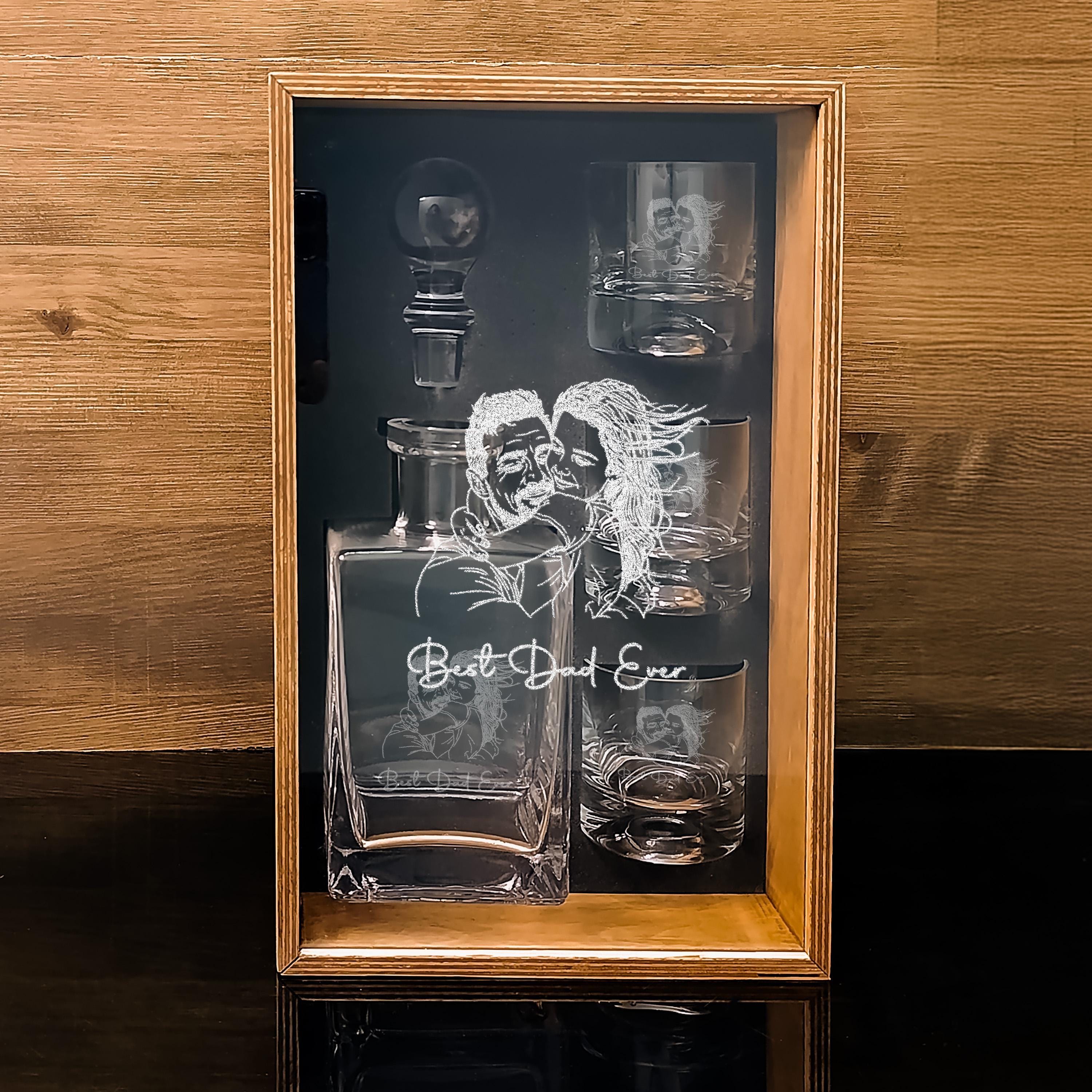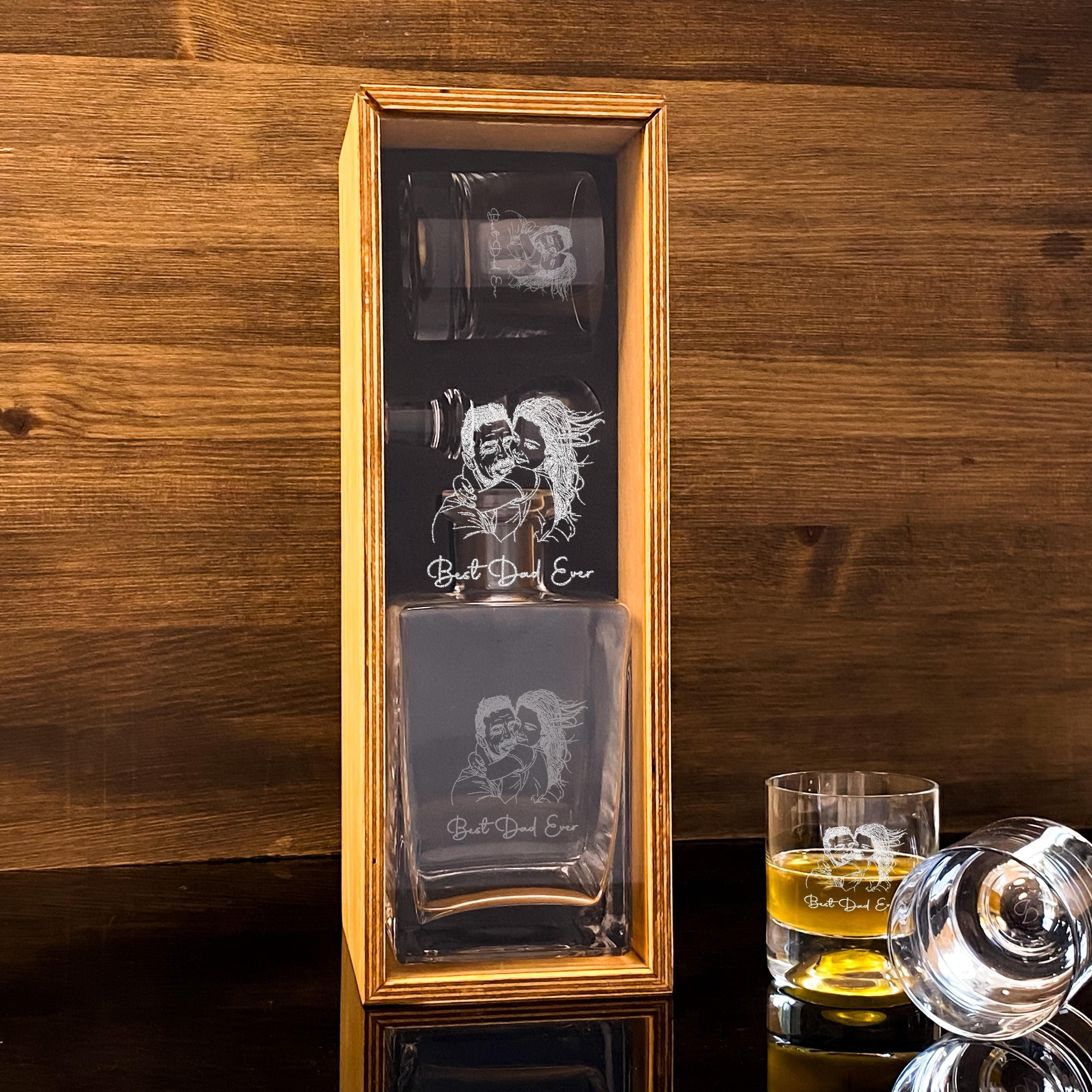 Engraved Whiskey Decanter With Personalized Bourbon Glasses And Custom Wood Gift Box For Dad Birthday Gift Idea