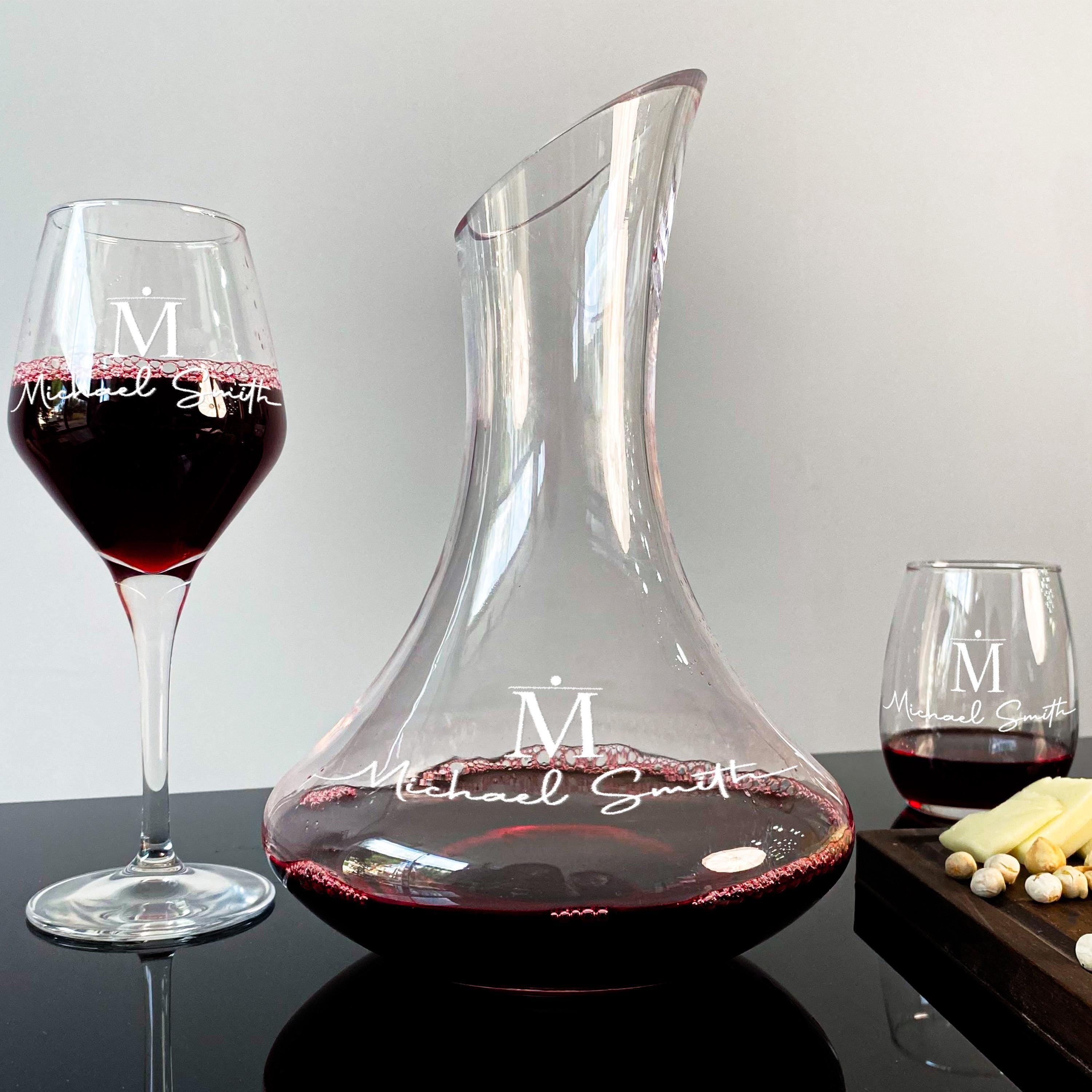 Engraved Decanter Set with Personalized Wine Glasses Wedding Gift for Him