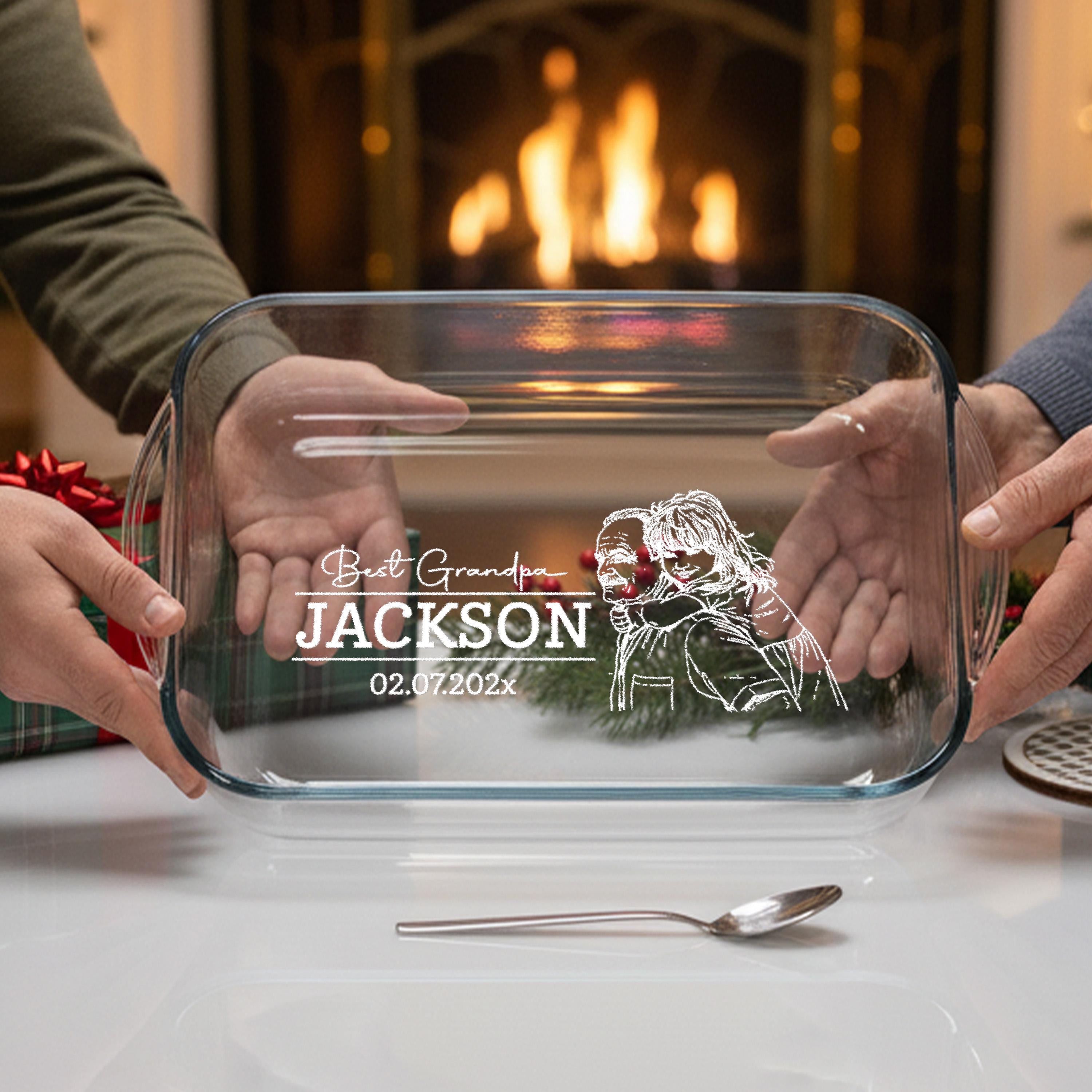 An engraved glass baking dish makes a heartfelt gift for grandpa, mom, or newlyweds who cherish family meals and kitchen traditions. Perfect for birthdays, Christmas, or Father’s Day, this personalized casserole dish carries a custom portrait that turns everyday cooking into a warm memory. It sits proudly in the kitchen as both a useful bakeware piece and a keepsake that celebrates family cooking. Giving this thoughtful gift brings a special touch to any occasion where love and food come together.