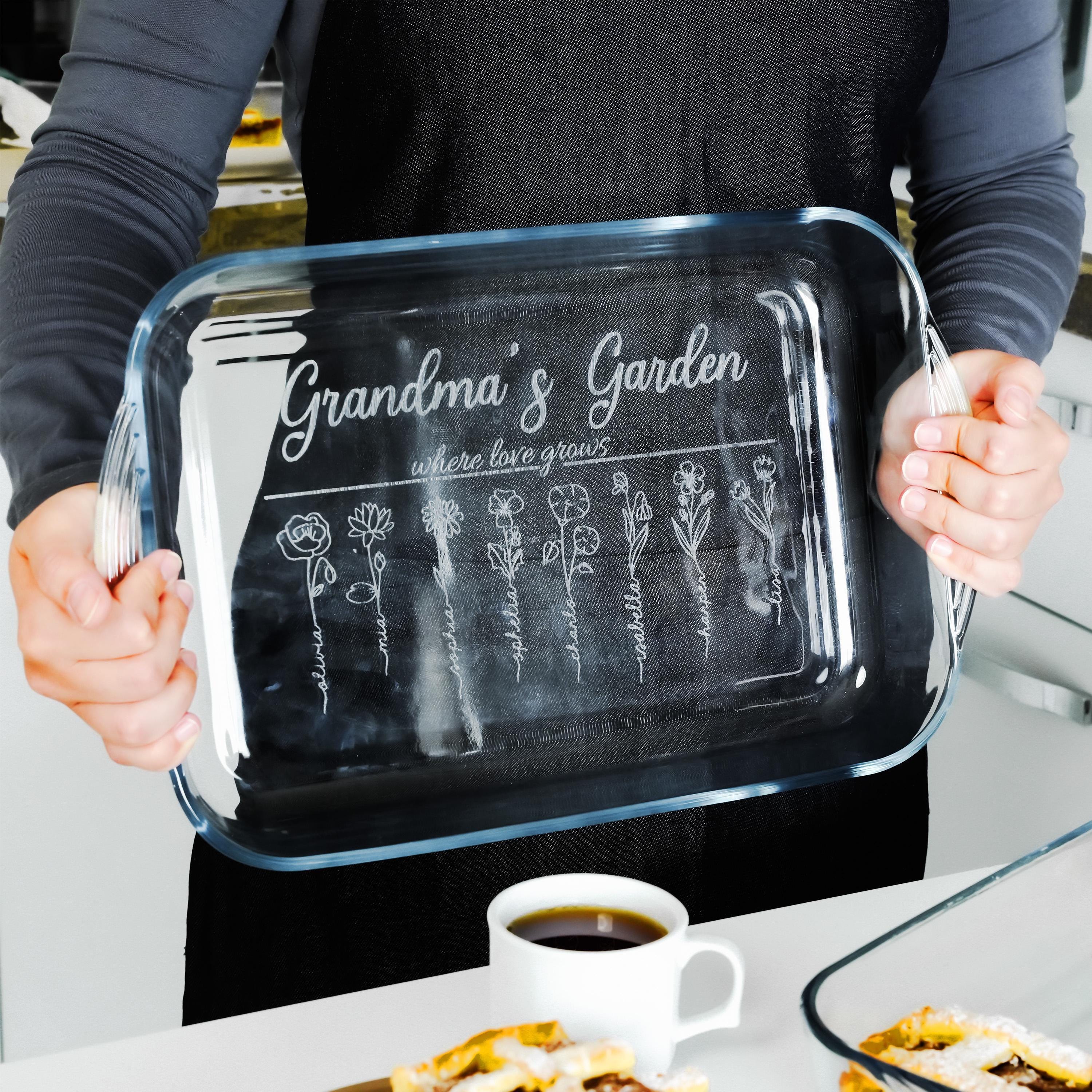 Engraved Casserole Dish Personalized Baking Dish With Birth Month Flowers Gift