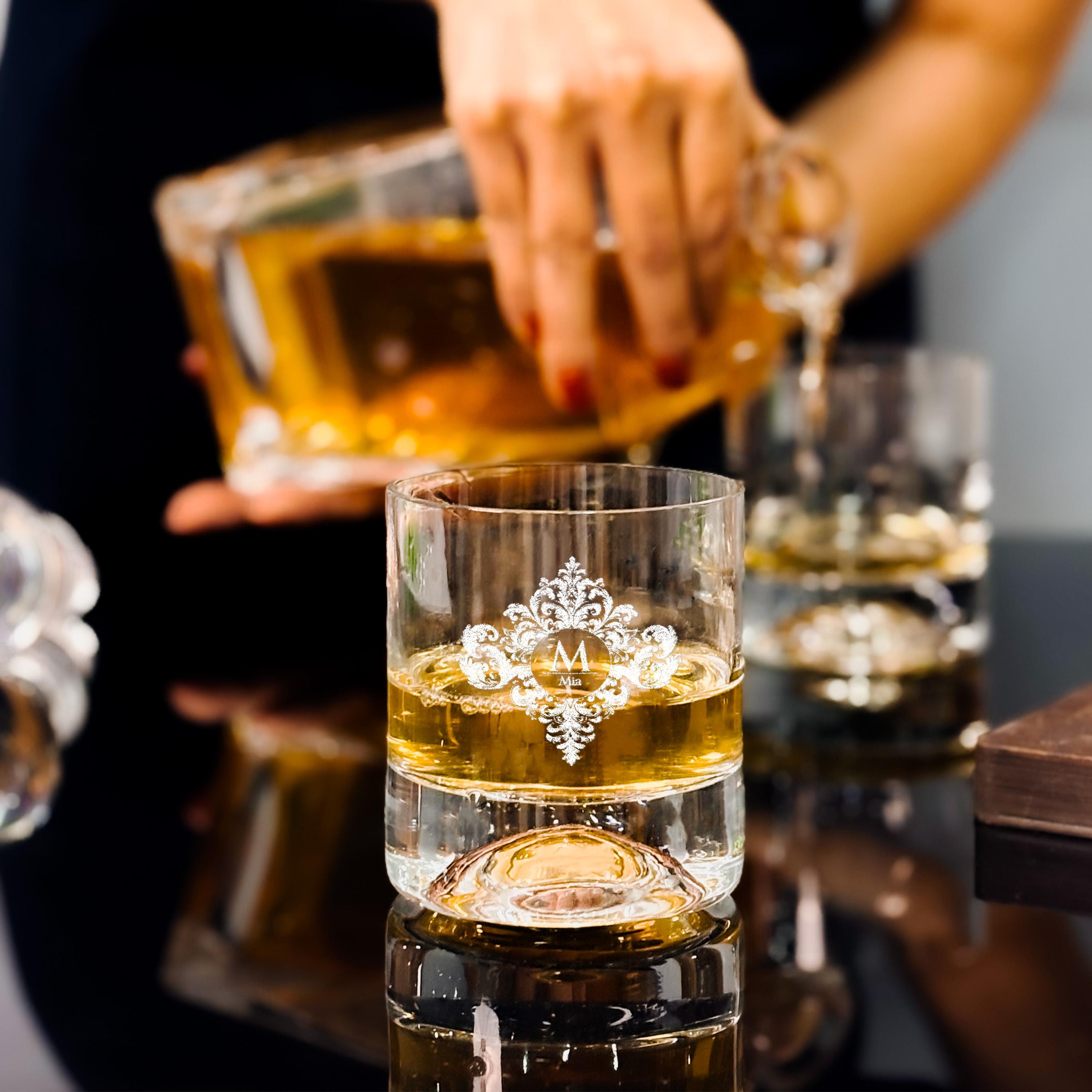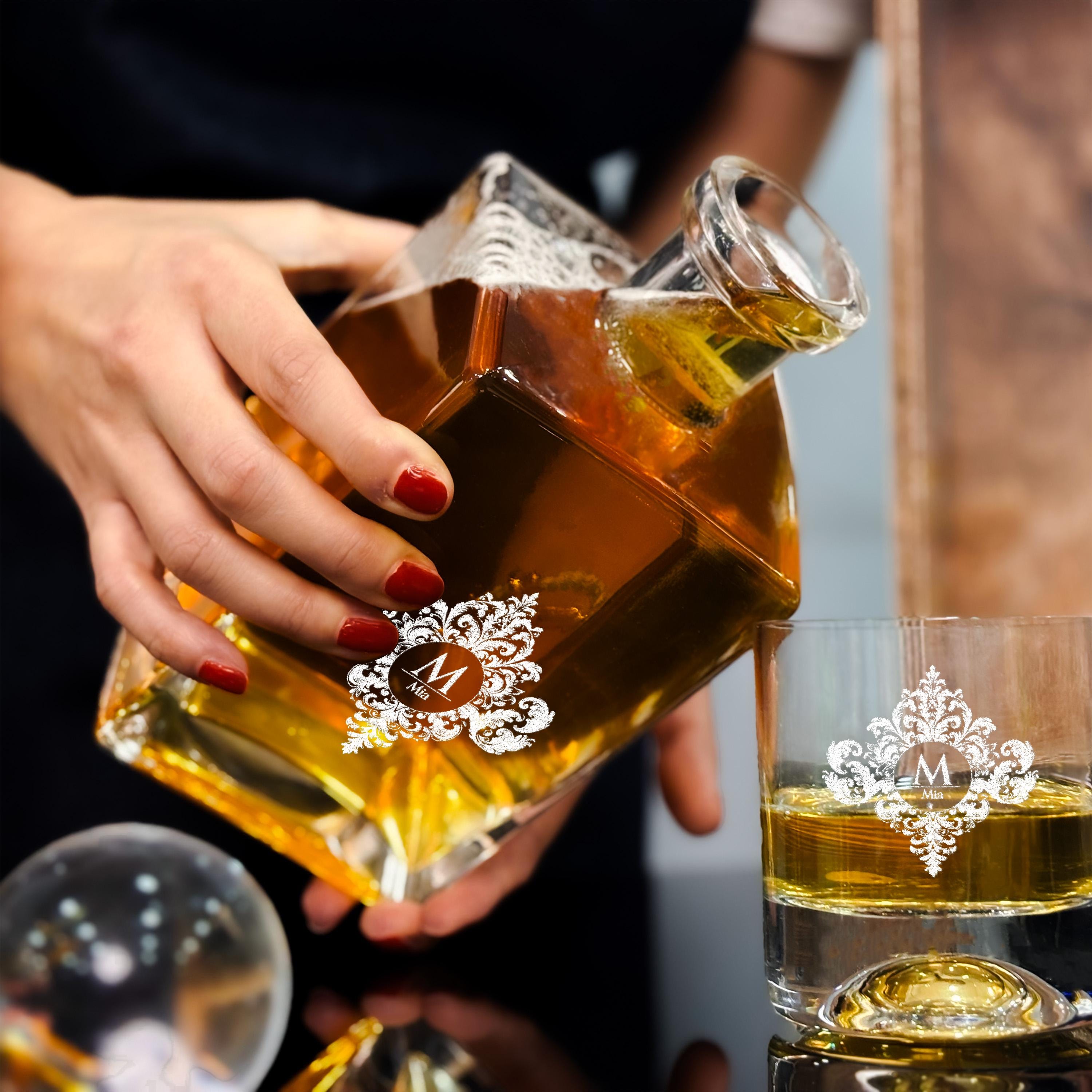 Engraved whiskey glasses bring a personal touch to any home bar, making evenings with friends or quiet celebrations feel a little more special. This whiskey decanter set fits naturally into moments like weddings, anniversaries, or housewarmings, offering a thoughtful way to enjoy bourbon or other spirits. The custom details on each glass and decanter add subtle charm without overwhelming the experience.