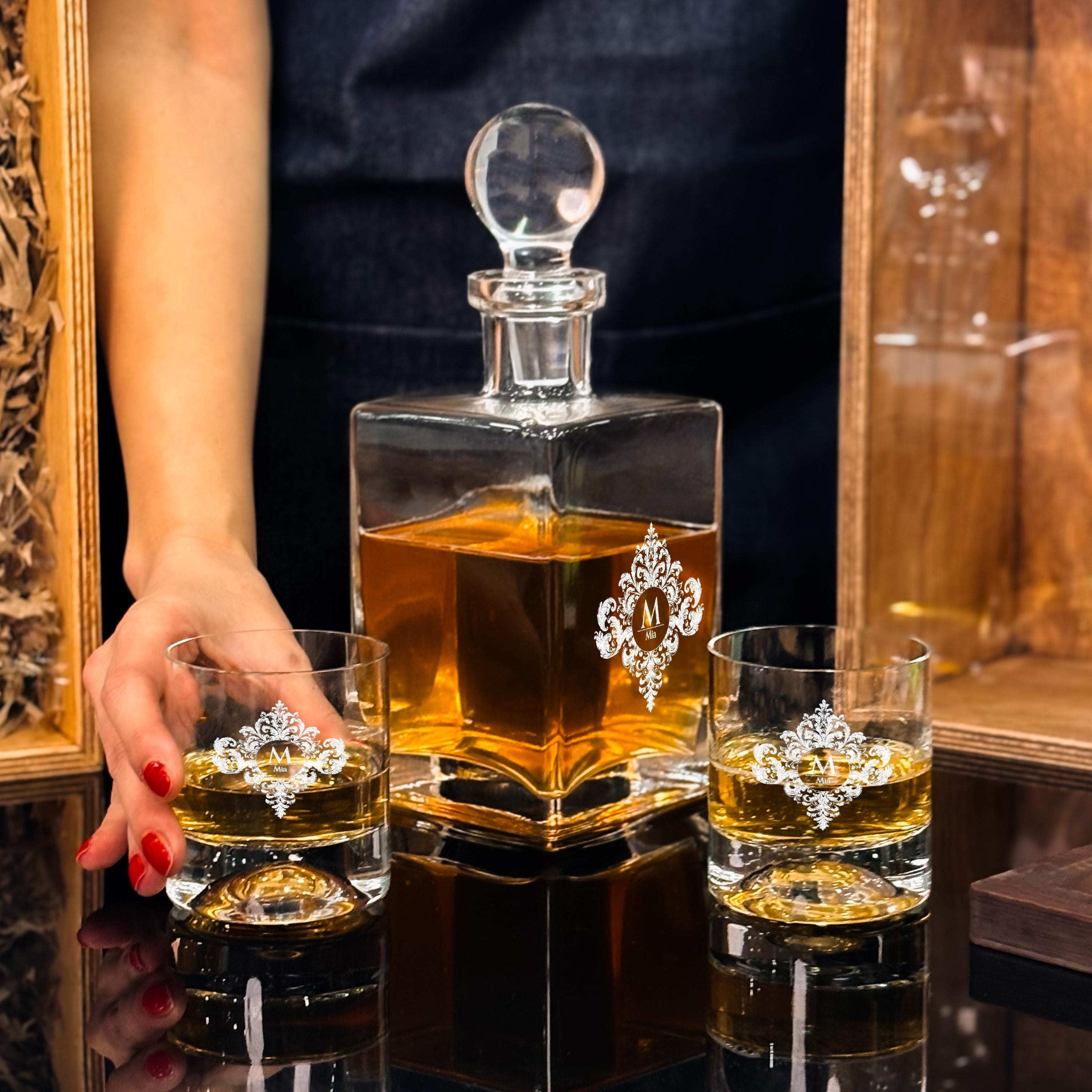 Engraved Whiskey Glasses and Decanter Set for Wedding Gift Anniversary Gift