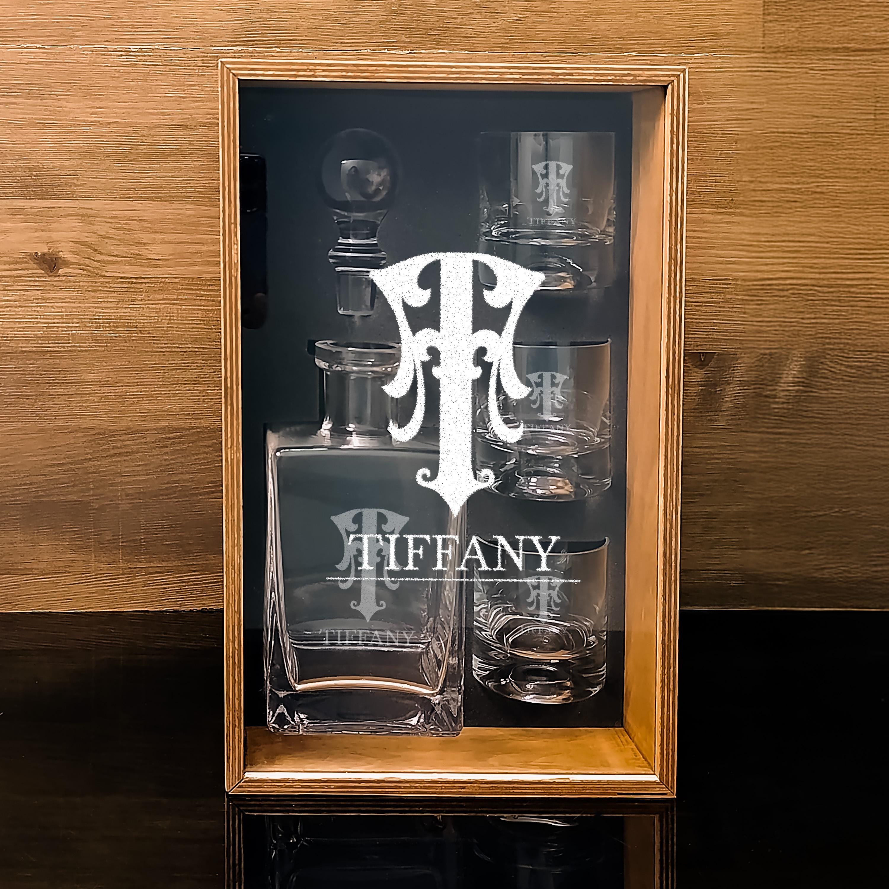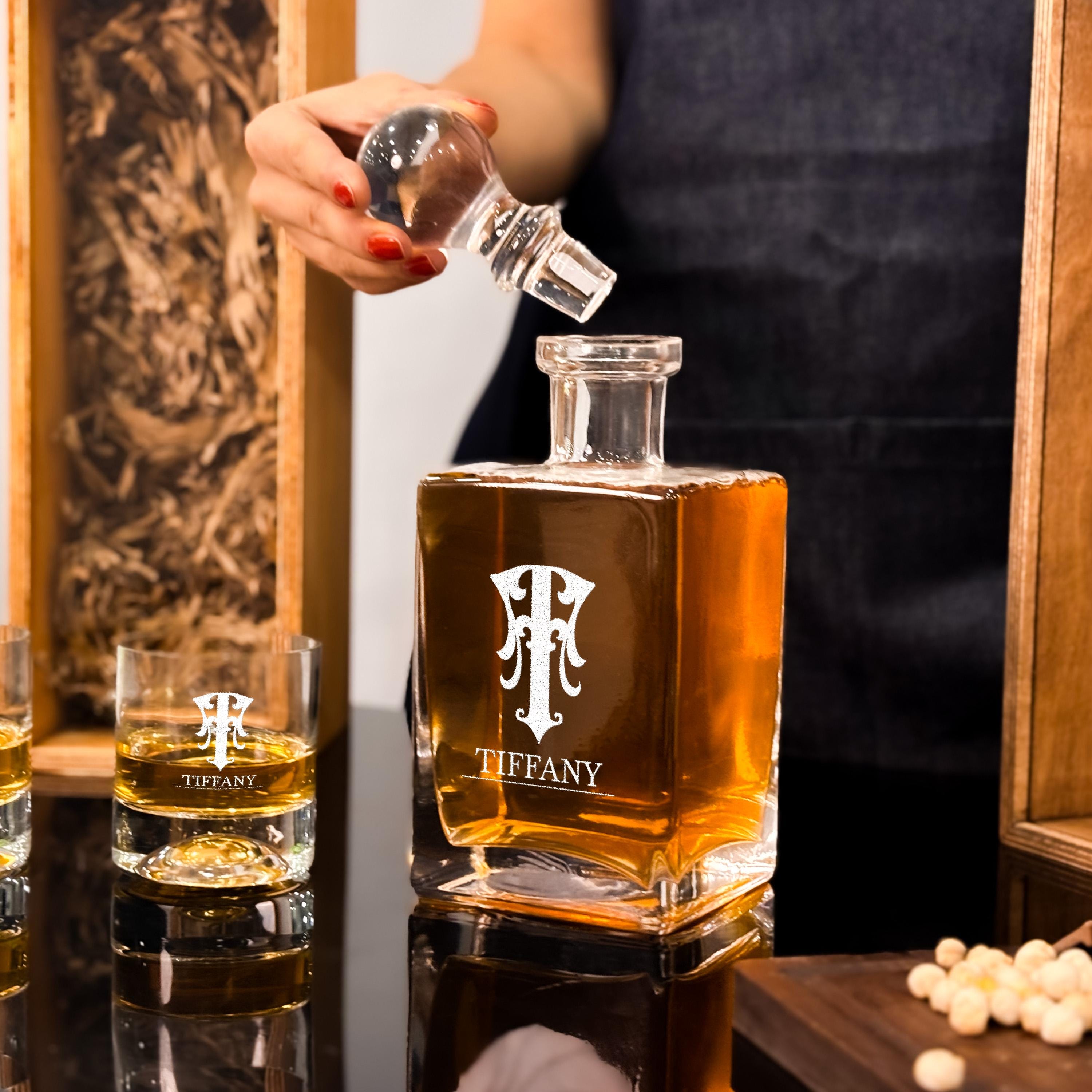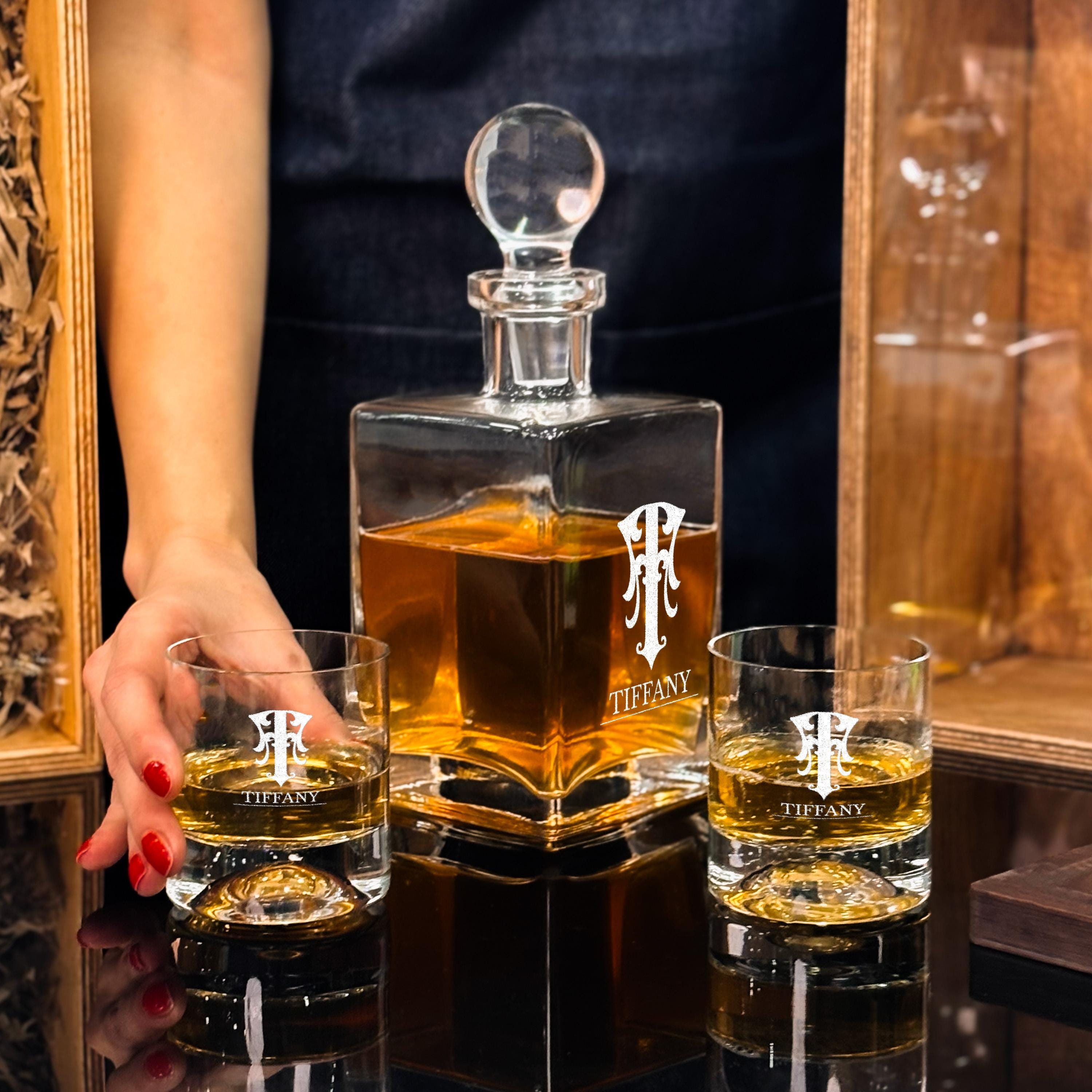 Engraved whiskey glasses add a personal touch to evening drinks or celebrations, making them a thoughtful gift for weddings, anniversaries, or housewarmings. This custom set pairs beautifully with a whiskey decanter, creating a warm atmosphere at home bars or special gatherings while honoring meaningful moments with subtle, elegant engraving.
