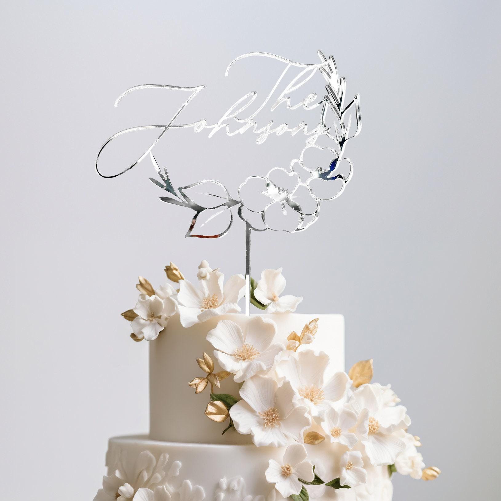 Gold Wedding Cake Topper - Custom Mirror Wedding Cake Decor Floral Daisy Collection