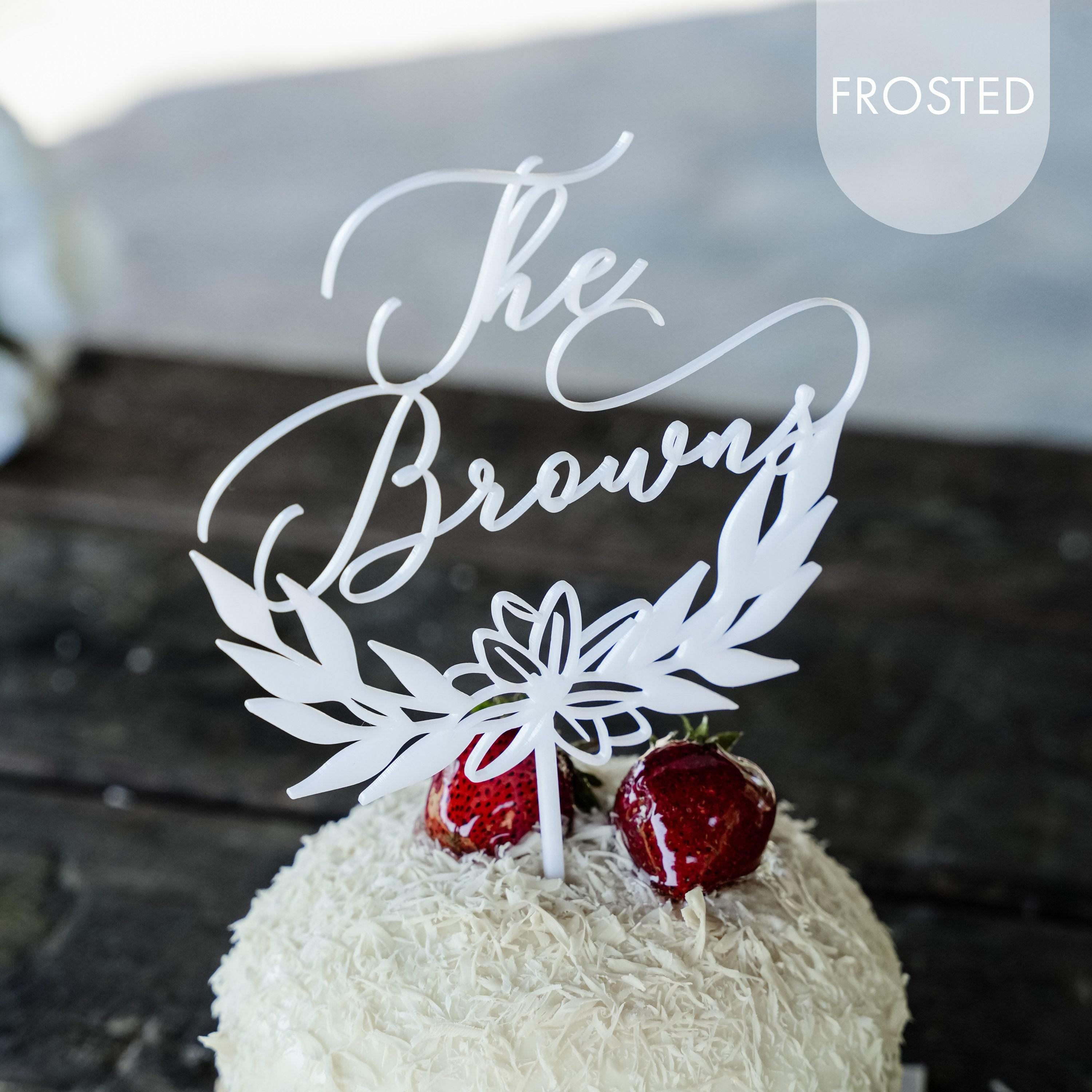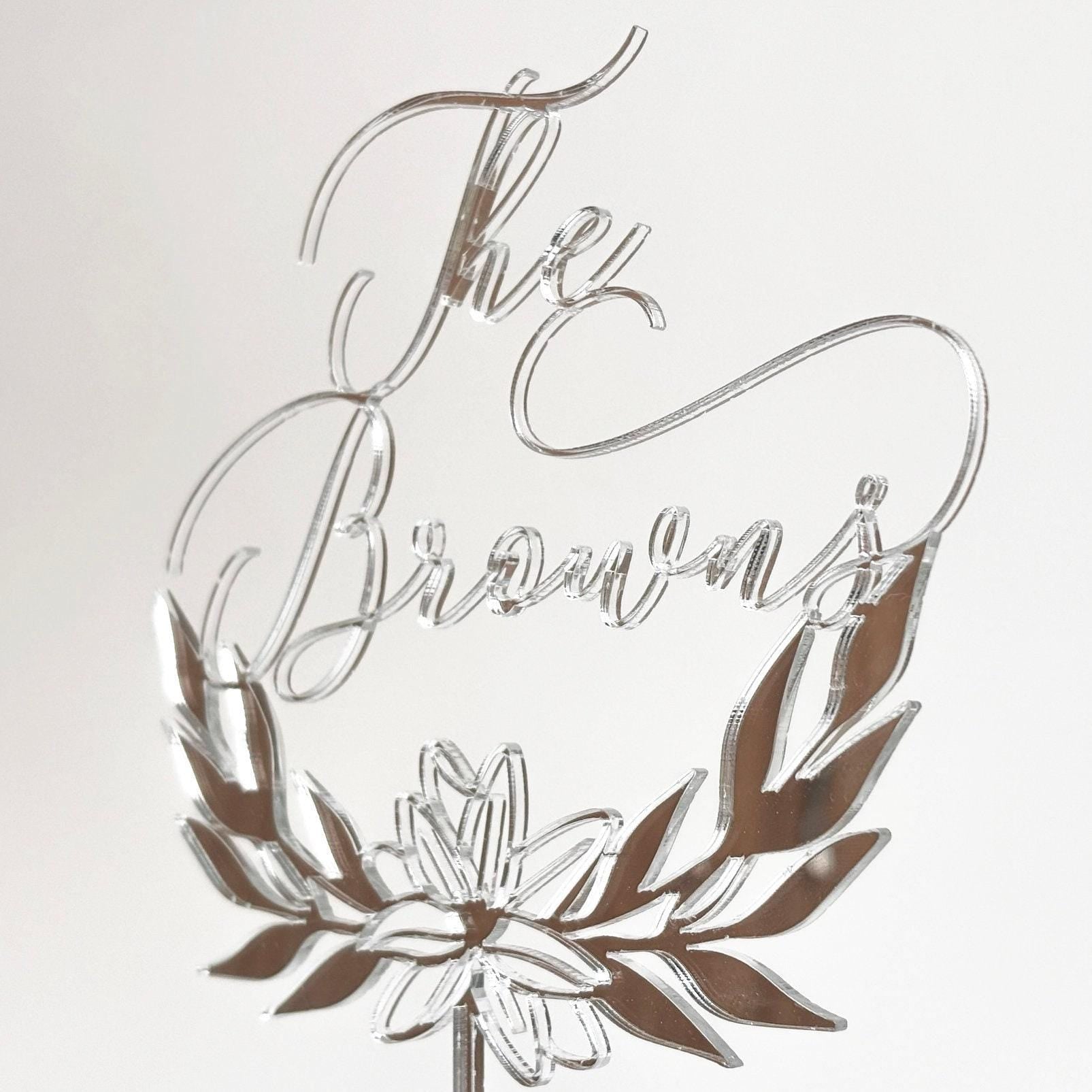 Our floral wedding cake topper offers a personalized design that adds a charming decorative accent to wedding and engagement cakes, elevating each celebration with its elegant, custom-crafted style.