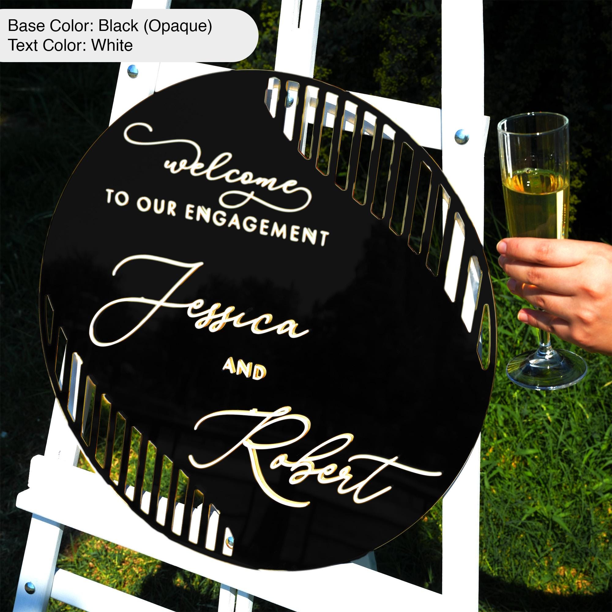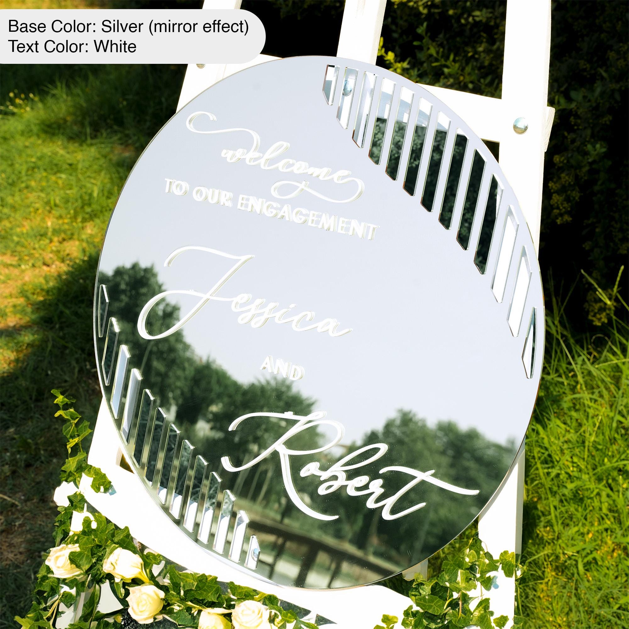 The Round Gold Mirror Welcome Sign for Wedding or Engagement from the Miami Collection is a gold acrylic wedding sign designed to create an elegant first impression at your celebration. This exquisite piece features a smooth, glossy surface with 3D layered acrylic letters that add depth and sophistication to your wedding welcome sign. It perfectly fits any wedding reception decor or bridal shower decoration, making your event unforgettable.