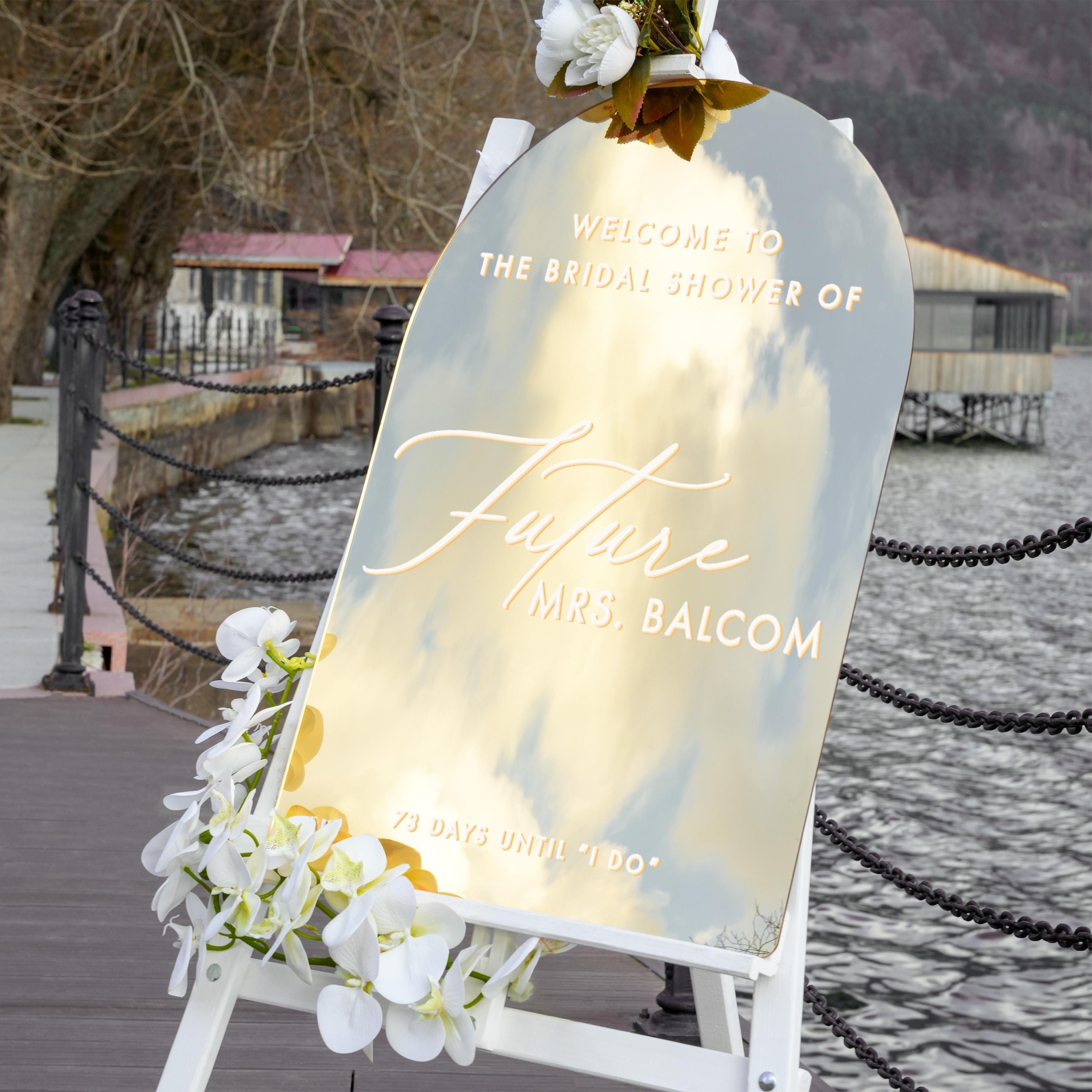 Gold Mirror Bridal Shower Welcome Sign and Bachelorette Party - Daisy Collection