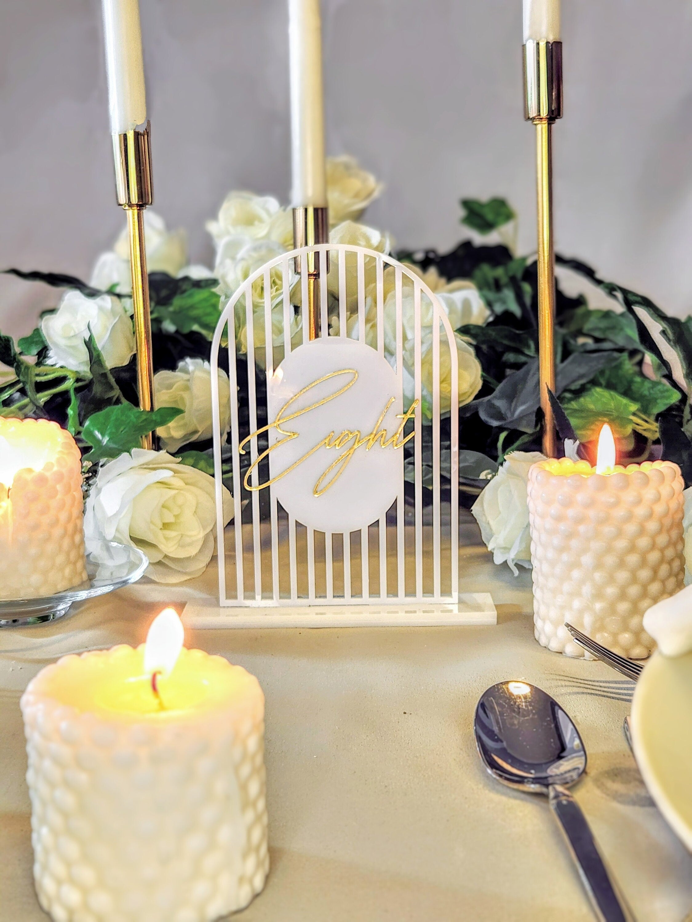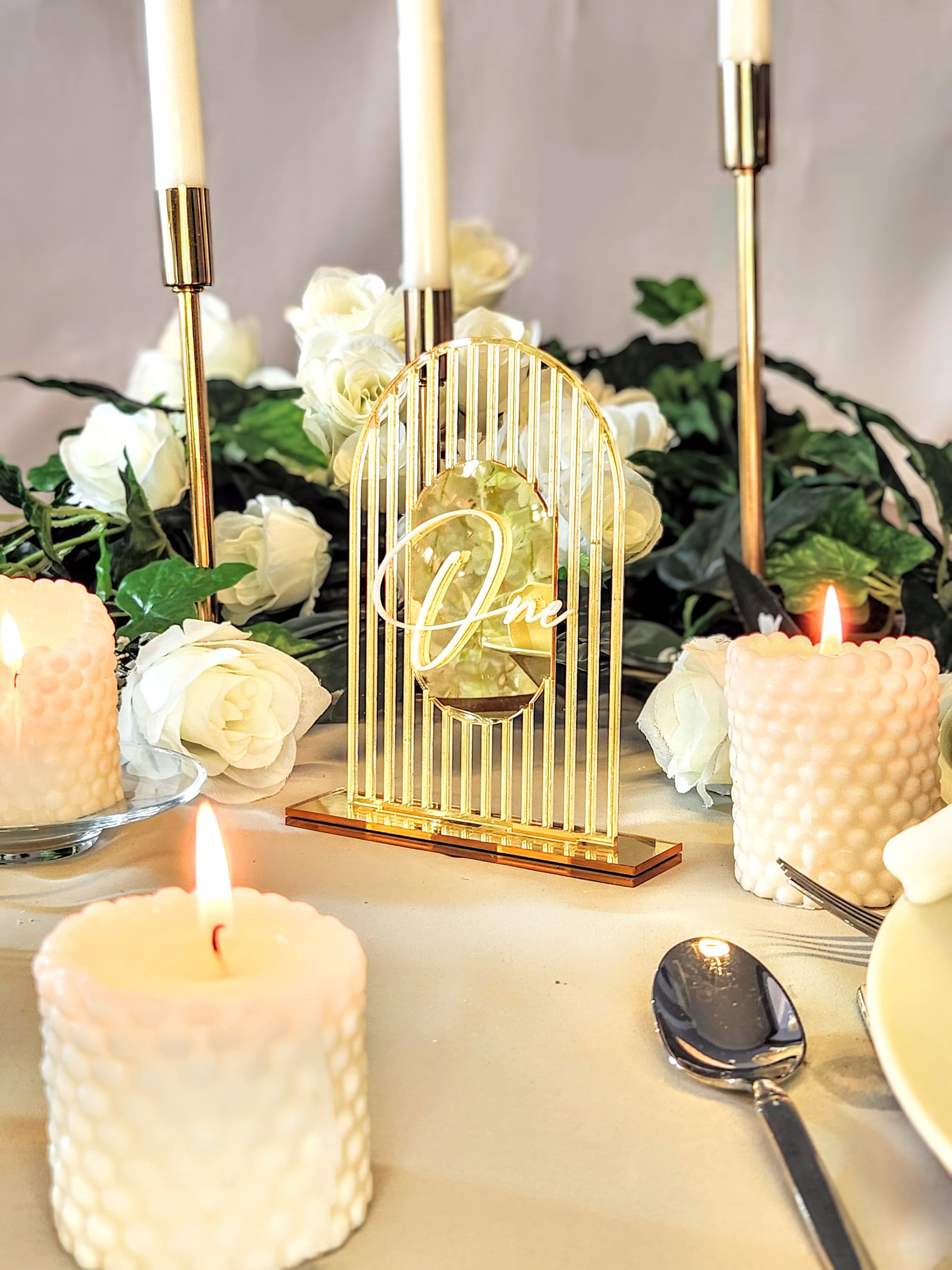 Create a captivating ambiance with elegant modern table numbers. These stylish table signs effortlessly elevate any occasion with their modern and sophisticated design. Perfect for weddings, parties, and events, they seamlessly blend into various themes, including boho and rustic styles.