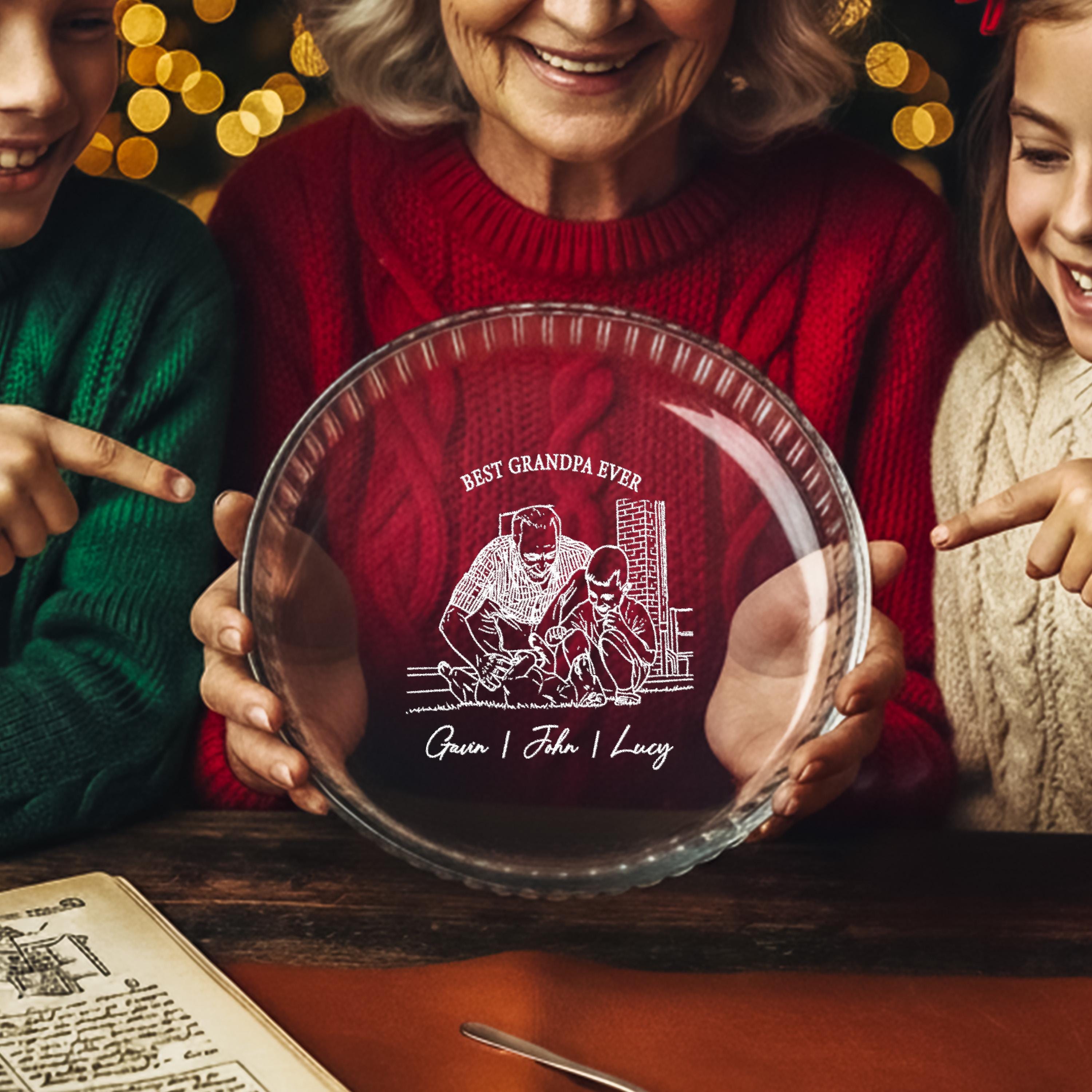 Engraved Glass Casserole Personalized Baking Pan Grandpa Photo Gift Family Heirloom