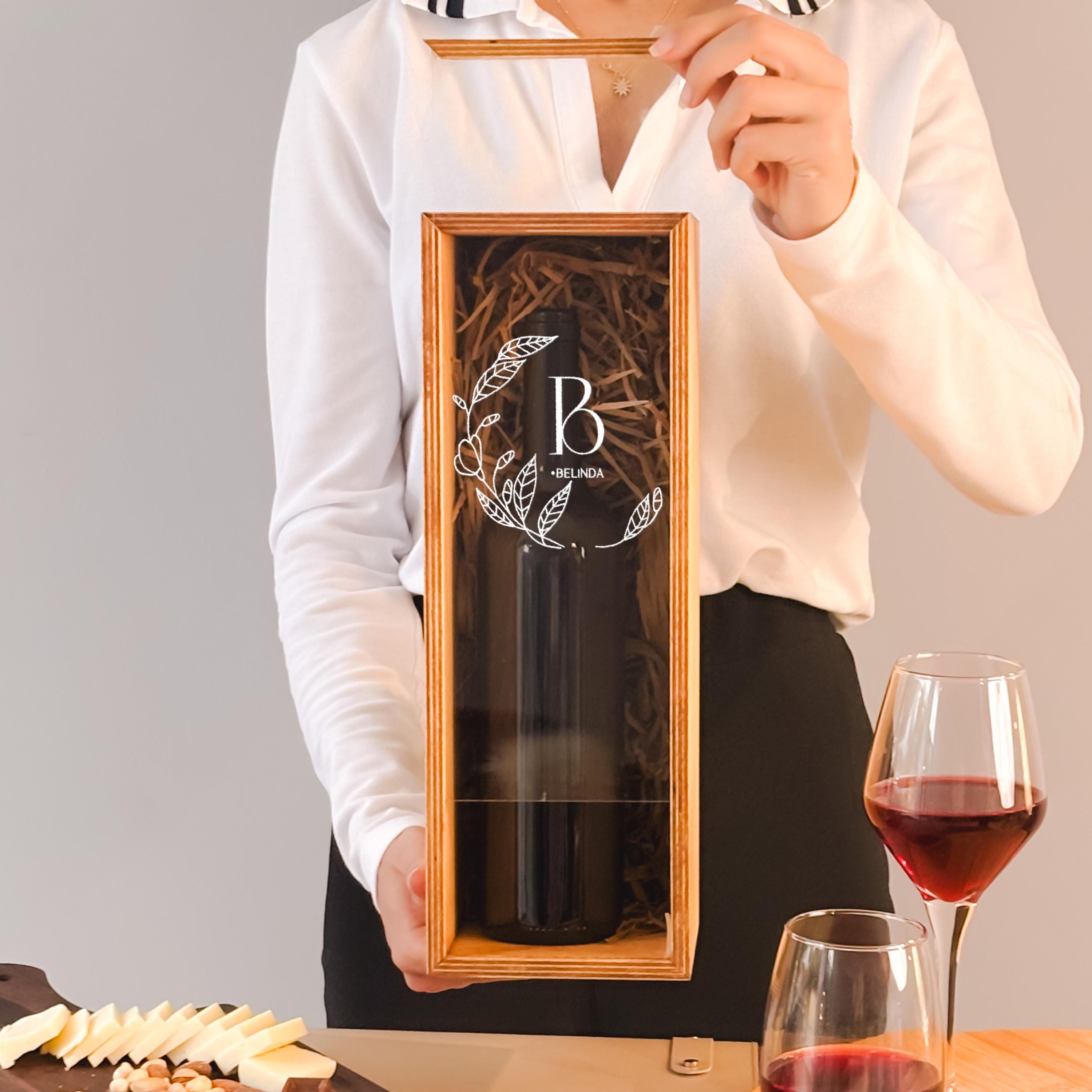A personalized wine box crafted from wood offers a thoughtful way to present a cherished bottle for weddings, birthdays, or housewarmings. The engraved acrylic lid adds a subtle custom touch that makes each gift feel unique without including the wine itself. Designed to hold standard bottles, this elegant wine bottle holder enhances any special occasion with understated charm.