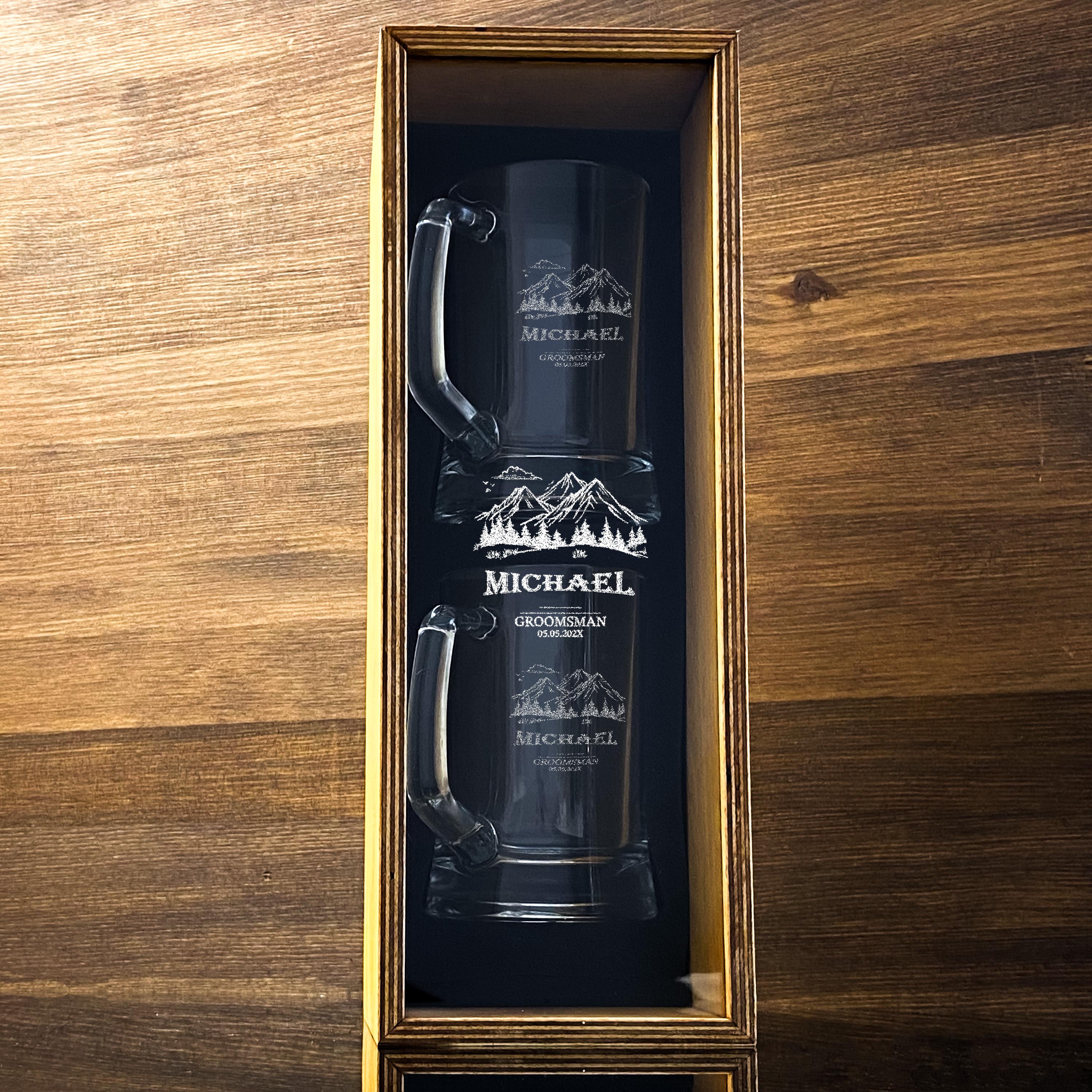 Engraved Beer Mug Beer Glass for Groomsmen Gift with Wooden Gift Box