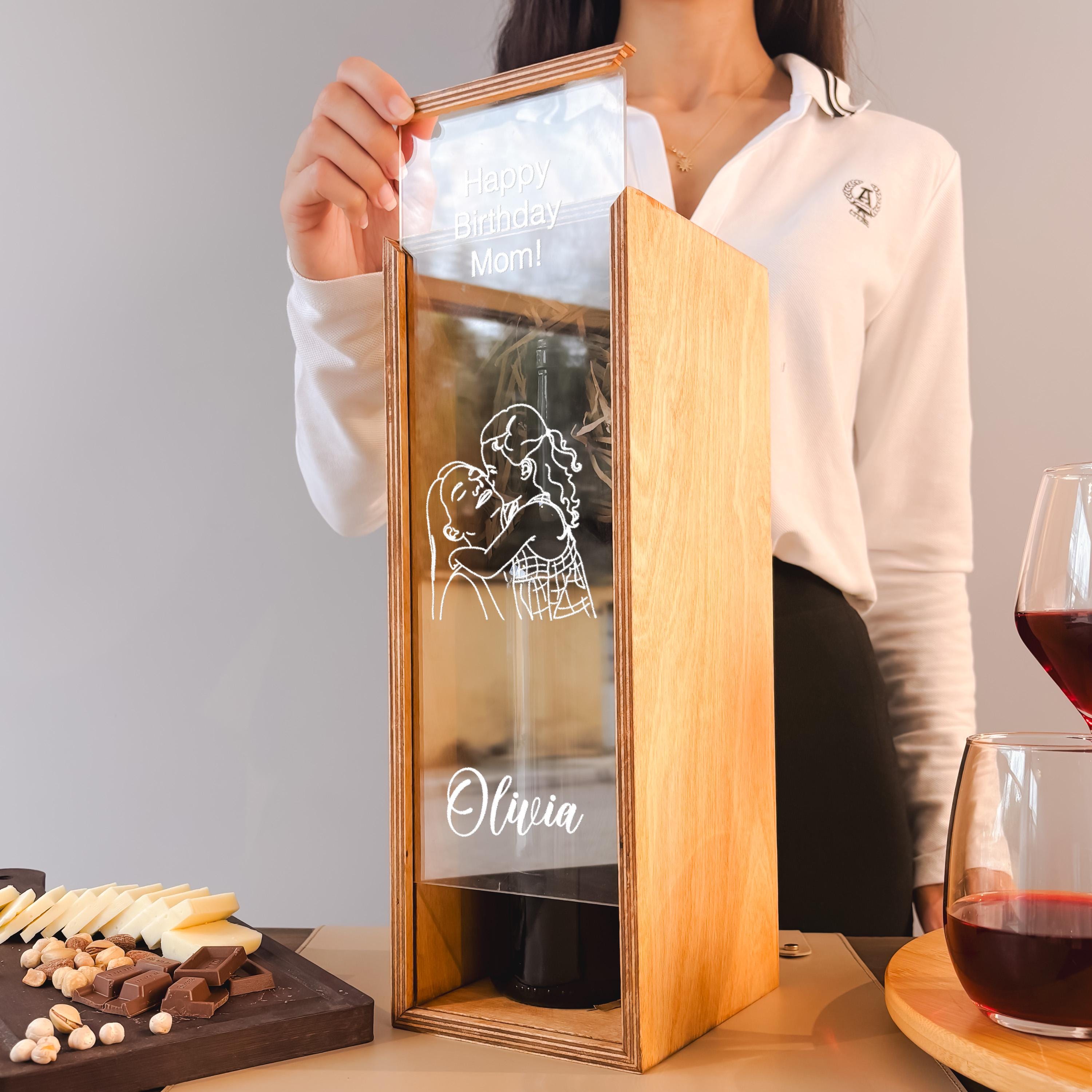 Mom Wine Bottle Box Wooden Wine Box Personalized Birthday Gift For Mom