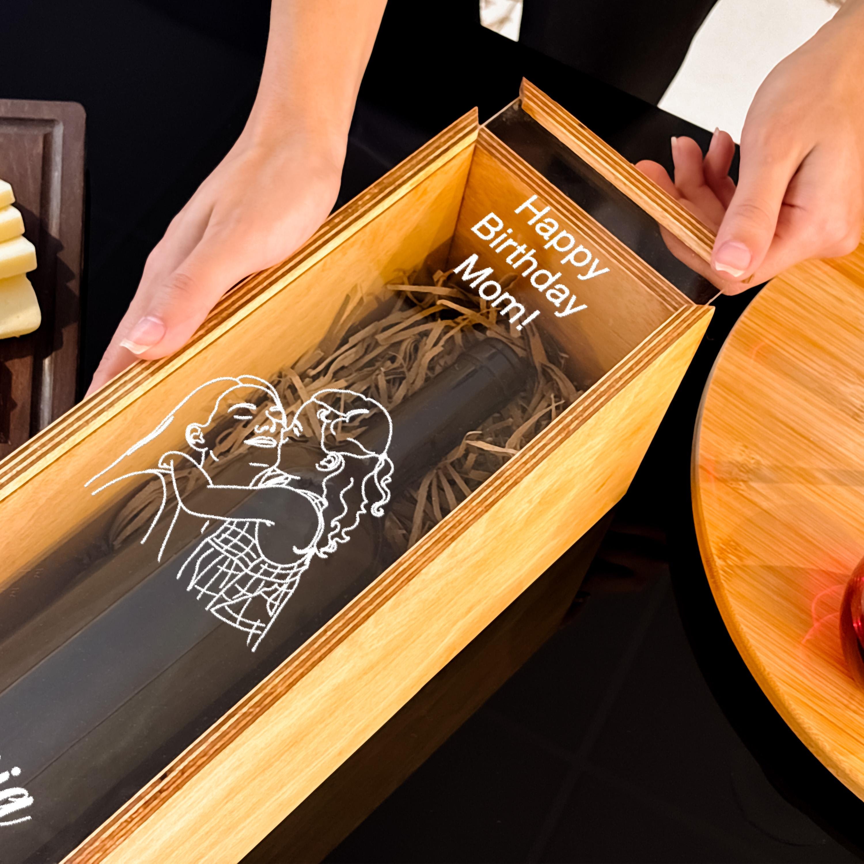 Mom Wine Bottle Box crafted from warm wood offers an elegant way to present a cherished bottle for birthdays, anniversaries, or housewarmings. Designed as a customizable wine box, it features subtle engraving that adds a personal touch without including the wine itself. Its refined appearance makes it a thoughtful keepsake for celebrating special moments with a personalized photo or message.