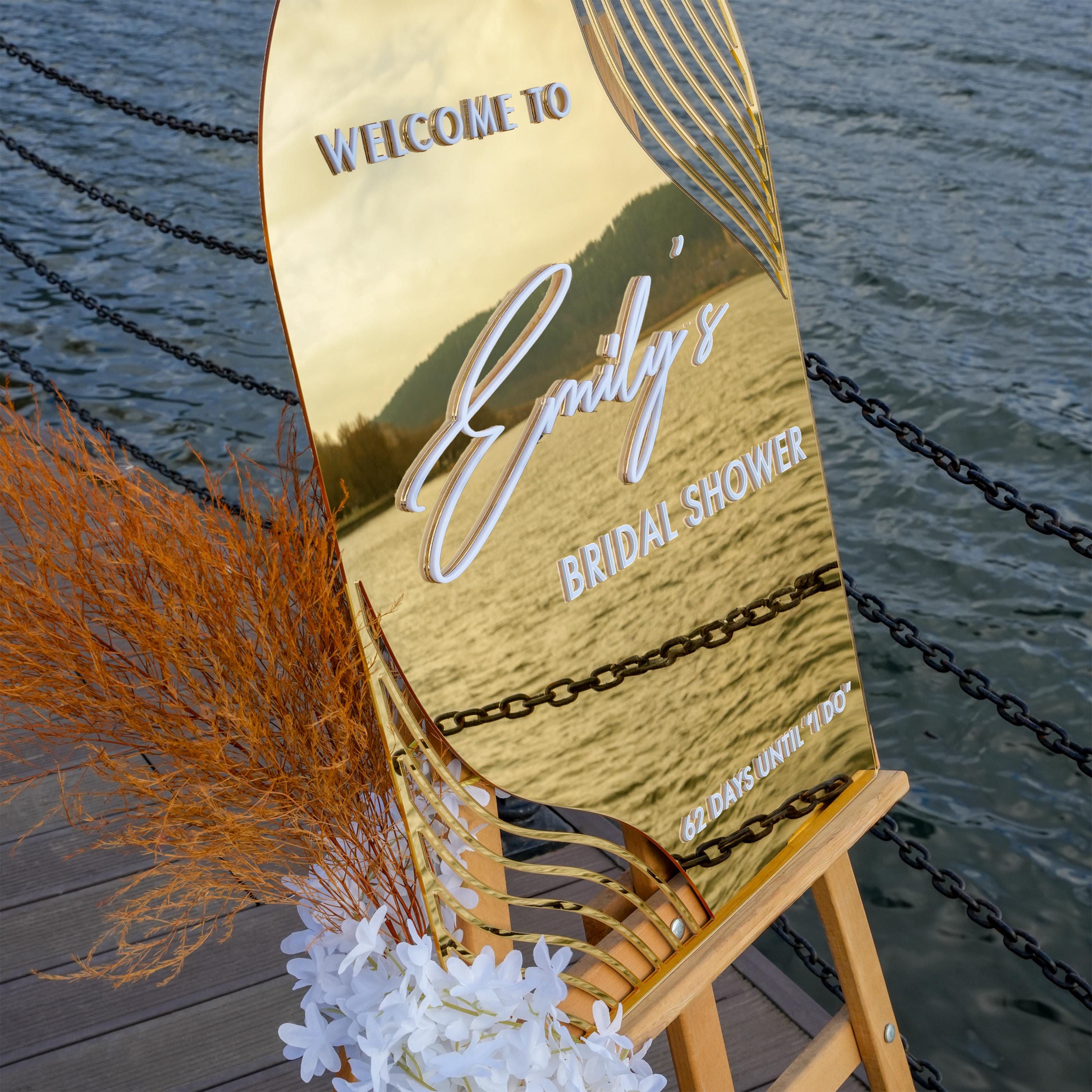 Personalized Acrylic Gold Mirror Bridal Shower Welcome Sign - Marigold Collection