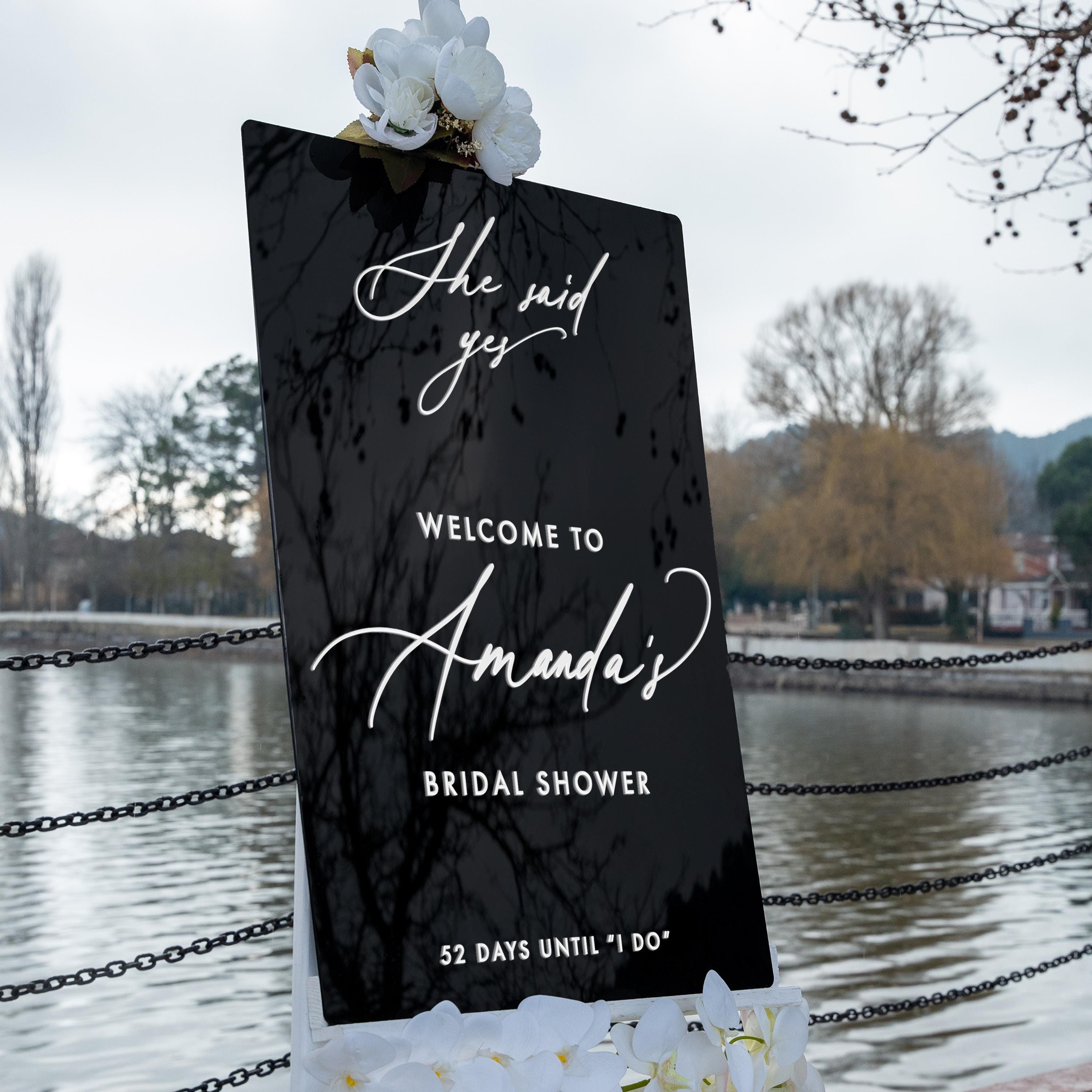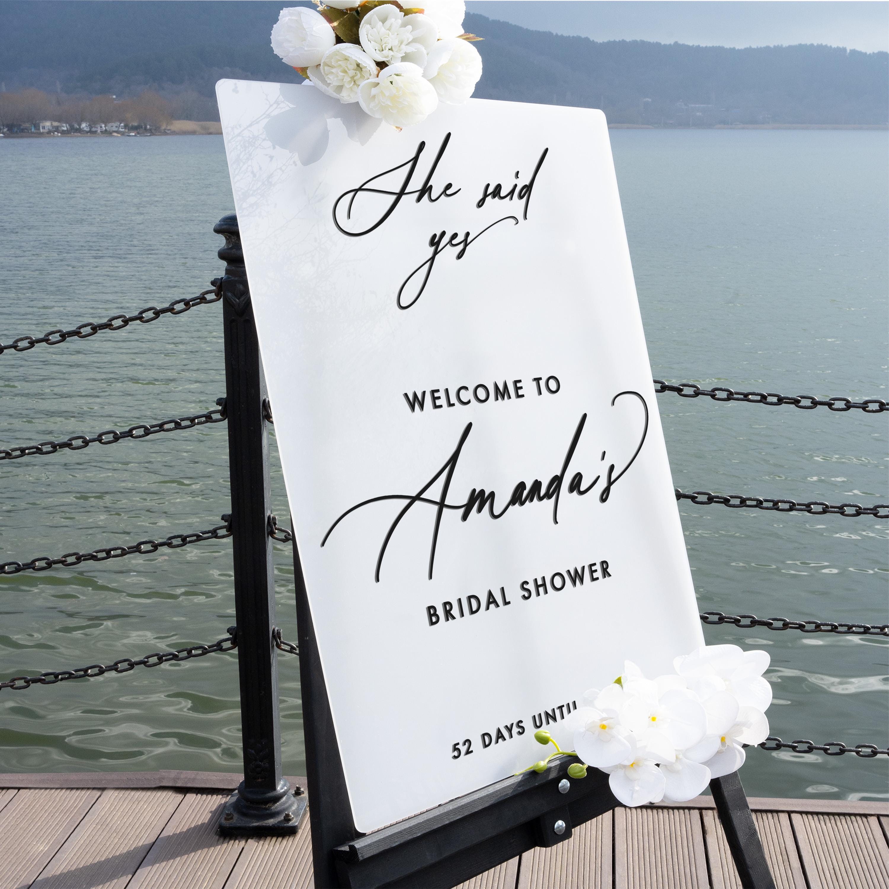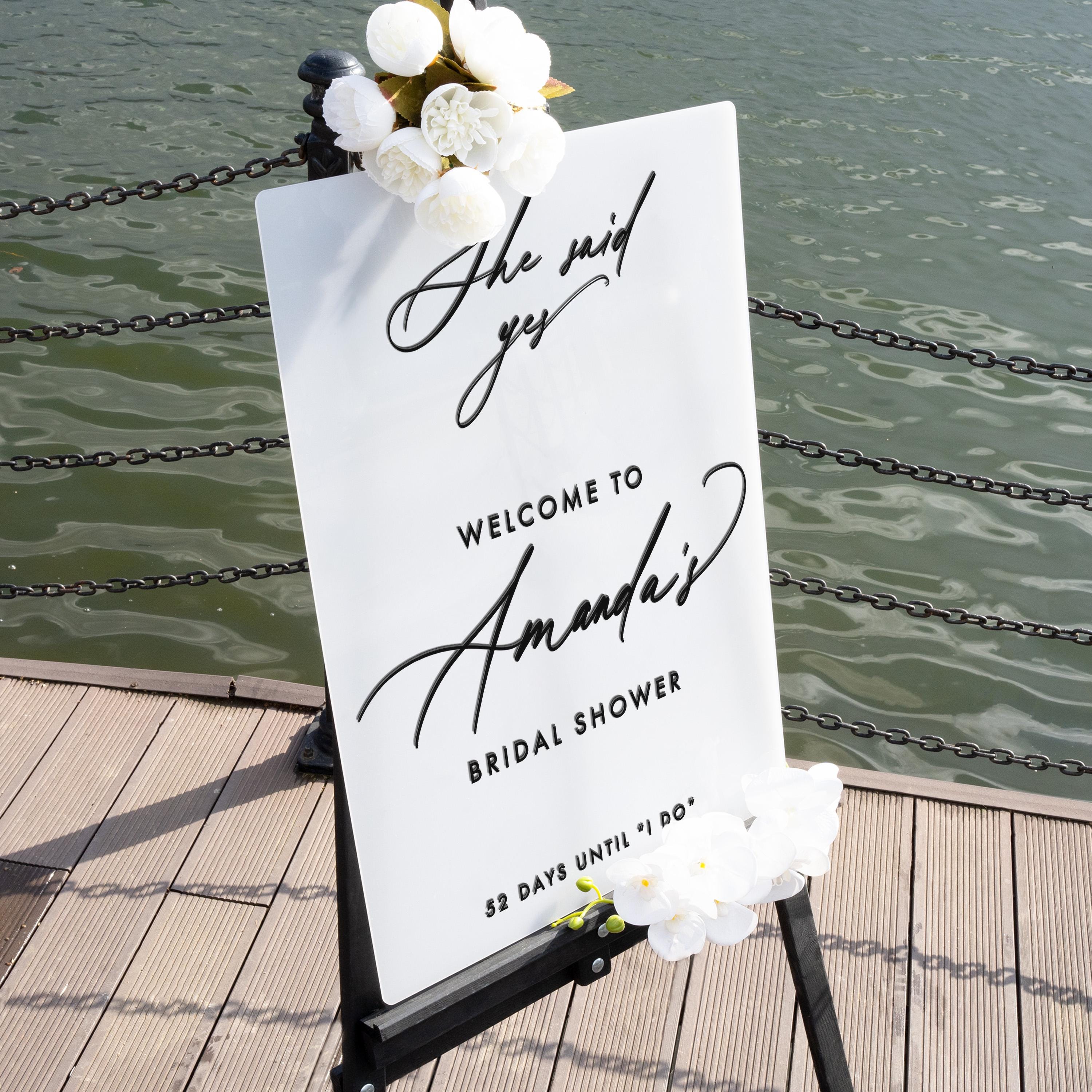 Create an unforgettable atmosphere with this personalized bridal shower sign, designed to elevate any bridal shower, engagement party, or pre-wedding celebration. Its elegant and modern style adds a refined decorative touch that highlights the bride-to-be and enhances the festive mood with a custom flair.