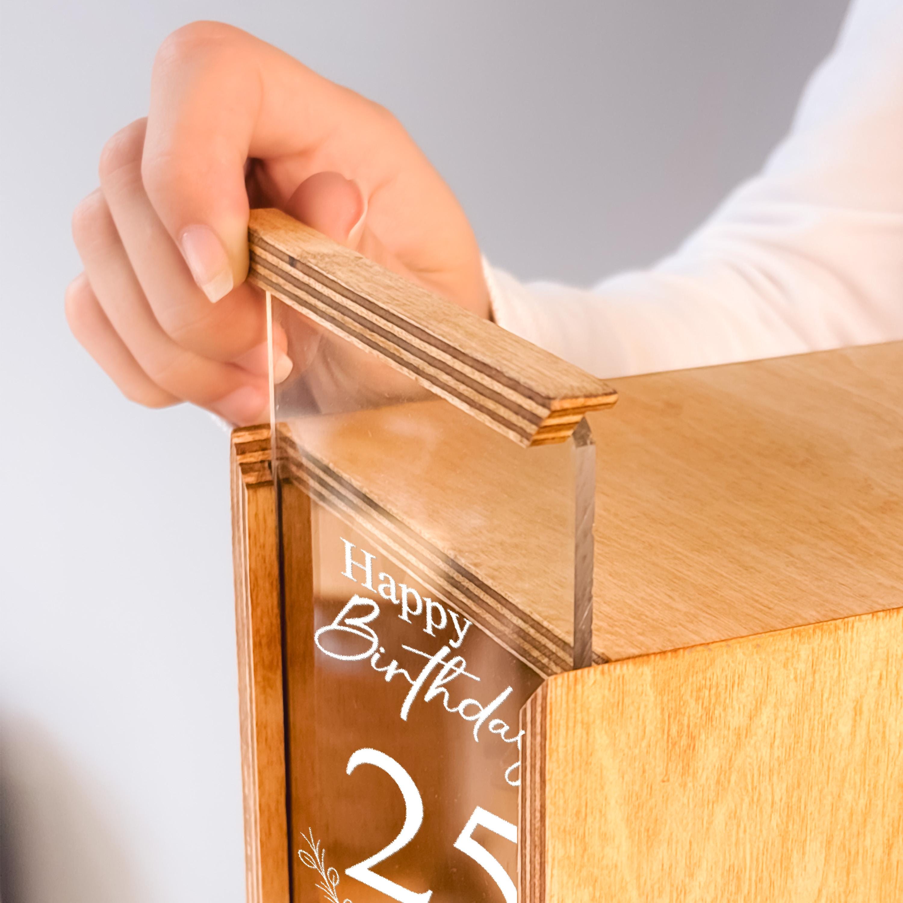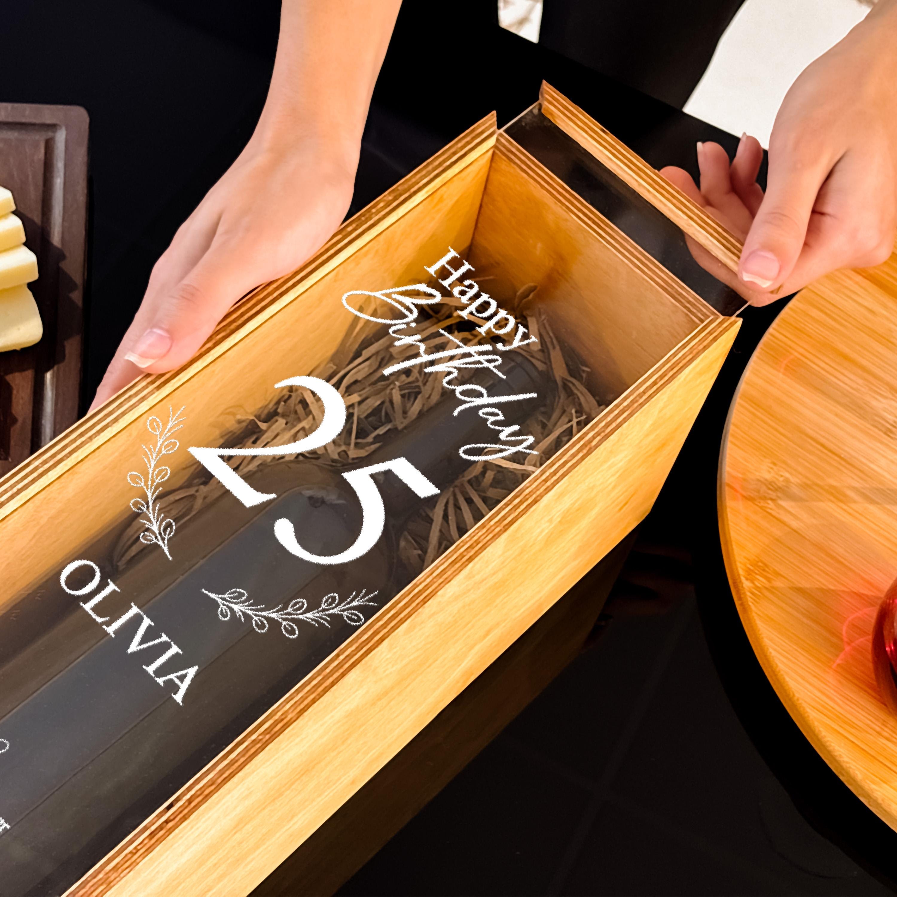 A personalized wine box crafted from wood offers a thoughtful way to present a cherished bottle for weddings, anniversaries, or housewarmings. Designed as a wine bottle holder that enhances the gift’s sentiment, it features subtle engraved details that add a timeless touch without including the bottle itself. Whether marking a special occasion or creating a bride and groom keepsake, this wooden wine box combines rustic charm with meaningful customization.