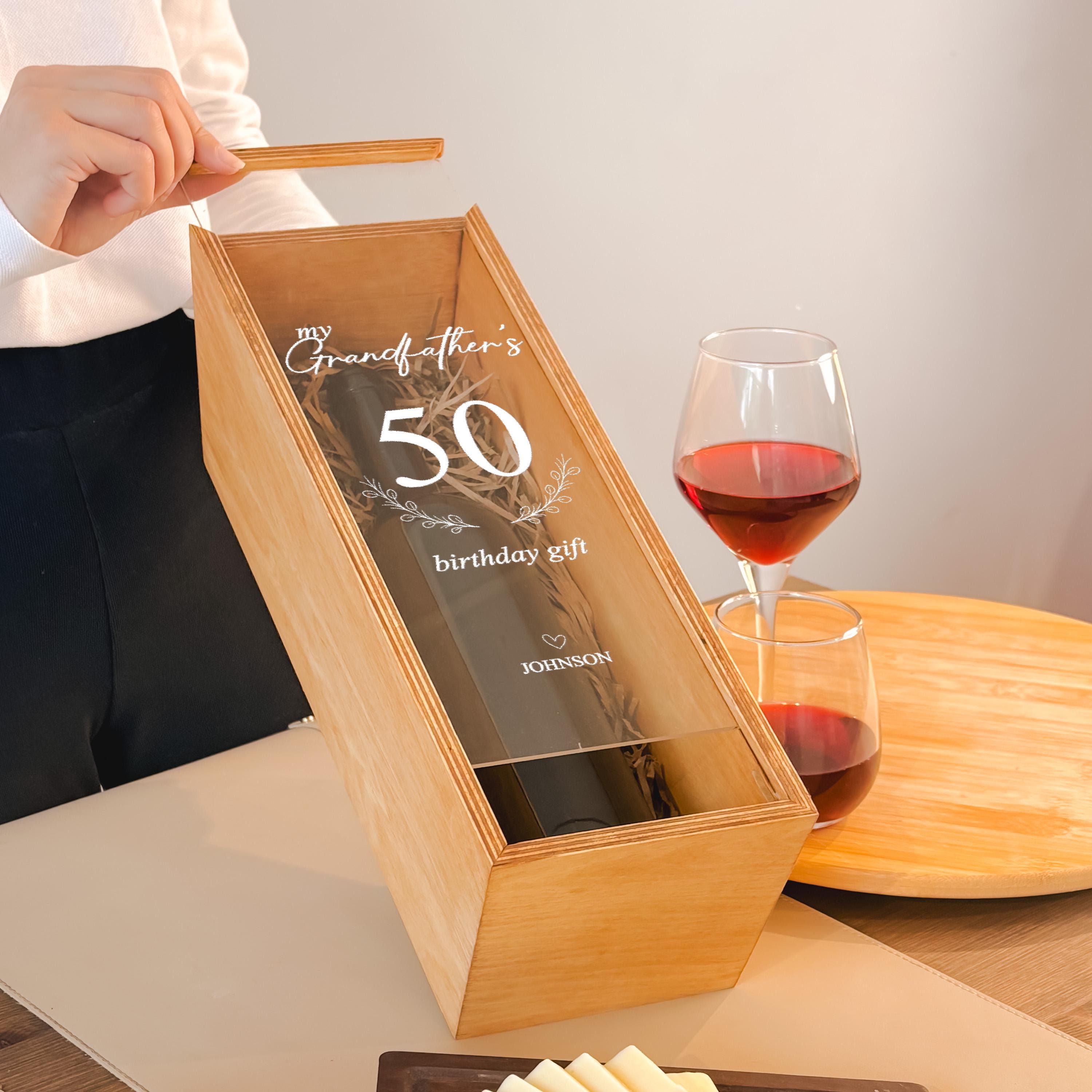 Personalized Wooden Wine Box Engraved Birthday Gift Grandpa Custom Wine Holder