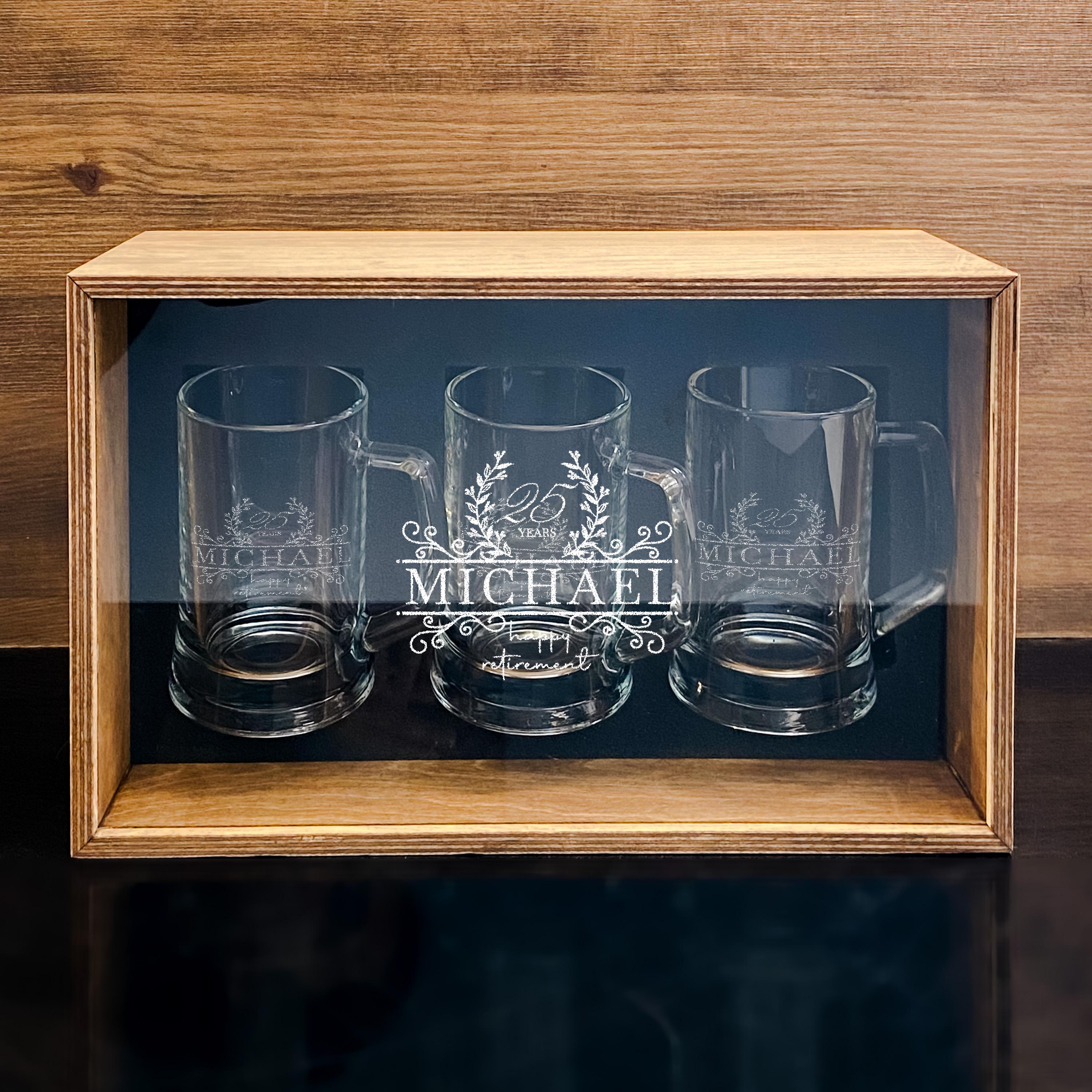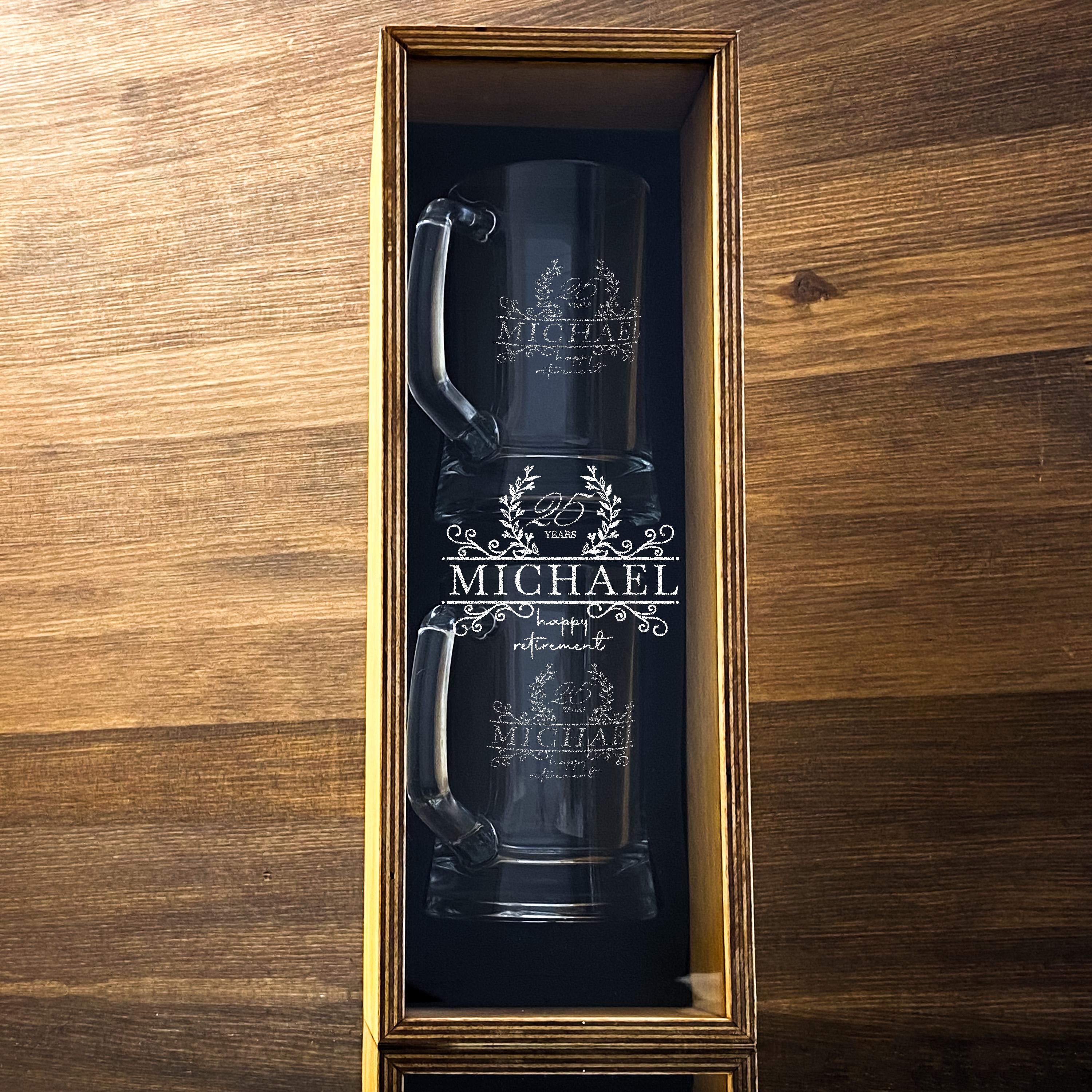 Engraved Beer Mug Stylish Personalized Beer Glass Gift for Retired Boss Wooden Gift Box