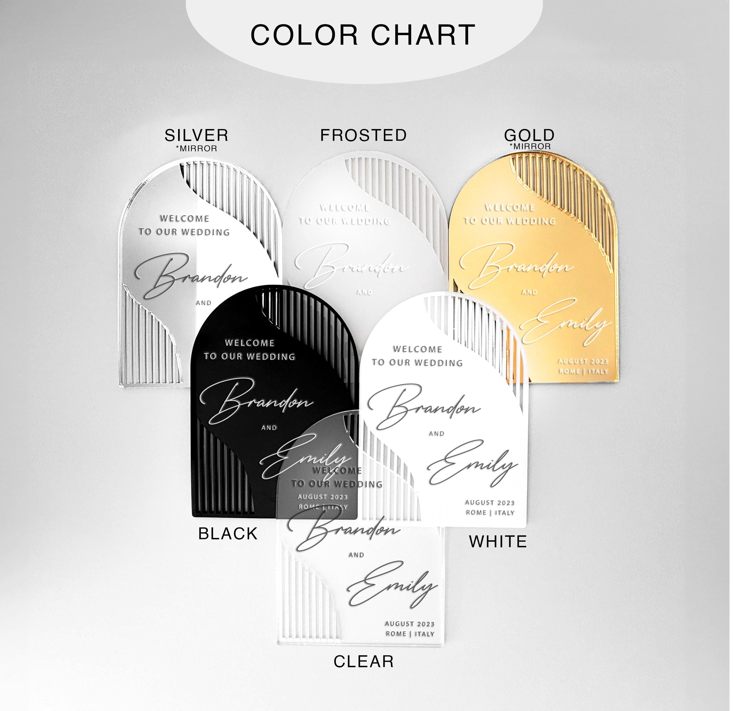 - Color Options: Clear, Frosted, White, Black, Mirror Gold, Mirror Silver(The back surfaces of the gold and silver acrylic options are gray in color. To achieve a mirror effect, only the front surfaces are produced in gold and silver colors. When you choose a "Clear" background, please be aware that adhesive residues may be visible on the back of the product due to its transparency.)