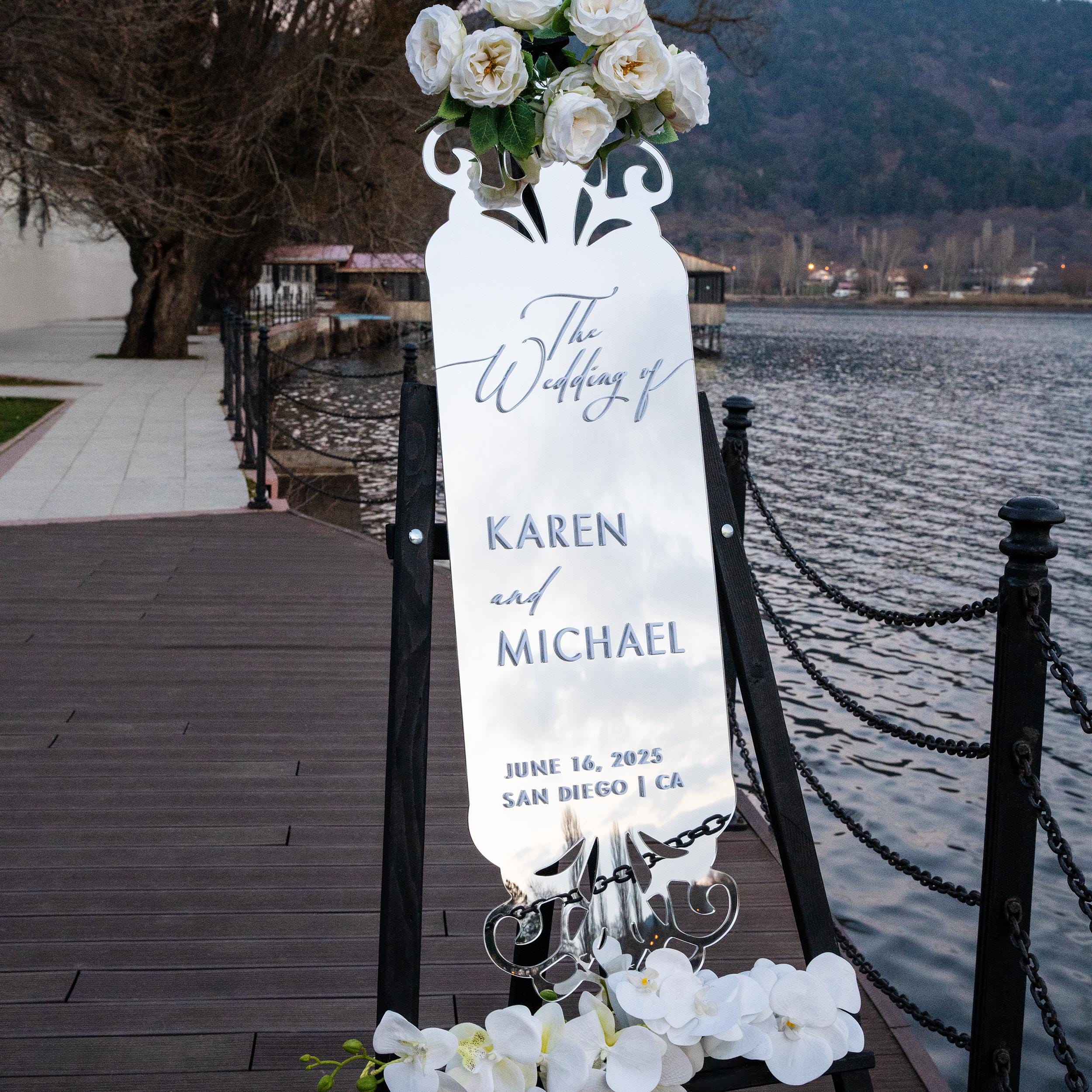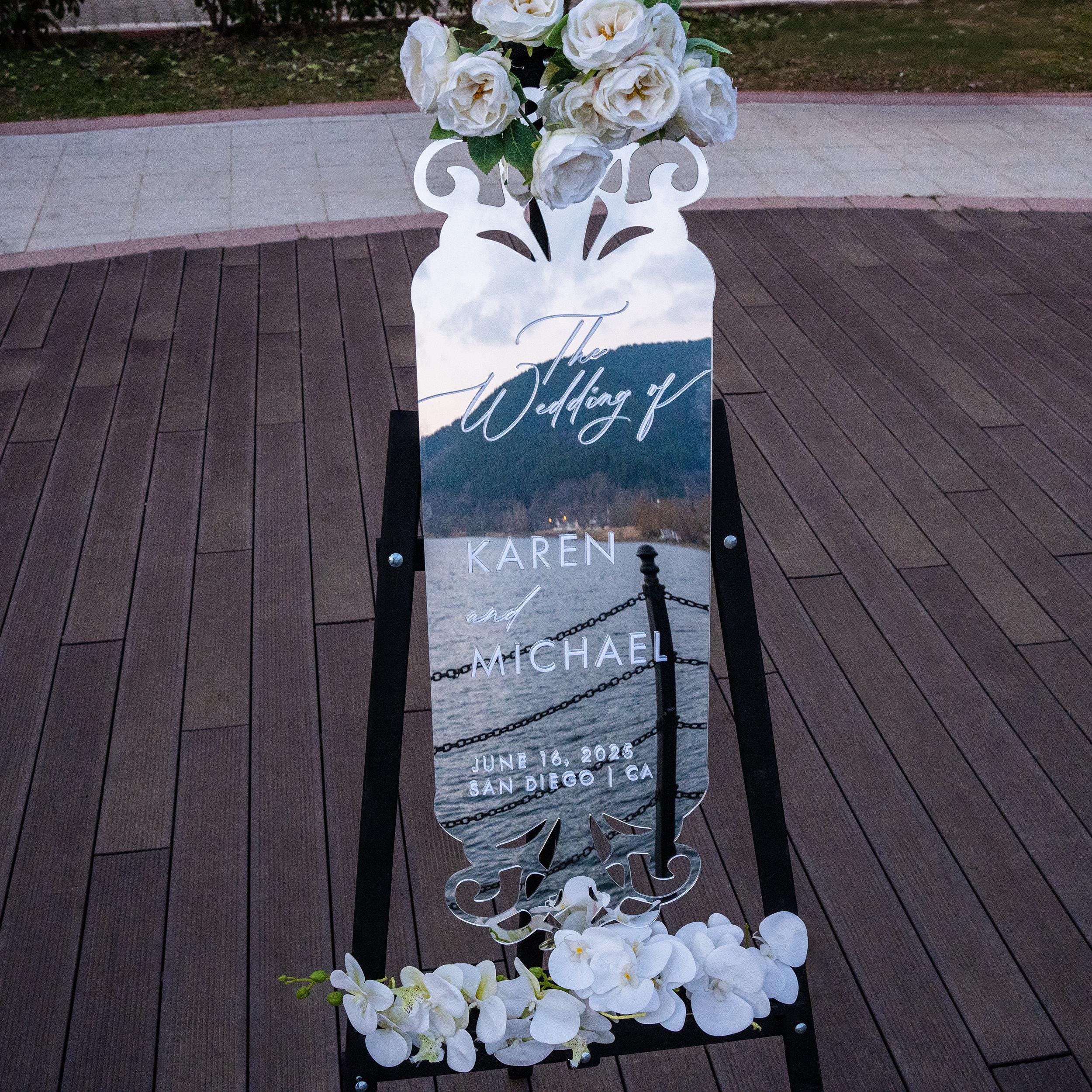 Tall Silver Mirror Acrylic Wedding Welcome Sign - Iris Collection