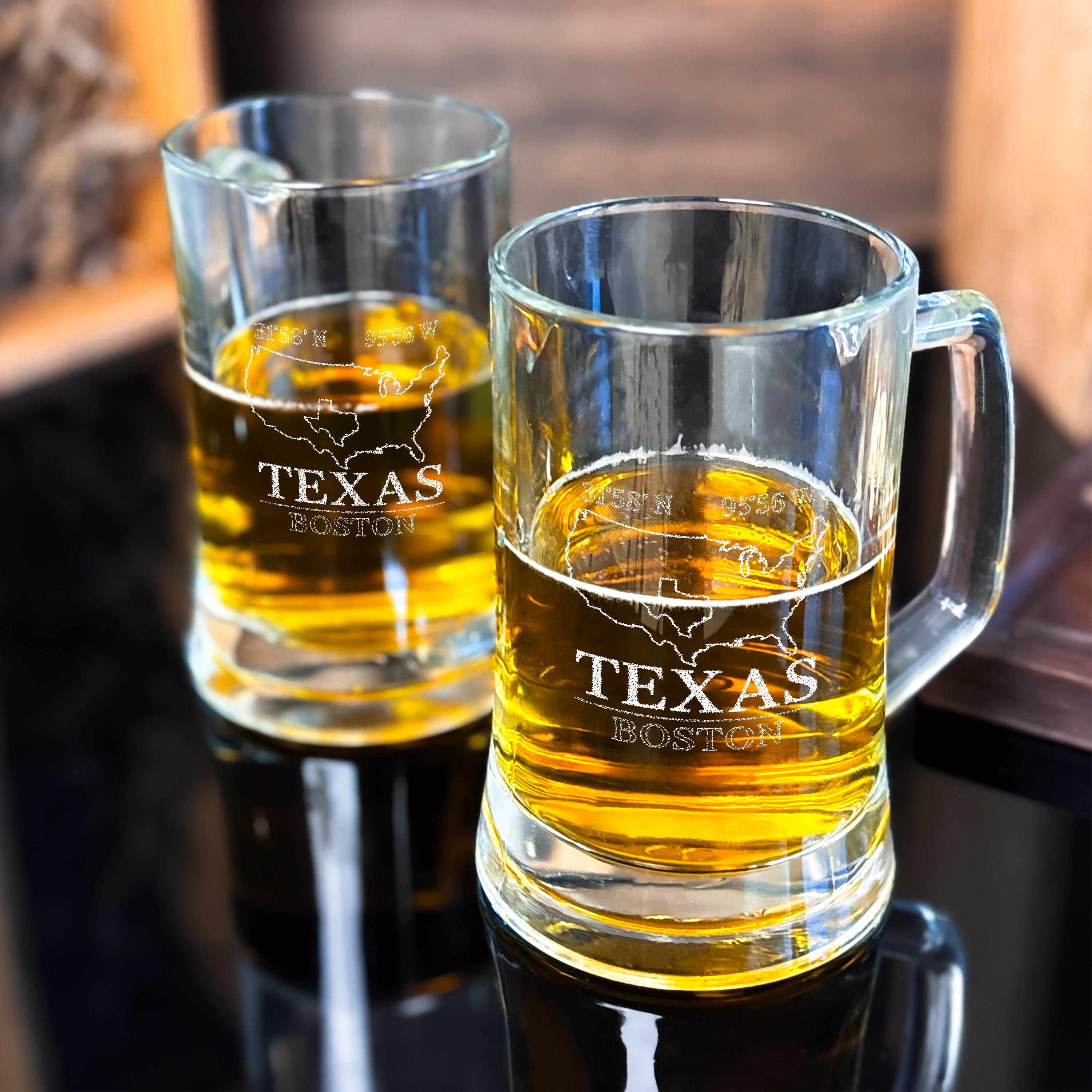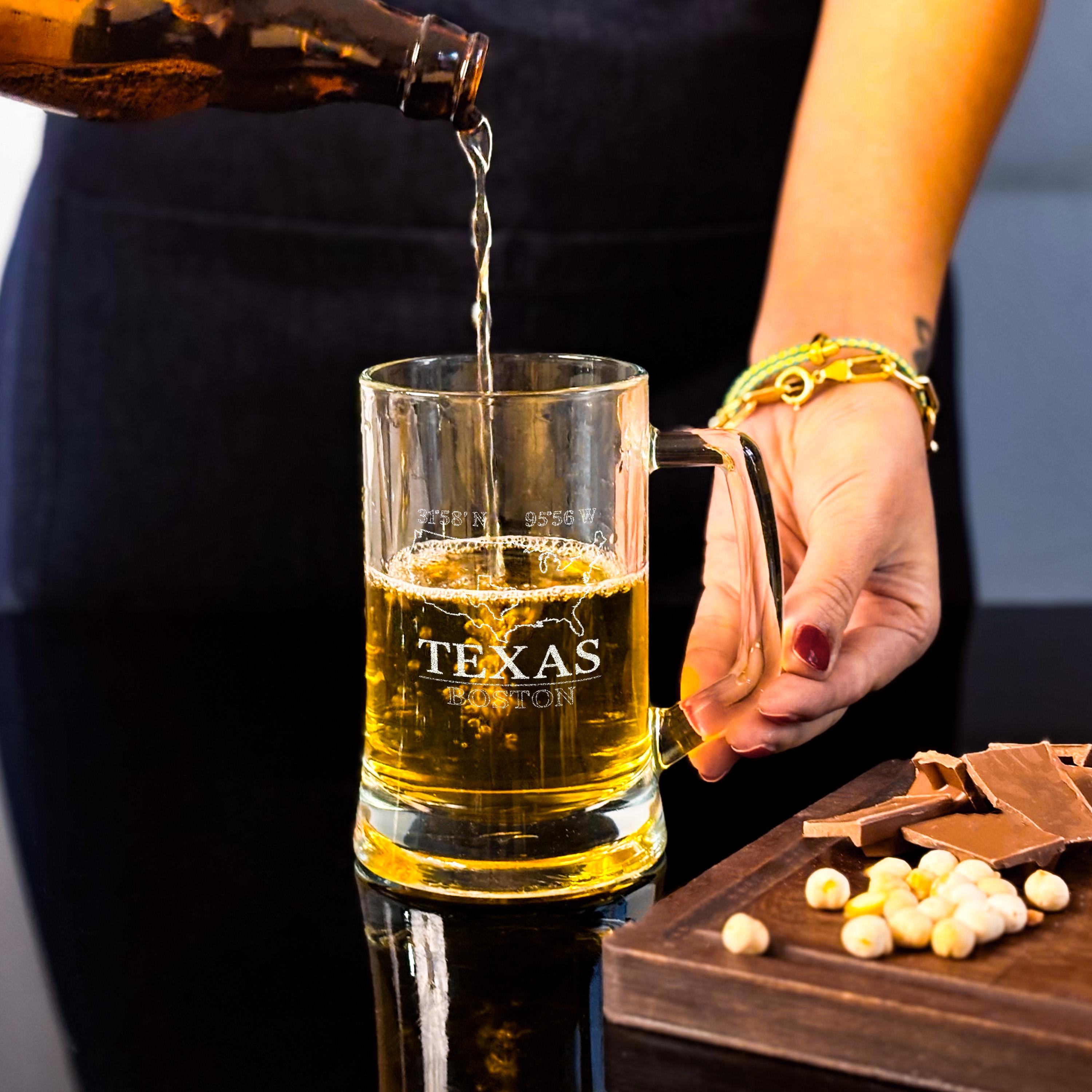 Personalized Beer Mug Engraved Texas Beer Glass Classic Pub Glass Housewarming Gift
