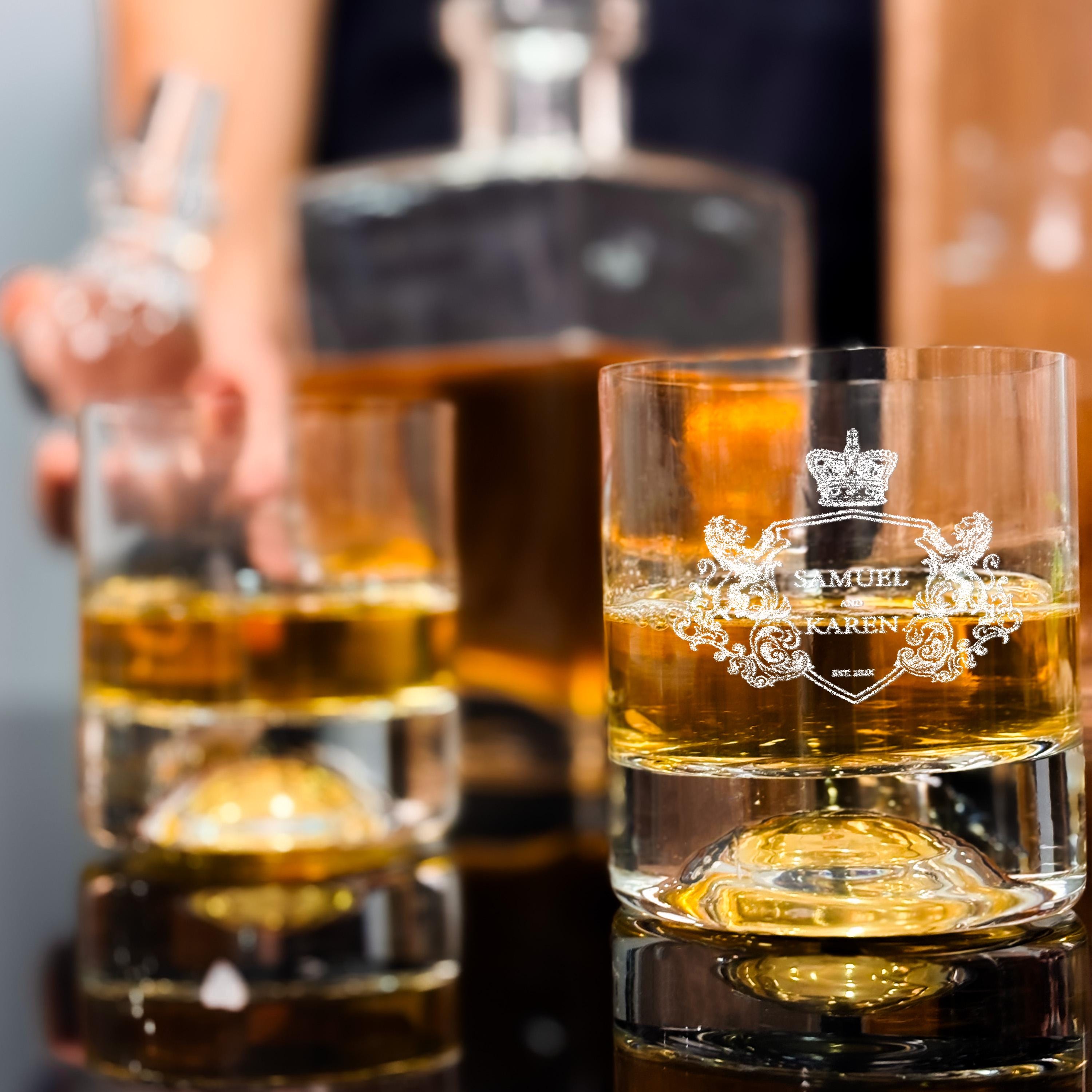 This vintage whiskey glasses and decanter set brings a warm, rustic touch to any home bar or evening celebration. The handcrafted glassware features subtle engraved details that add character without overwhelming the classic style, making it a thoughtful choice for wedding or anniversary gifts as well as housewarming moments.