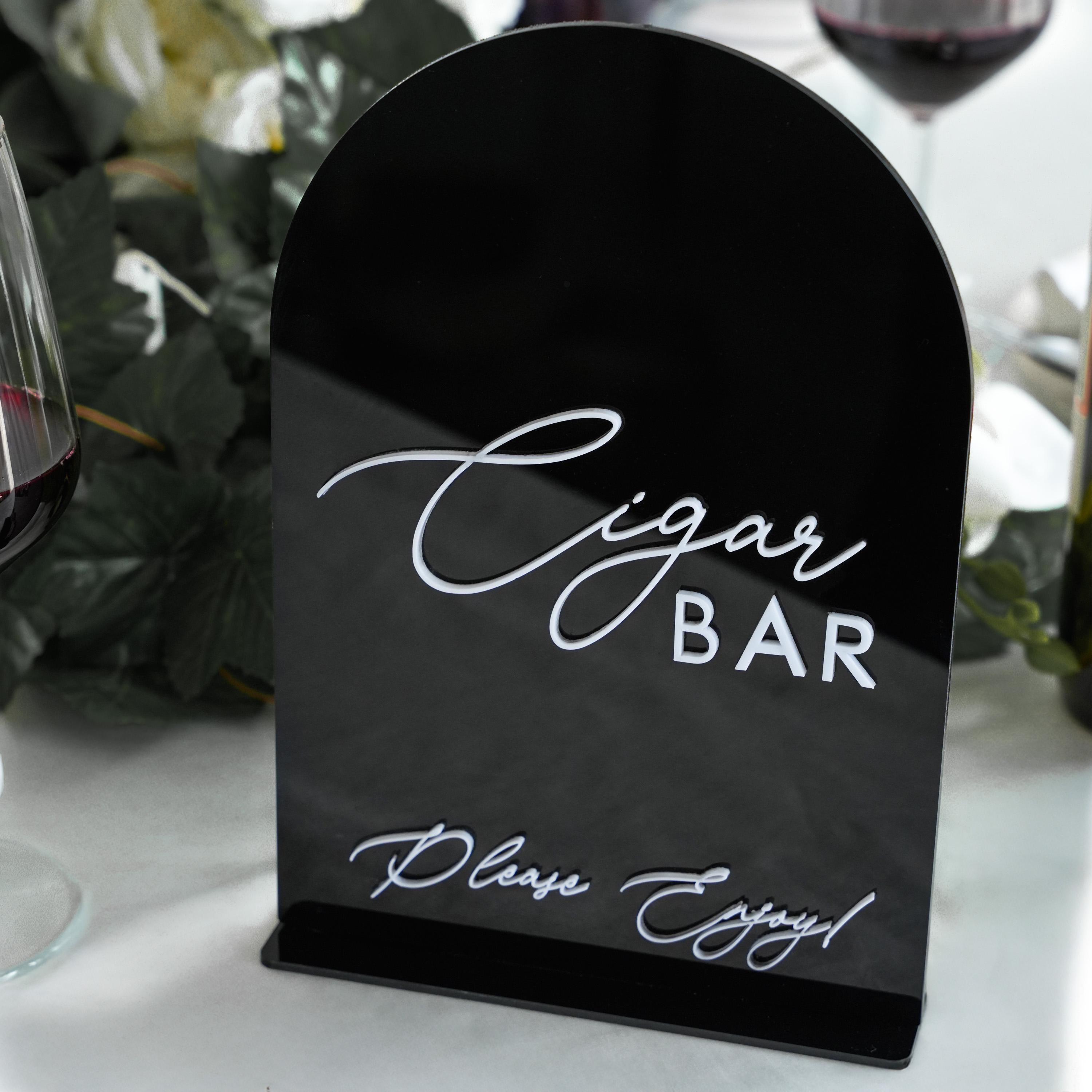 Wedding Cigar Bar Sign - Acrylic Bar Sign | Black 3D Wedding Lounge Decor