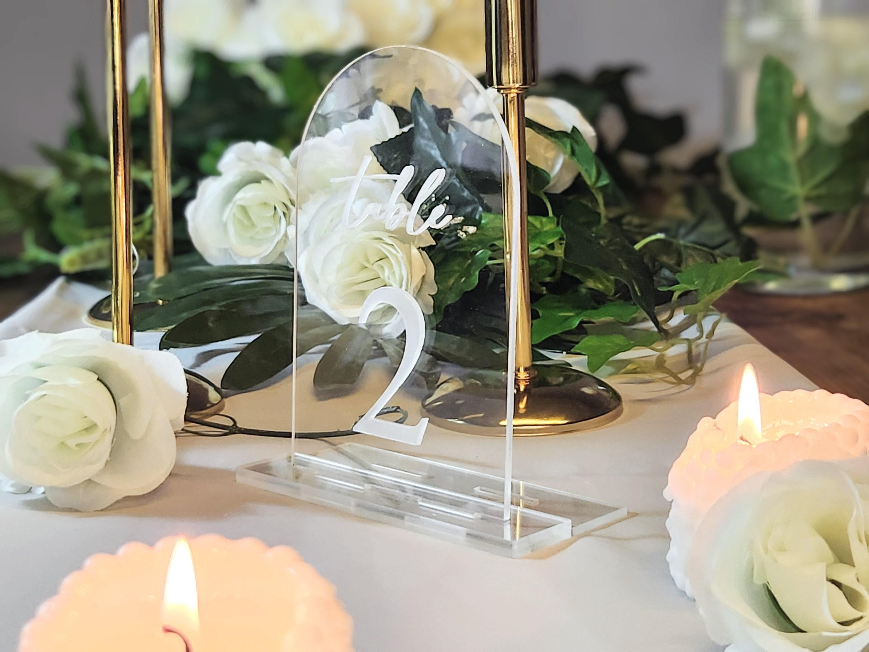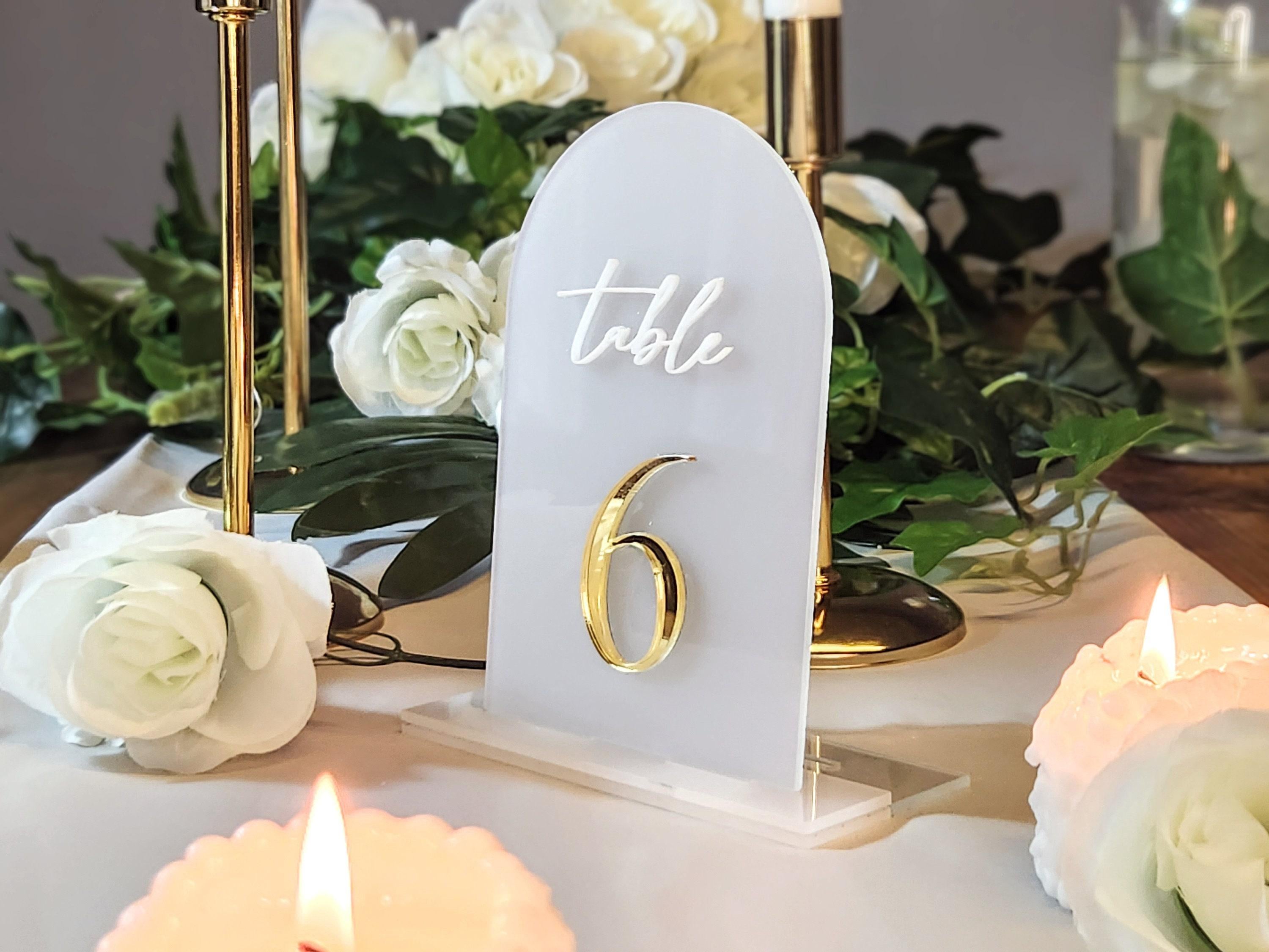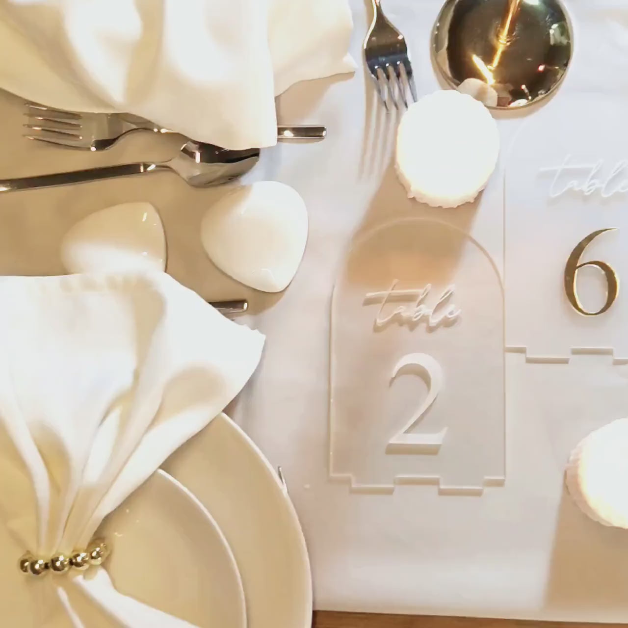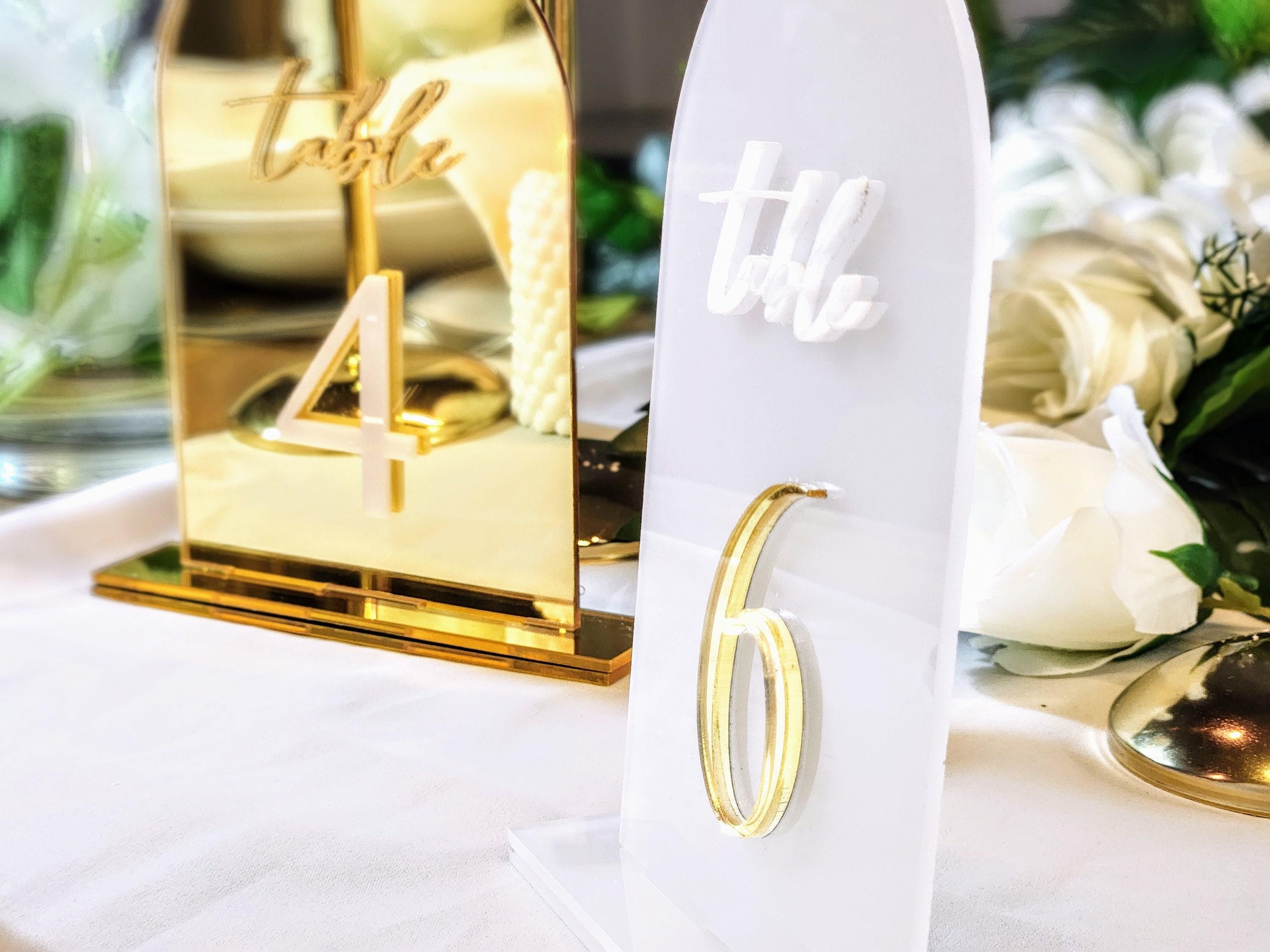 Gold Table Numbers provide elegant table number signage that enhances the ambiance of weddings, engagements, and rehearsal dinners while helping guests easily identify their tables. These decorative table accents combine style and function to elevate any event with a refined, modern touch.