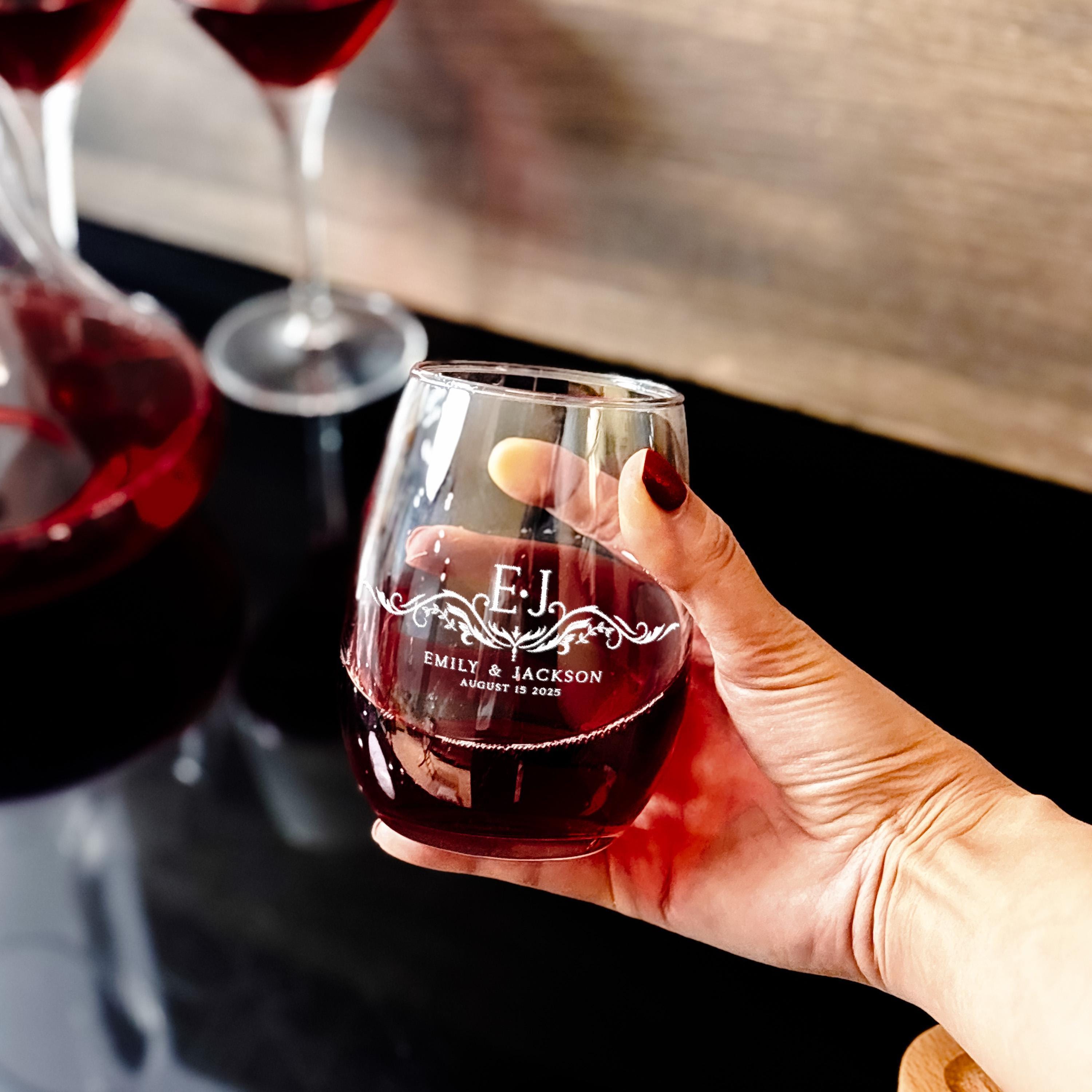 Set 4: Includes 2 piece wine glasses with all same engraving