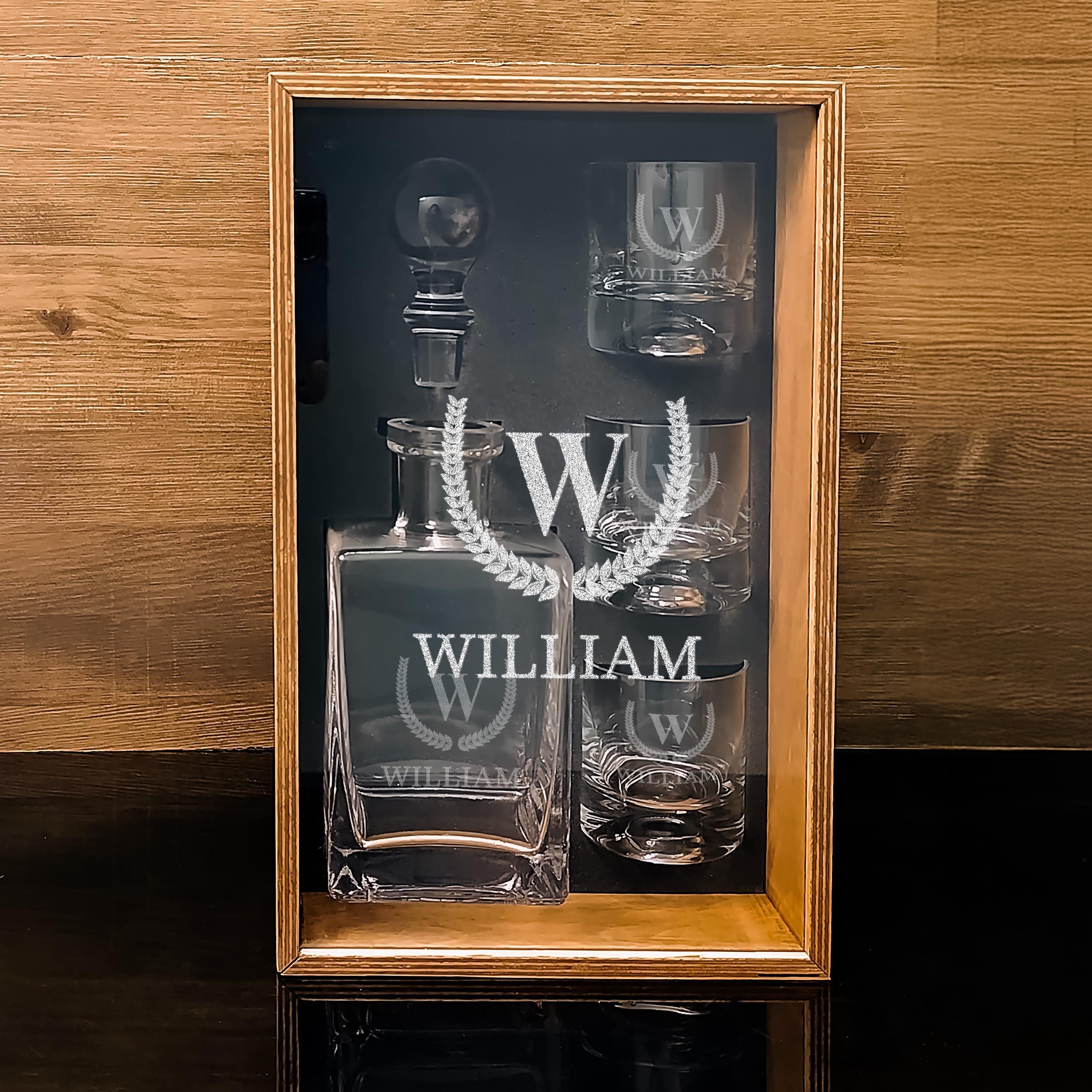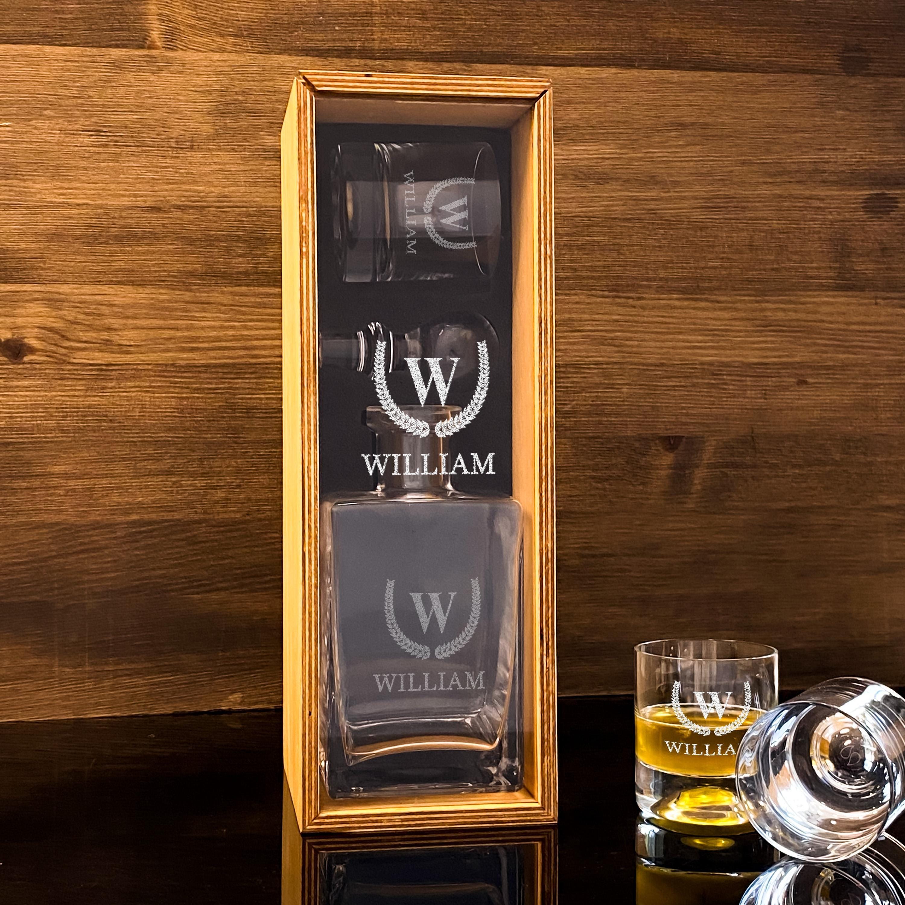 This whiskey decanter set brings a touch of elegance to any home bar, making evening drinks and celebrations feel more special. With its engraved decanter and matching bourbon glasses, it offers a thoughtful personalized whiskey gift that suits weddings, anniversaries, or housewarming moments. The custom details add a unique charm that makes this set stand out among luxury whiskey accessories.