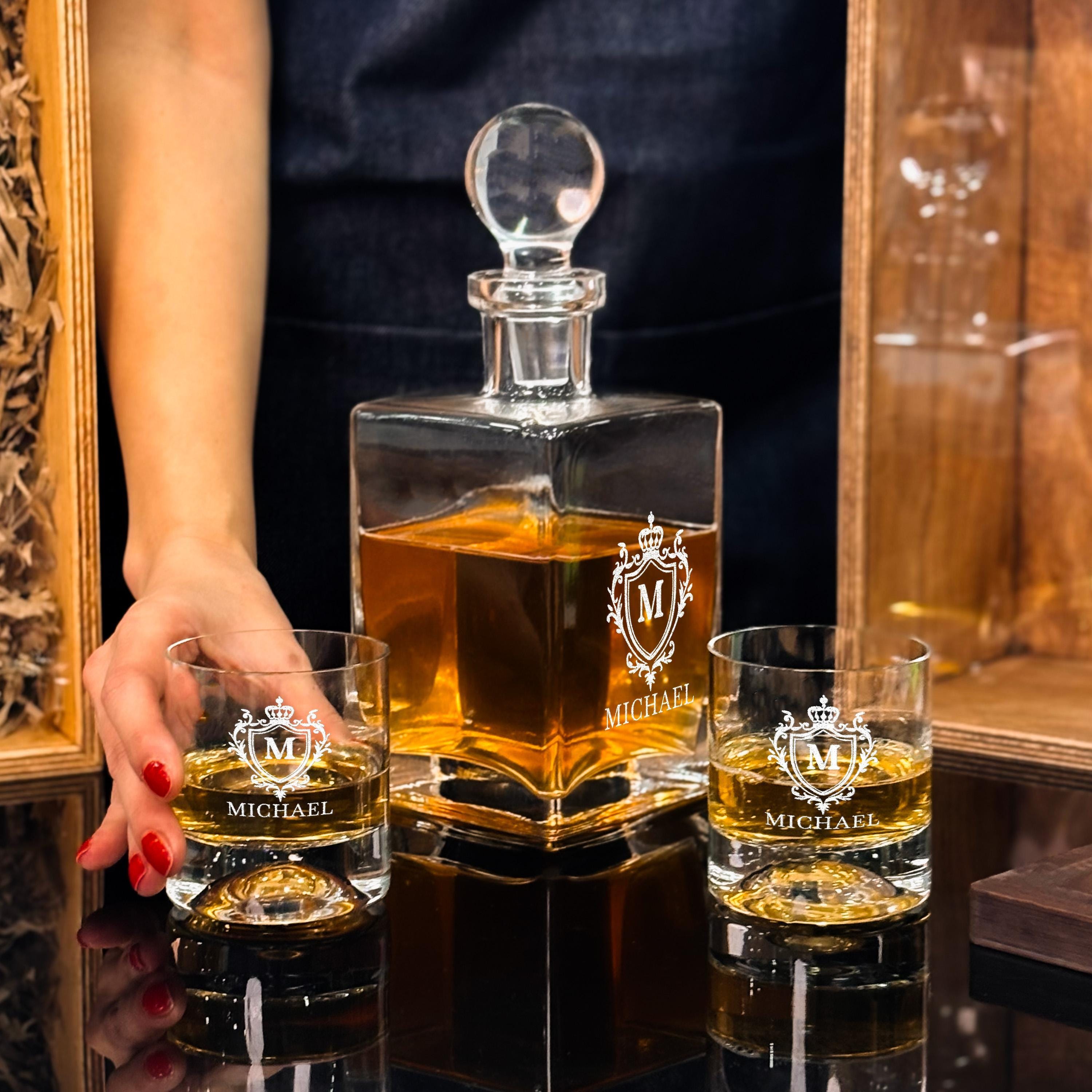 Whiskey Glasses Set With Custom Whiskey Decanter For Anniversary Gift Dad