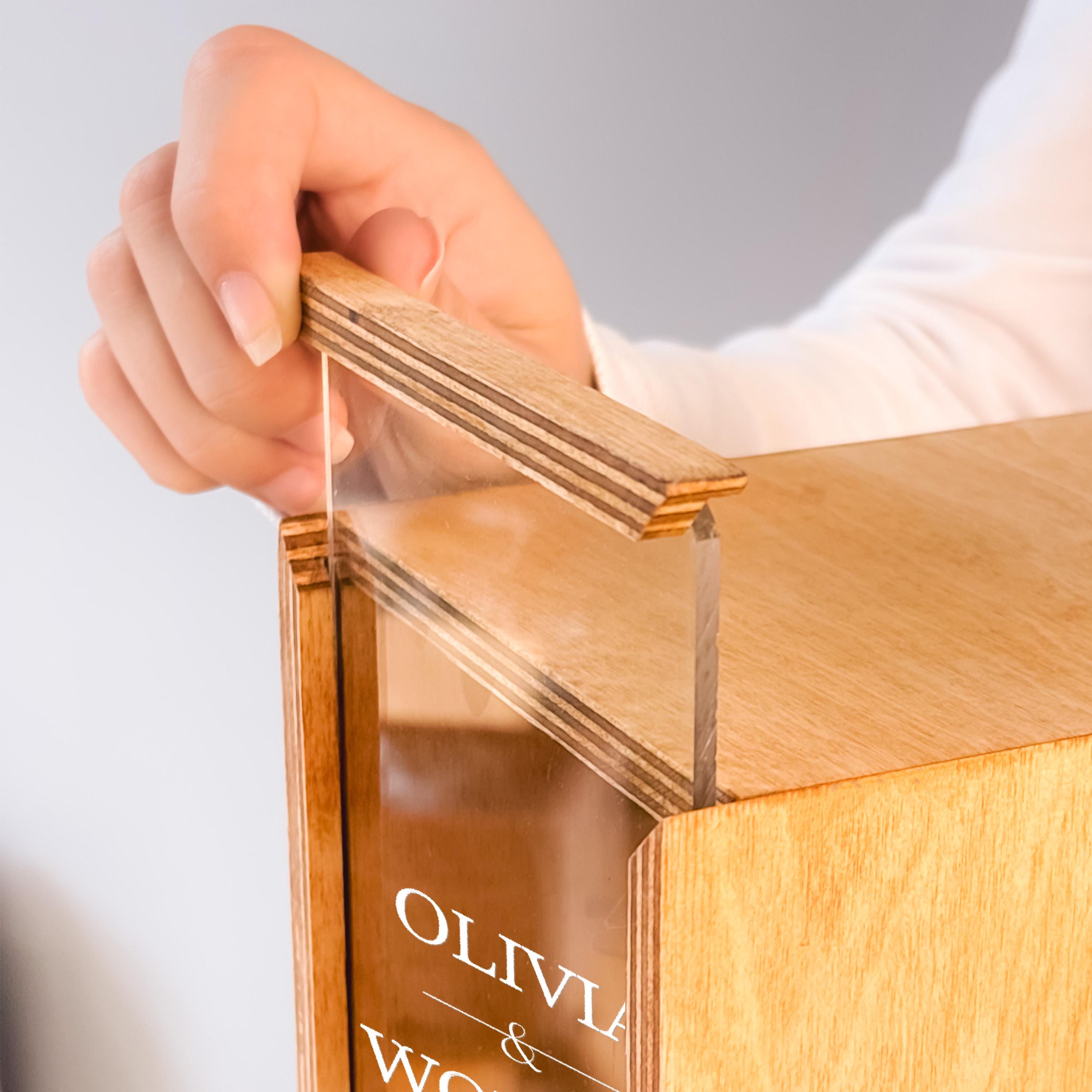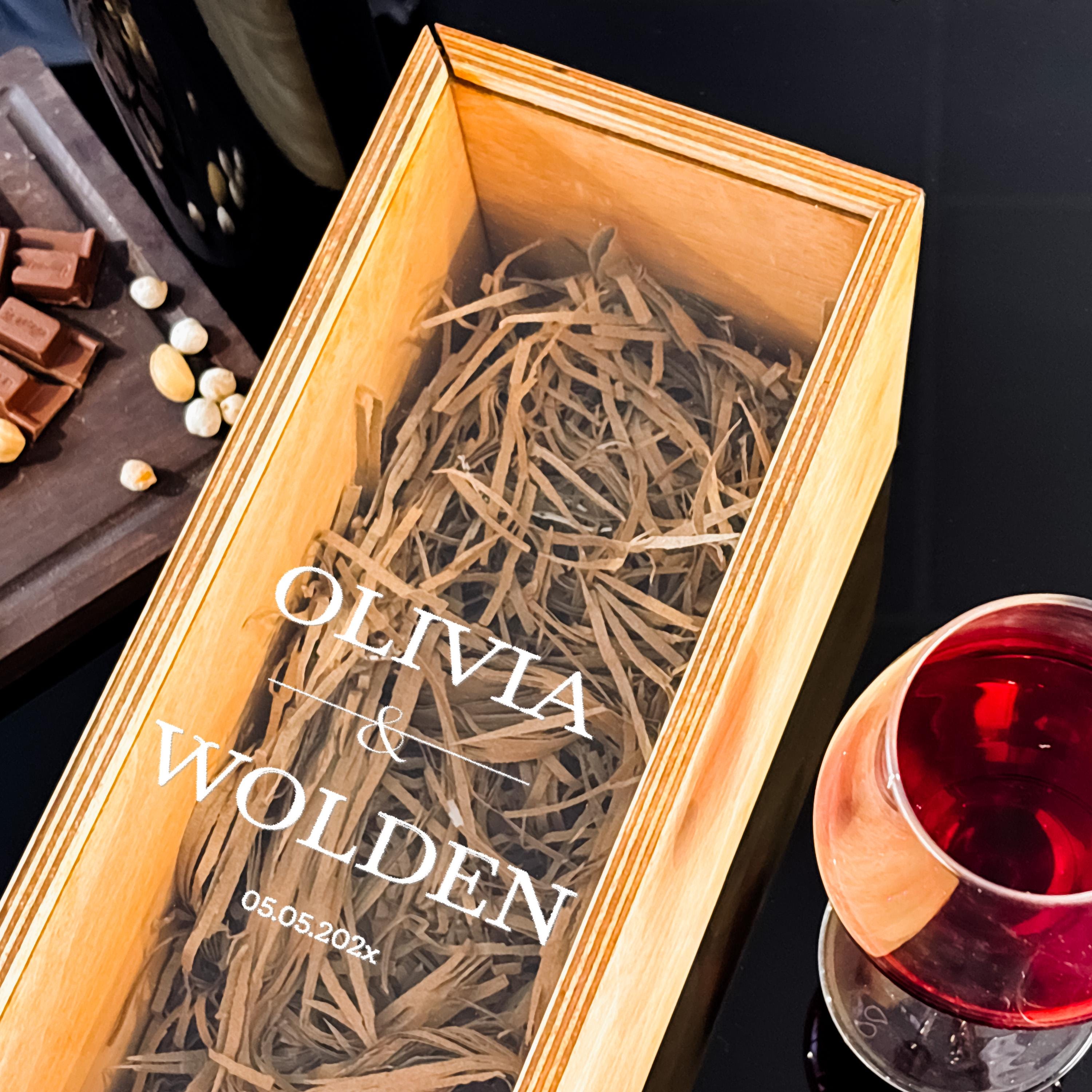 A personalized wine box crafted from wood offers a thoughtful way to present a cherished bottle for weddings, housewarmings, anniversaries, or birthdays. Designed as a rustic wine bottle holder, it enhances the gift’s meaning with subtle engraved details that make each moment memorable. While the bottle itself is not included, the custom champagne box serves as a beautiful keepsake that complements any celebration.