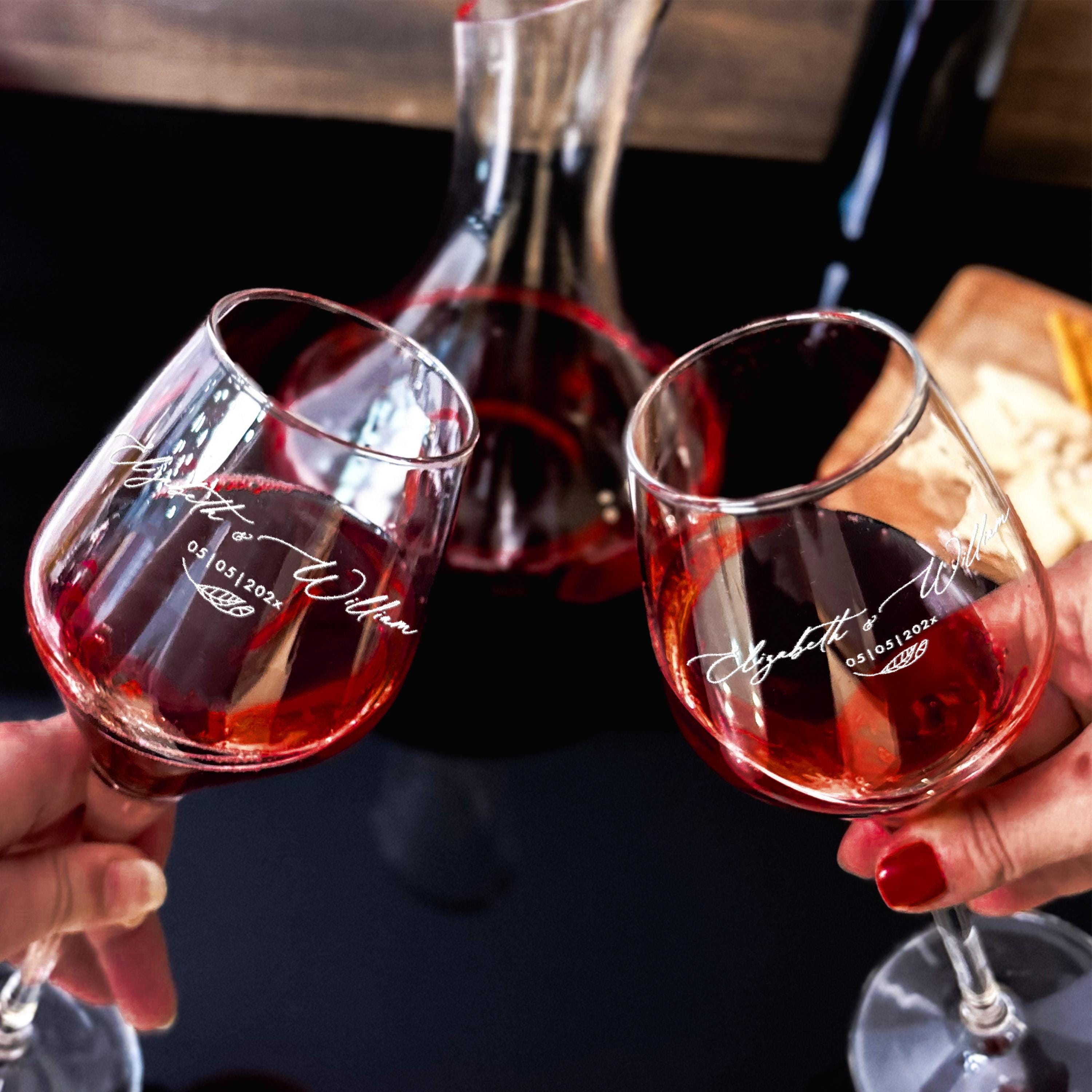 This engraved wine decanter and wine glassware set makes a timeless and elegant wedding gift, perfect for celebrating newlyweds or as a thoughtful housewarming present. The personalized touch and optional wood gift box elevate this set, creating a cherished keepsake that adds warmth and sophistication to any wedding bar decor or special occasion.